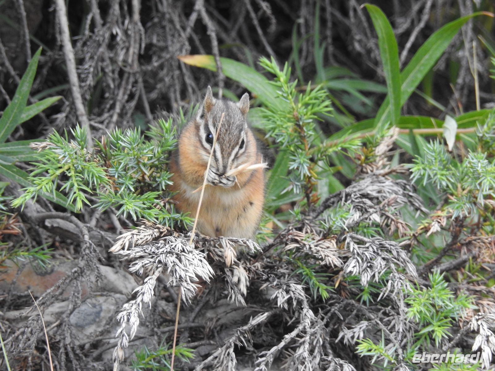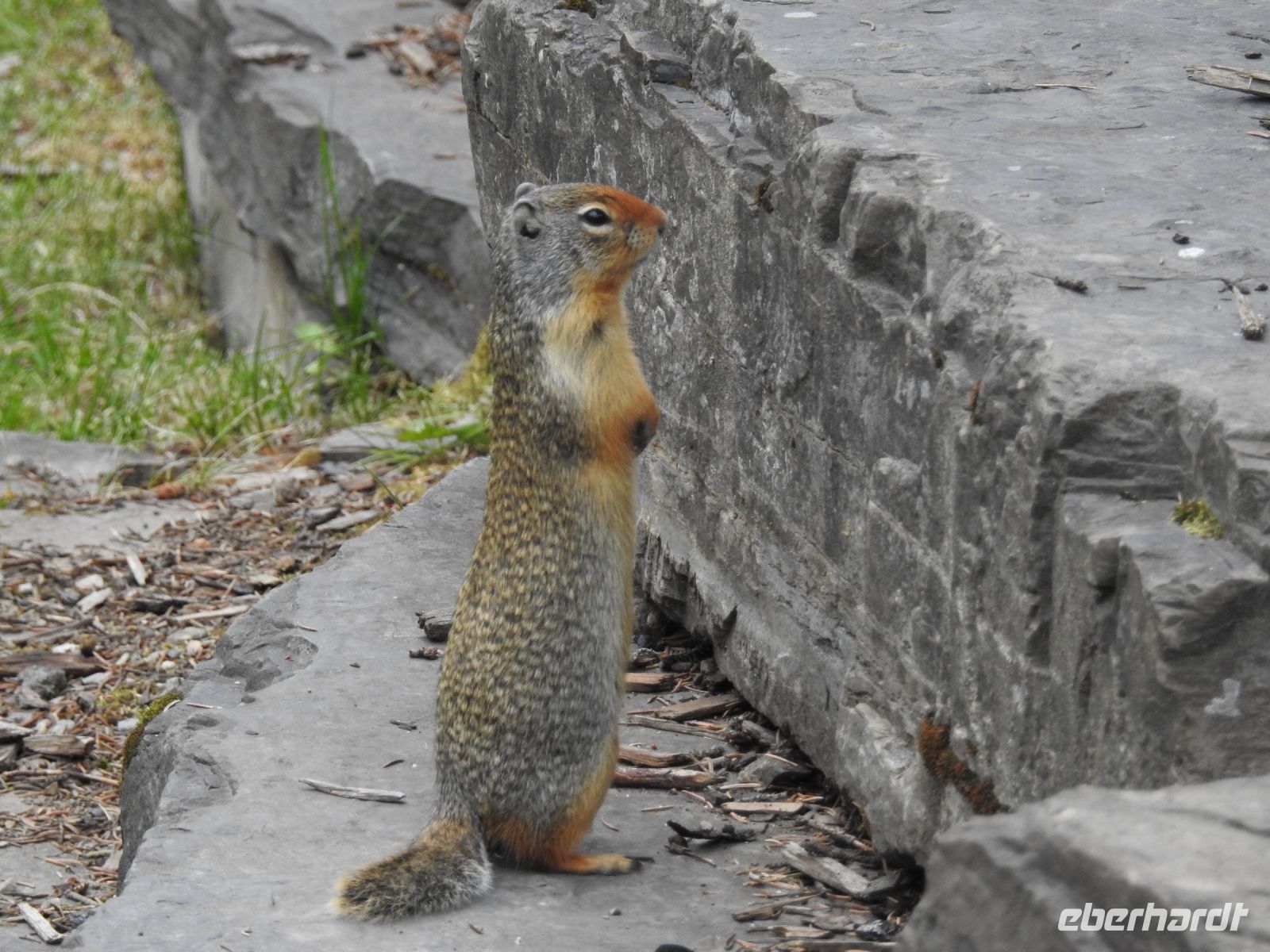 Fast noch spektakulärer ist aber der Blick auf den Moraine-See, der sich 14 Kilometer südlich vom Lake Louise und auf 1887 Metern Höhe befindet. Für lohnenswerte Fotos müssen wir allerdings einen kleinen Hügel erklimmen. Ein paar lustige Streifenhörnchen erfreuen uns mit ihren Aktivitäten am Wegesrand. Bevor wir zum Hotel fahren, legen wir einen Stopp am Bow Falls Wasserfall ein.
