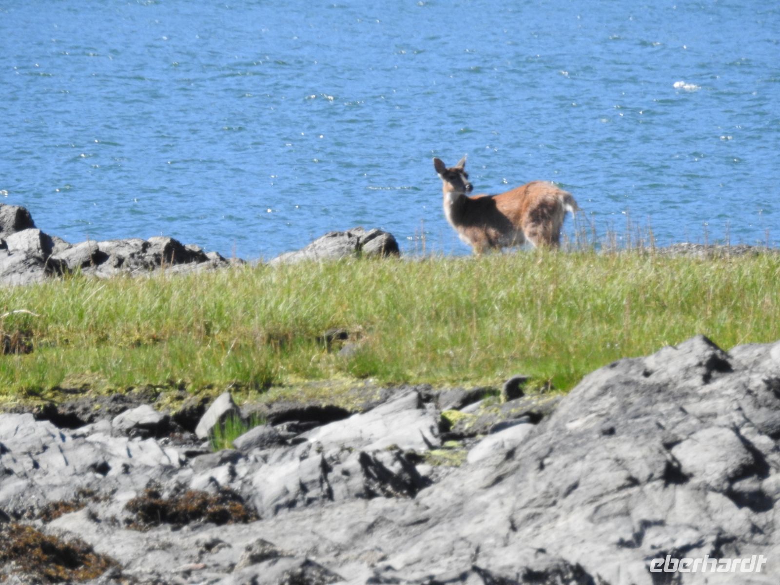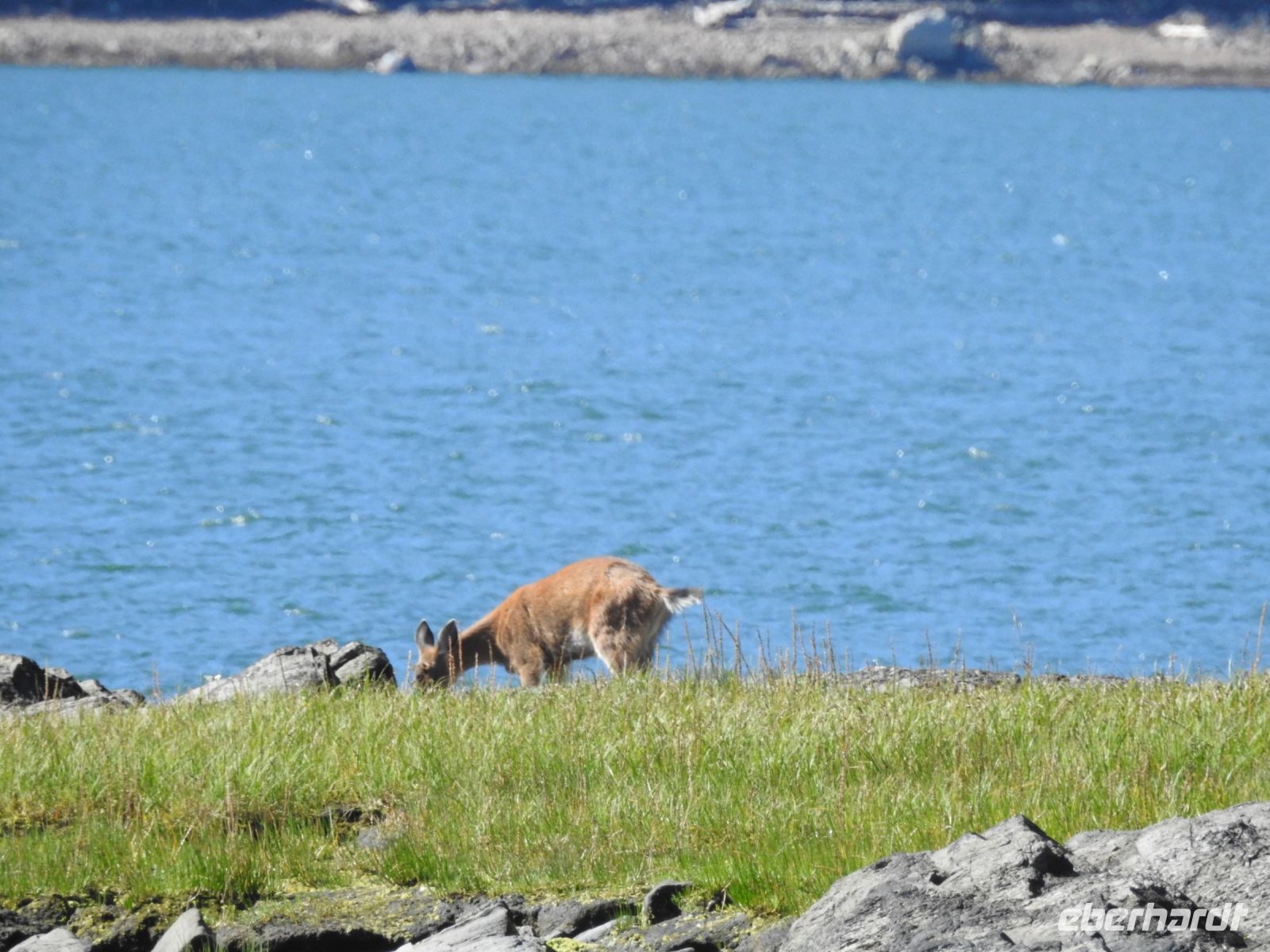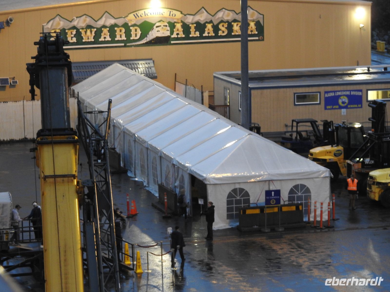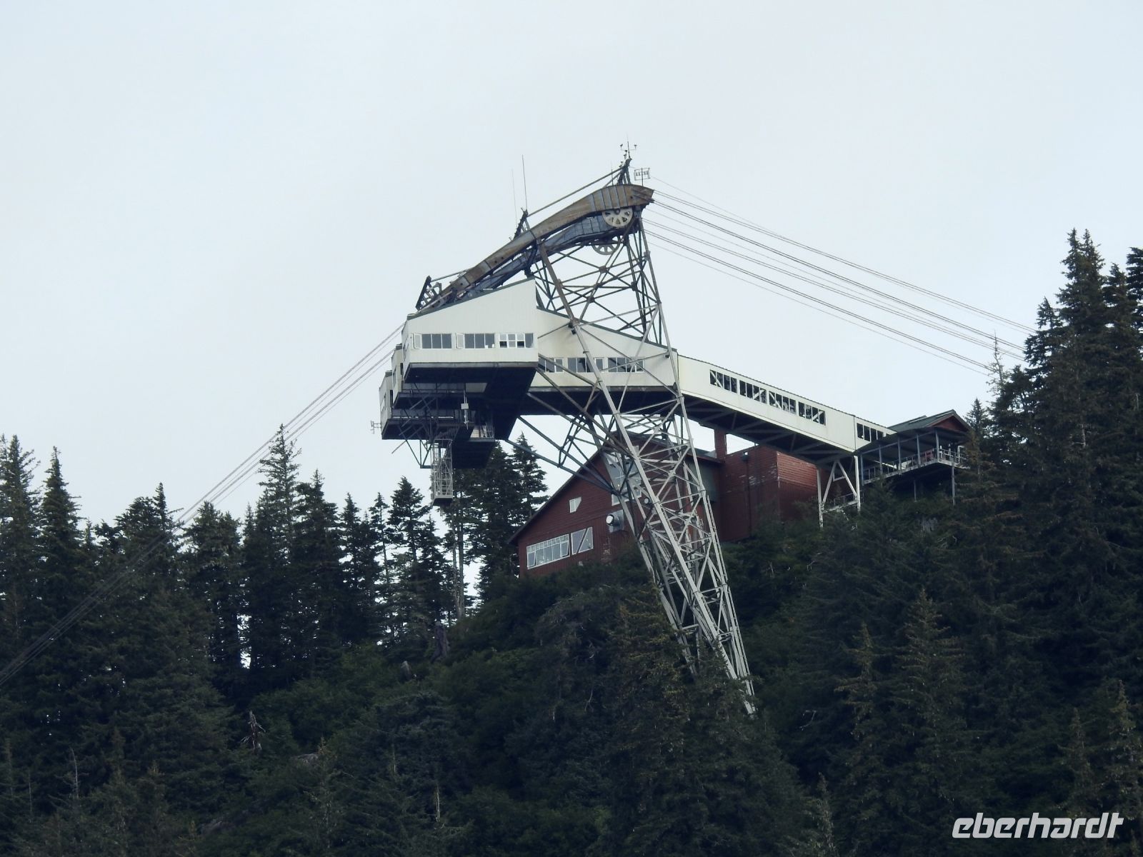 Einiges ist anders als bei vorherigen Kreuzfahrten mit NCL. Zum Beispiel treffen sich die Ausflügler nicht mehr an Bord, sondern an Land. Erstaunlicherweise geht das ruck zuck und wir sind in Kürze von Bord. In Ketchikan führt uns der Weg zunächst in eine riesige Lagerhalle, in der ein (vermutlich temporärer) Markt aufgebaut ist, um die gutbetuchten Kreuzfahrer zum Kauf zu verführen. Alles, was das Touristenherz begehrt oder auch nicht, ist im Angebot. Bald schon finden wir den Startpunkt unseres Ausflugs und bekommen jeder einen Aufkleber, an dem zu erkennen ist, zu welcher Gruppe wir gehören. Irgendwann dürfen wir dann losmarschieren, folgen unserem Guide. Der Weg führt durch einen Güterwagon in ein ehemaliges Industriegebiet bis zu einem kleinen Ausflugsboot. Die Tour scheint ausgebucht, alle beliebten Sitzplätze draußen sind schnell besetzt. Dass das keine Rolle spielt, zeigt sich später unterwegs. Wir haben eine Kapitänin, die genau weiß, wo sich die Nester Weißkopfadler befinden. Also sehen wir tatsächlich einen Horst mit Babyadlern, die noch keinen weißen Kopf haben, denn die Federn färben sich erst später von braun auf weiß. Immer wieder tauchen in den Bäumen versteckt, weiße Punkte auf, die wir bald als Weißkopfadler zu identifizieren wissen. Einen kurzen Stopp legen wir in angemessener Entfernung an einem indigenen Dorf ein. Von weitem sind das bemalte Haus und die Totempfähle zu sehen. Letzter Stopp ist der erste hier errichtete Leuchtturm, der inzwischen ein moderner ist und sich auf einem kleinen Inselchen befindet. Unsere Gastgeber verwöhnen uns mit einem Imbiss und Getränken und bald darauf sind wir zurück am Schiff.