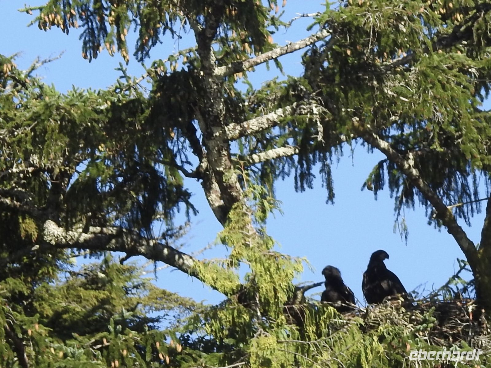 Im Sealife Center gibt es Aquarien mit verschiedenen Meerestieren zu bewundern. Riesige Seelöwen drehen ihre Runden, der große Oktopus macht leider gerade ein Nickerchen. In anderen Becken dürfen unter Aufsicht Seesterne und andere kleine Meerestiere angefasst werden. Und, es gibt WLAN. Nach gut eineinhalb Stunden setzen wir unseren Weg fort Richtung Anchorage. Am Wegesrand entdeckt Anna einen weiteren Adlerhorst auf einem fast abgestorbenen Baum. Auf dessen kahlen Ästen haben sich zwei Weißkopfadler niedergelassen.