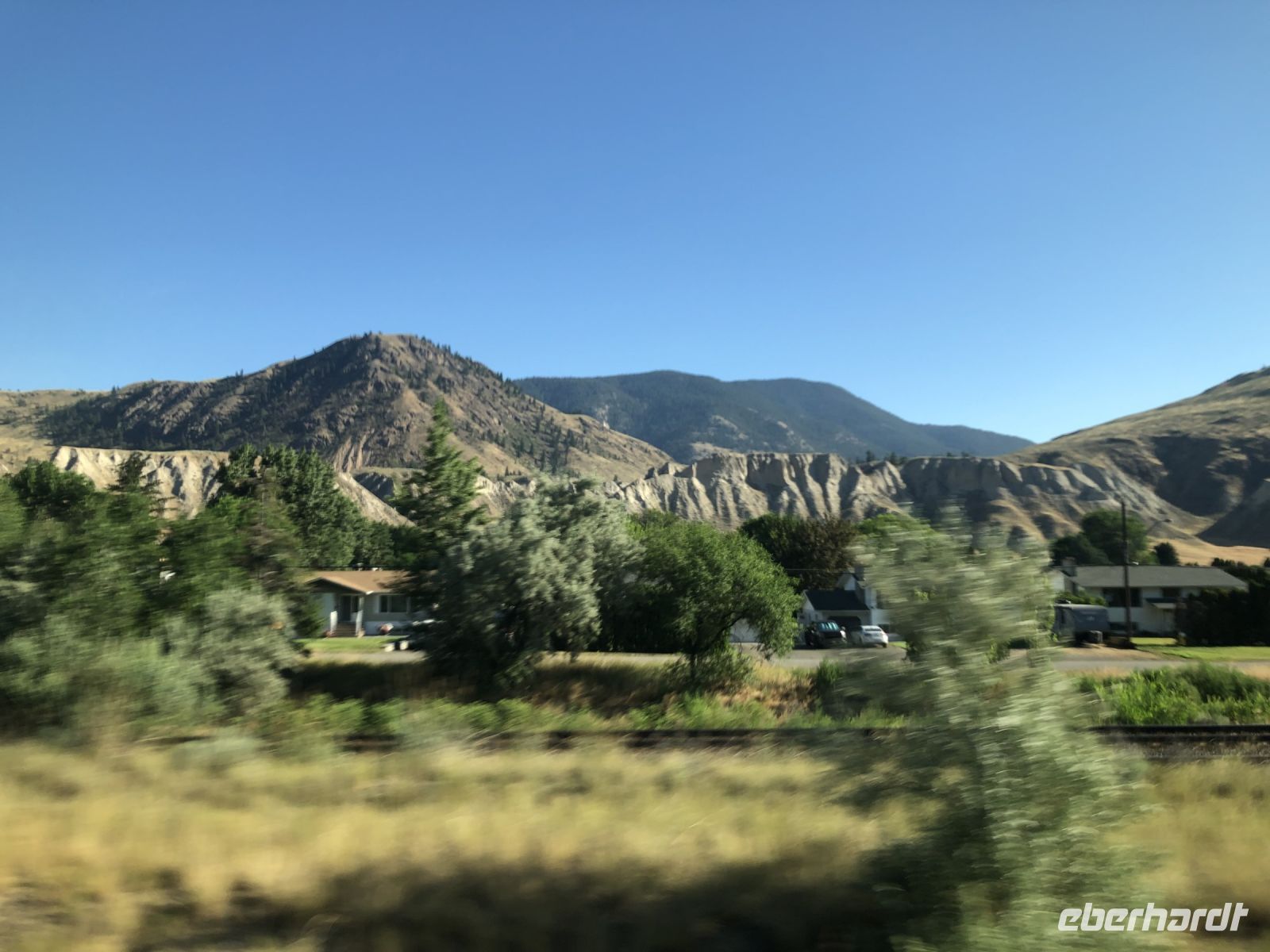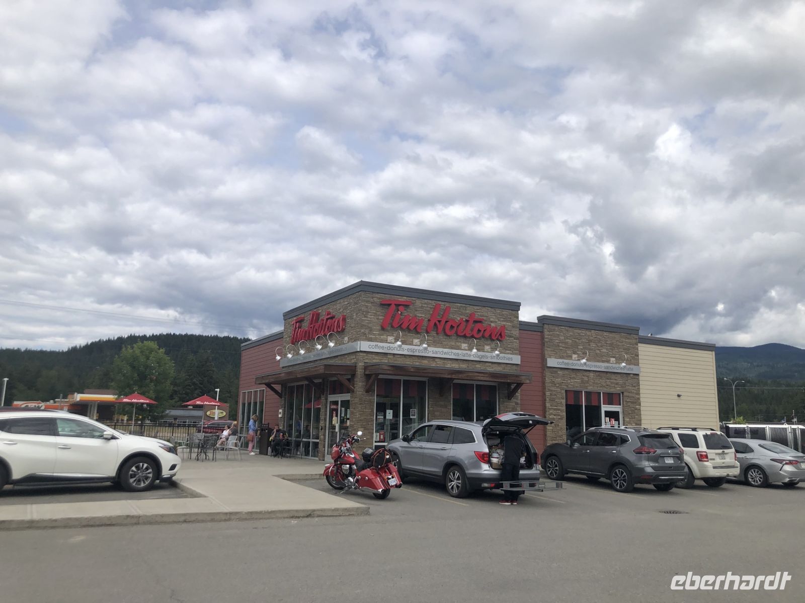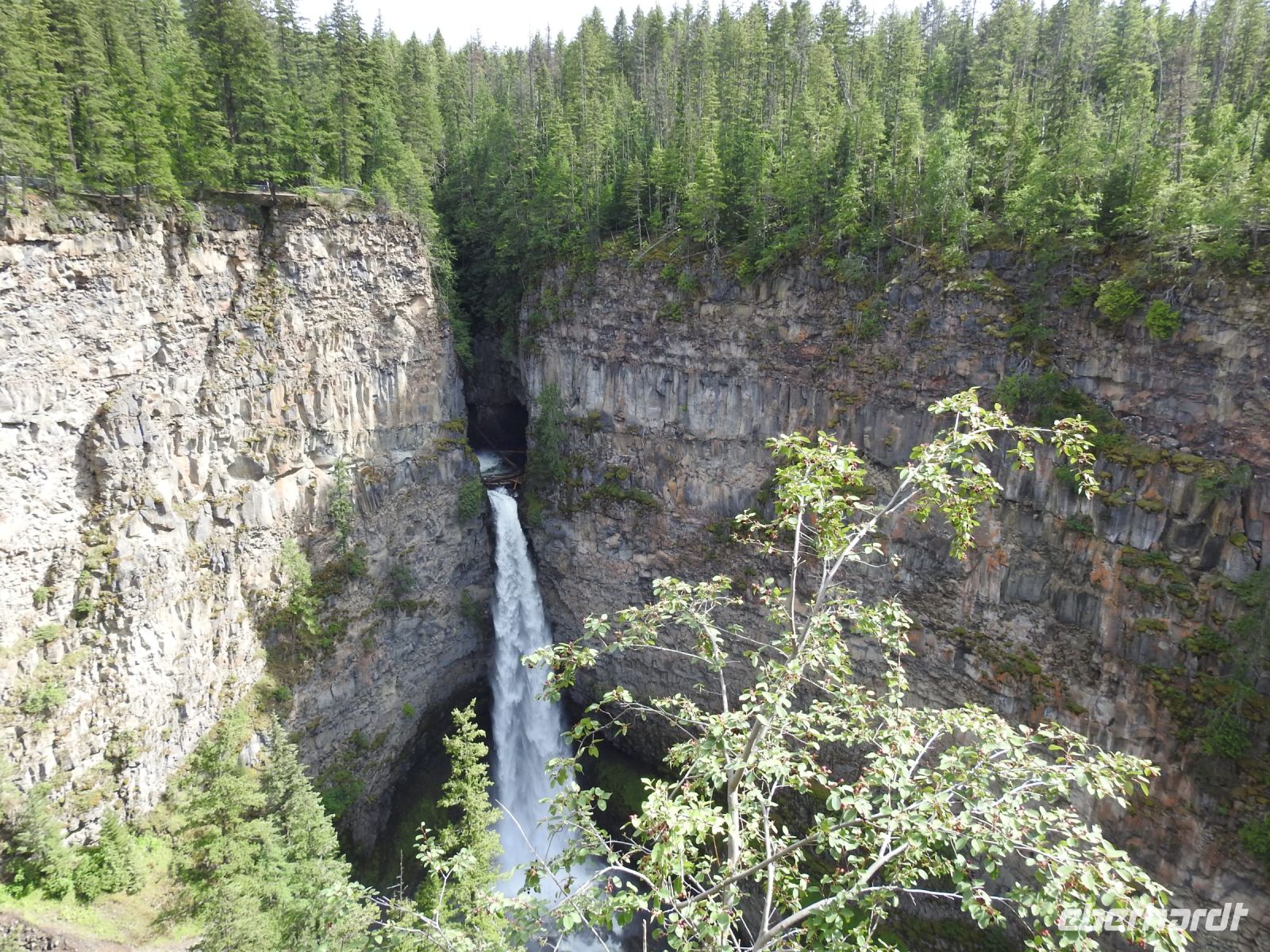 Mittags kehren wir in Clearwater im Tim Hortons ein. Wir fahren durch den Wells Gray Nationalpark, pausieren an einem See mit Inselchen und besuchen einen Wasserfall. Im Liquor Store erwerben wir Getränke für den Abend bevor wir unser Hotel Southampton Thompson Inn & Conference Center erreichen. Nach dem Abendessen lassen wir uns die zuvor erworbenen Getränke auf der Terrasse schmecken.
