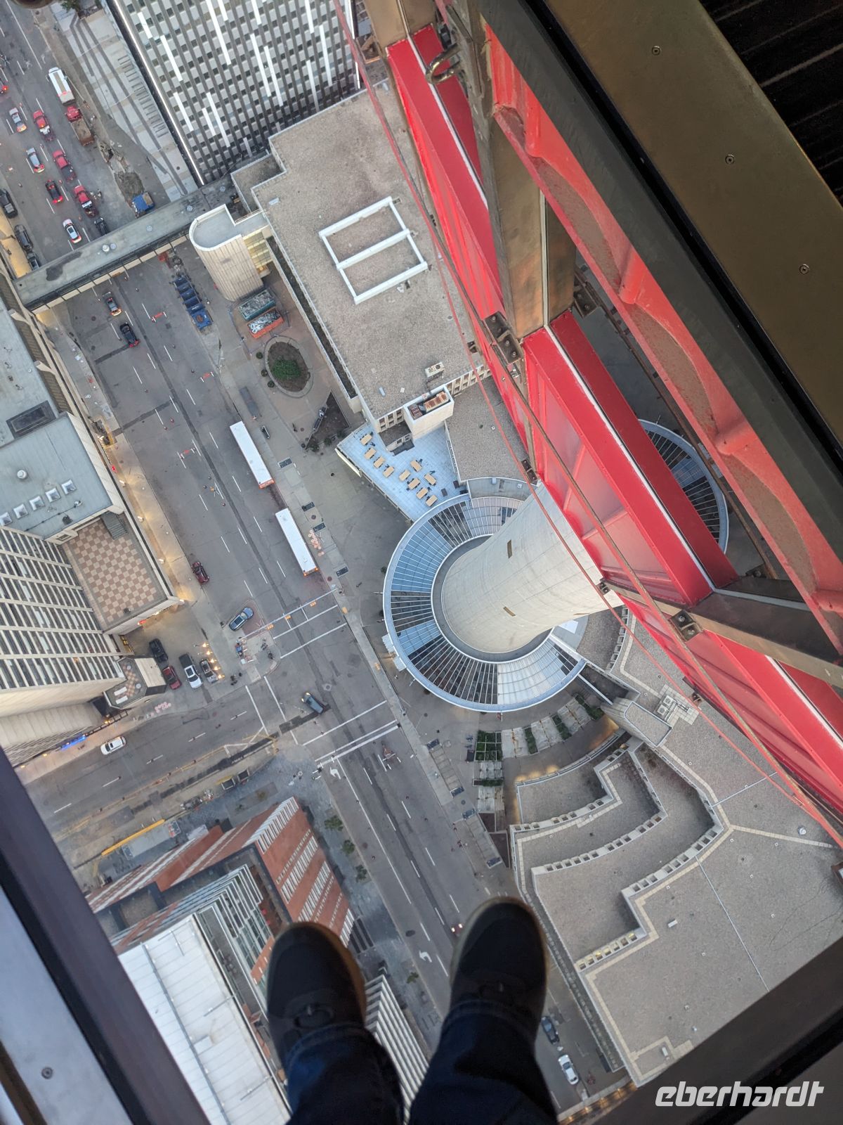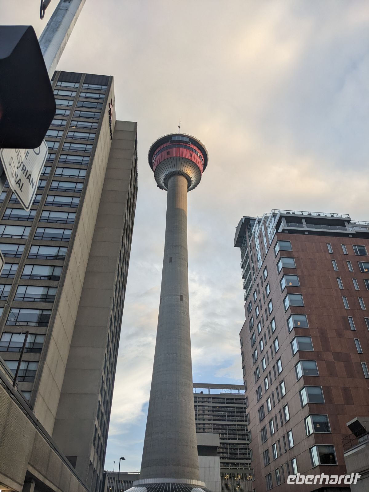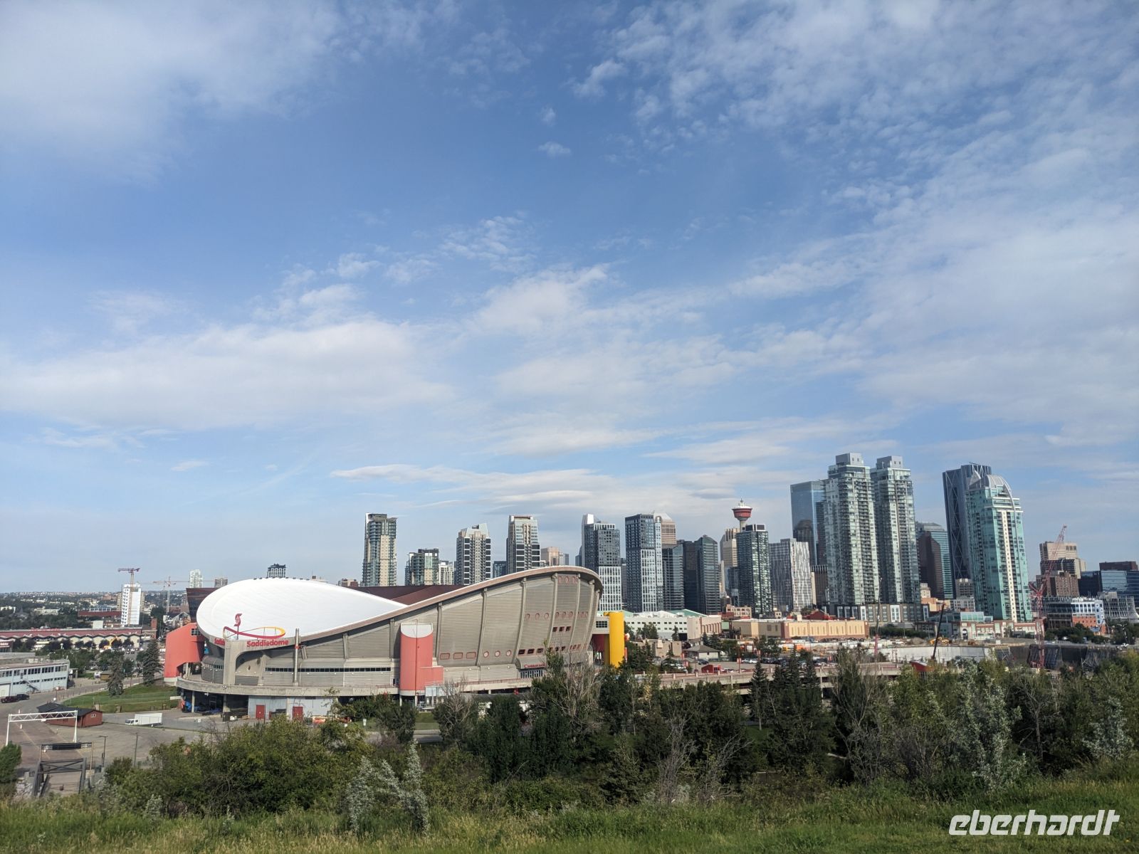 Nachdem alle gut in Frankfurt am Flughafen angekommen sind, starteten wir mit leichter Verspätung gemeinsam nach Calgary, Alberta. Dort nahm uns unser Reiseleiter für den ersten Teil der Reise in Kanada in Empfang: Wolfie. Nach kurzer Fahrt in die Innenstadt checkten wir in unser Hotel ein und, diejenigen, die die Halbpension dazugebucht hatten, liefen zusammen zum Abendessen. Die anderen trafen wir später wieder am Calgary Tower, wo wir alle gemeinsam einen tollen abendlichen Blick über die Stadt genießen konnten. Zurück im Hotel fielen wir müde in unsere Betten. Aufgrund der Zeitverschiebung wachte der Großteil der Gruppe schon zwischen um drei und um vier auf, aber vielfach konnten wir noch etwas ruhen, bevor wir für den nächsten Reisetag aufstehen sollten.