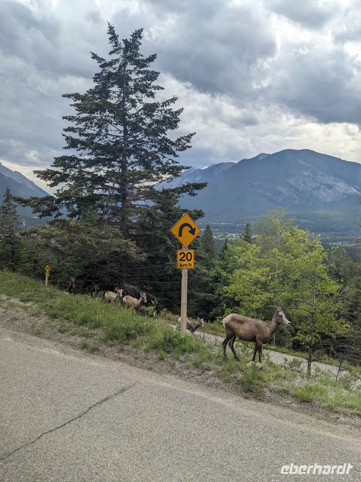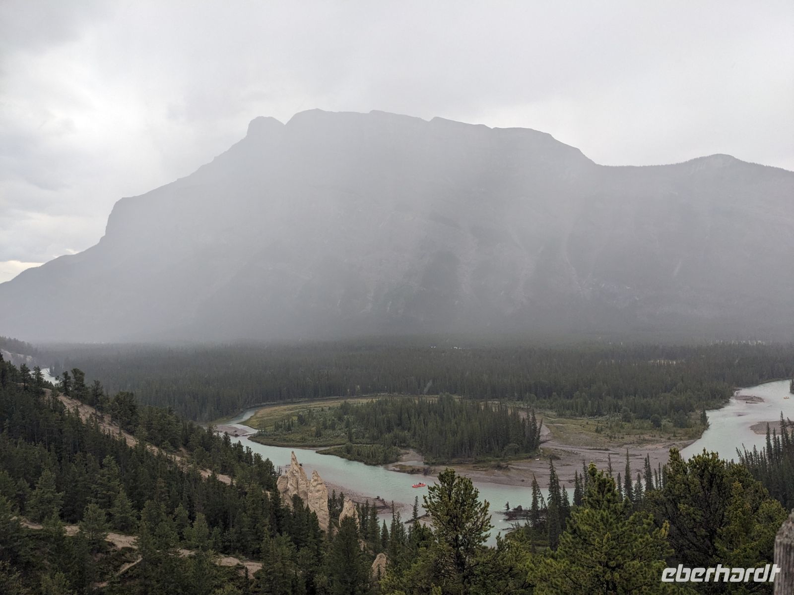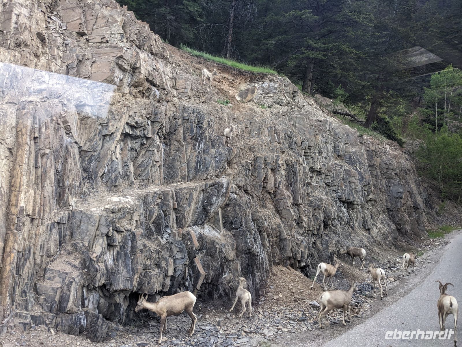 Bei einer kurzen Stadtrundfahrt lernten wir Calgary etwas genauer kennen und erspähten die berühmte Stampede und das Eishockeystadium vom Scotshill Lookout aus. Bei einem kleinen Spaziergang hoch auf den Aussichtspunkt sahen wir tolle Gärten und schön angelegte Häuser. Weiter führte uns unsere Fahrt zum naheliegenden Olympiagelände, wo vor etlichen Jahren die Olympischen Winterspiele ausgerichtet wurden – vor allem bekannt für die jamaikanische Bobmannschaft und Eddy the Eagle. Tolle Erinnerungsschnappschüsse durften natürlich im Bobschlitten nicht fehlen und auch die riesige Sportanlage mit mehreren Eishockeyringen war interessant, sich anzuschauen. Zurück auf dem Highway sahen wir die ersten Beschilderungen nach Banff und die Bergkulisse rückte immer näher an uns heran. Im Banff Nationalpark schauten wir zunächst beim Johnston Canyon vorbei, wo wir die kleine Wanderung zu den Unteren Wasserfällen auf uns nahmen. Schon der Weg dorthin durch die Schlucht ist sehr eindrucksvoll und zum Glück ließ sich hier auch die Sonne etwas blicken. Weiter ging es in Richtung Banff zum Norquay Aussichtspunkt, wo wir die Rocky Mountain Bighorn Sheep zu sehen bekamen. Oben angekommen, bot sich uns eine tolle Aussicht über die Stadt Banff im untenliegenden Tal. Anschließend fuhren wir zum eindrucksvollen Banff Springs Hotel, welches beinahe an ein riesiges Märchenschloss erinnert. Von dort spazierten wir hinunter zu den naheliegenden Bow Falls, welcher nicht unbedingt durch Fallhöhe, aber durch seine Breite Eindruck schindete. Leider schlug hier das Wetter etwas um und es begann immer mehr zu regnen, sodass wir am Surprise Corner Lookout mit Blick auf das Banff Springs Hotel nur vorbeifuhren. Doch konnten wir es uns nicht nehmen lassen an den sogenannten Hoodoos auszusteigen. Die an Kleckerburgen erinnernden Felsformationen sind eine beliebte Attraktion in Banff und von diesem Aussichtspunkt aus, gut zu sehen. Der Regen nahm immer mehr zu und so fuhren wir zwar zum Minnewanka See, sahen den Staudamm, stiegen jedoch nicht aus, sondern fuhren dann direkt weiter zum Hotel, welches zentral in Laufnähe zur Fußgängerzone lag, sodass wir nach unserem gemeinsamen Abendessen im El Toro Restaurant noch einen Spaziergang durch die Stadt unternehmen konnten.