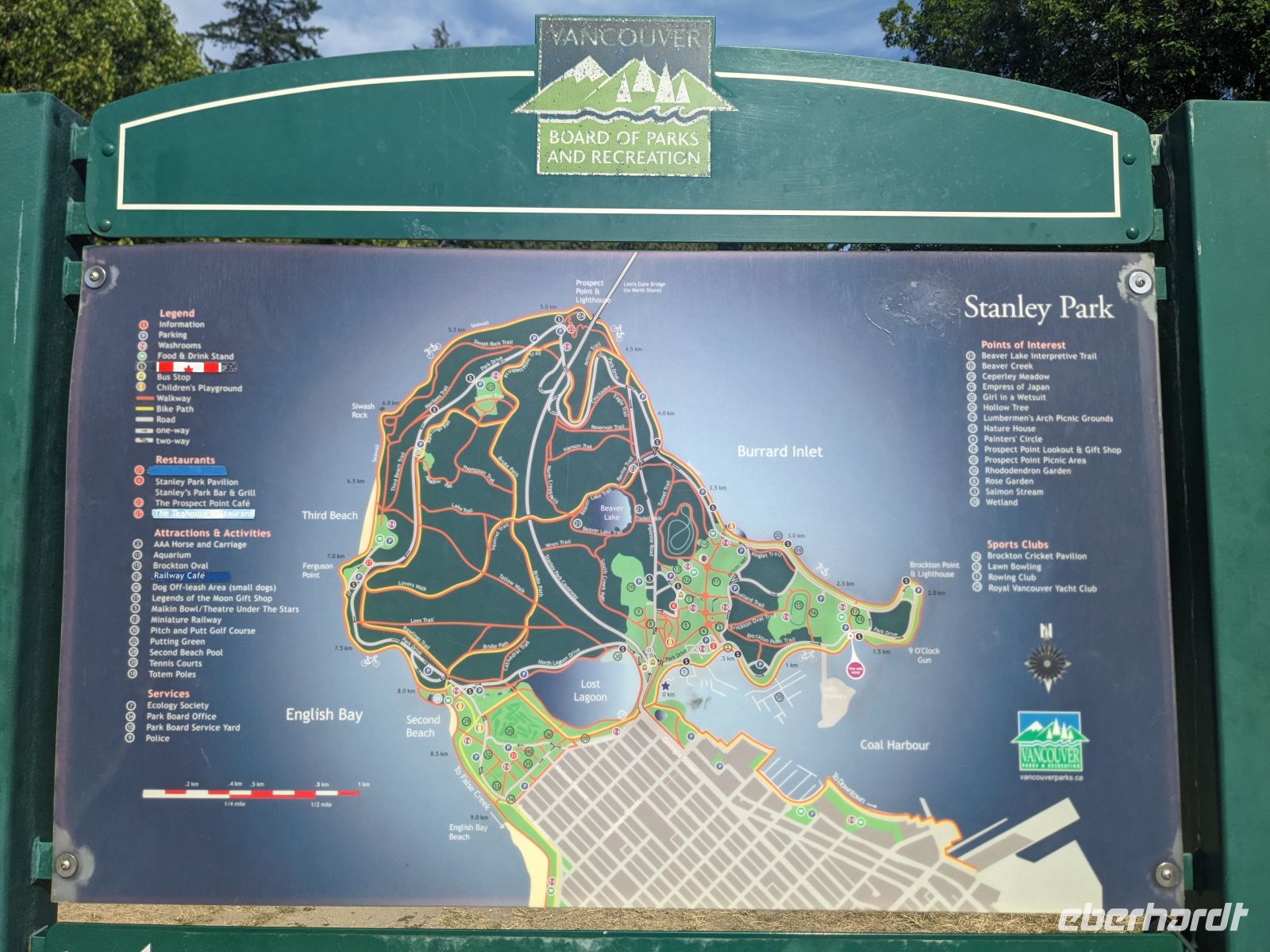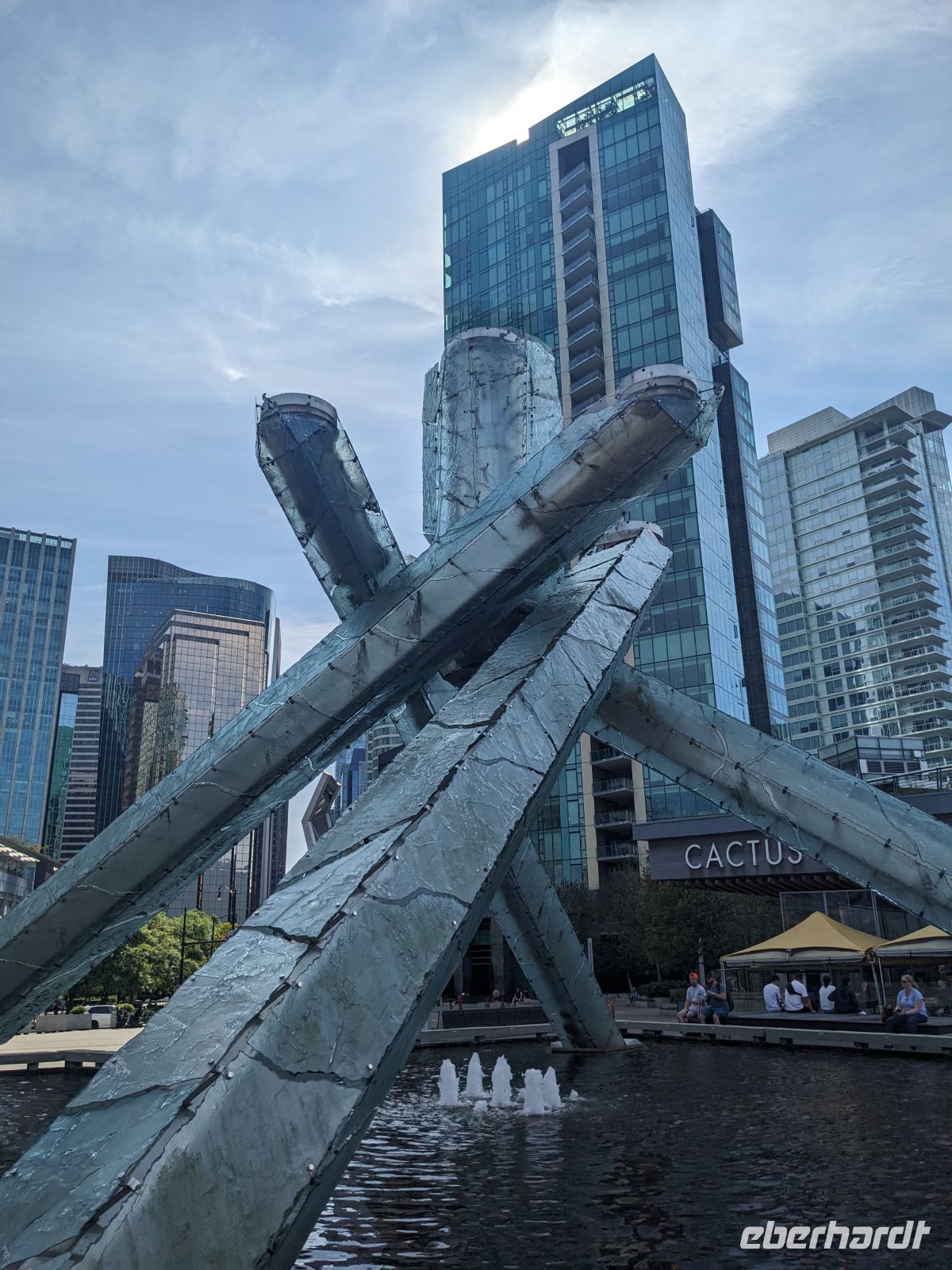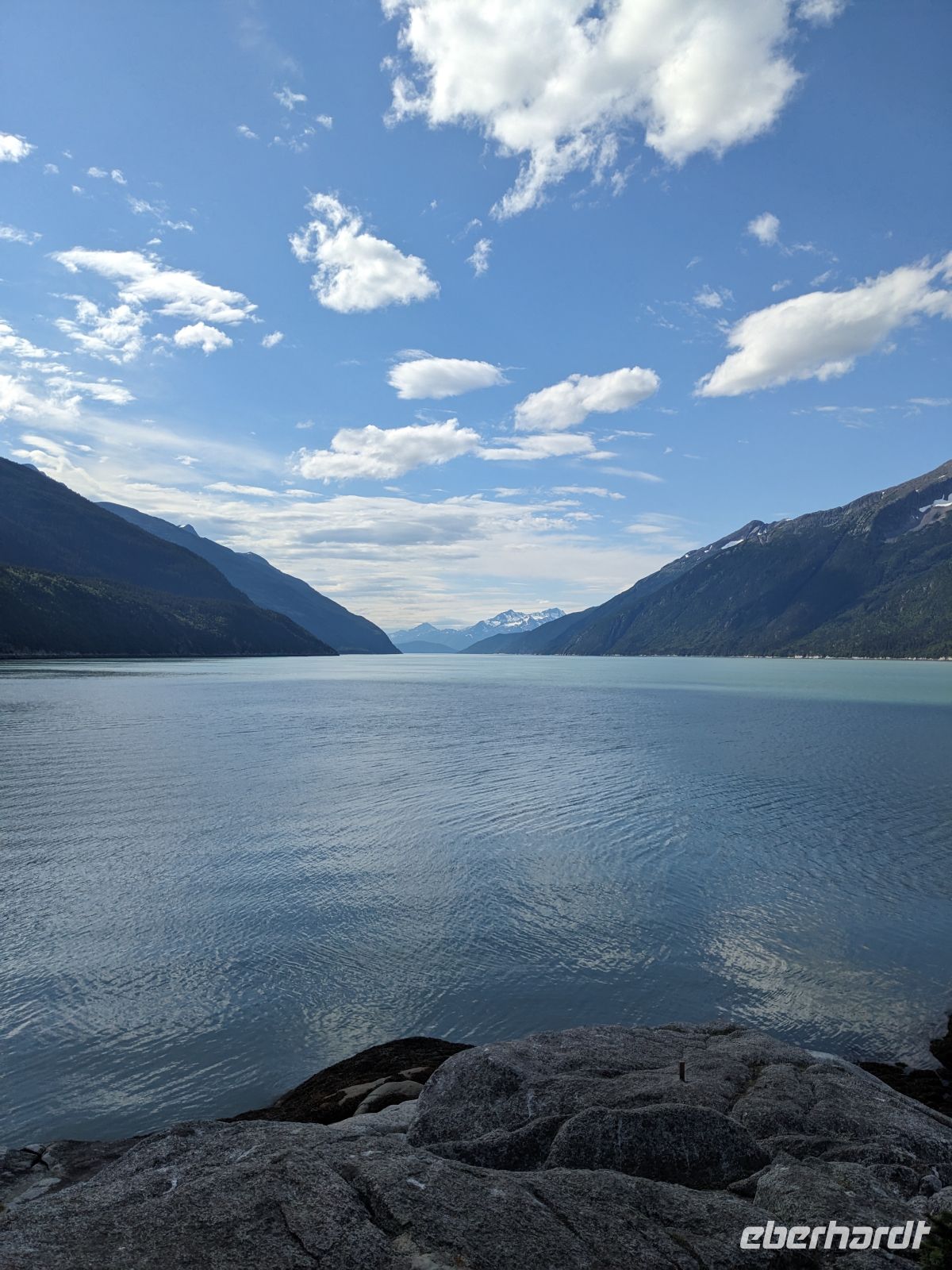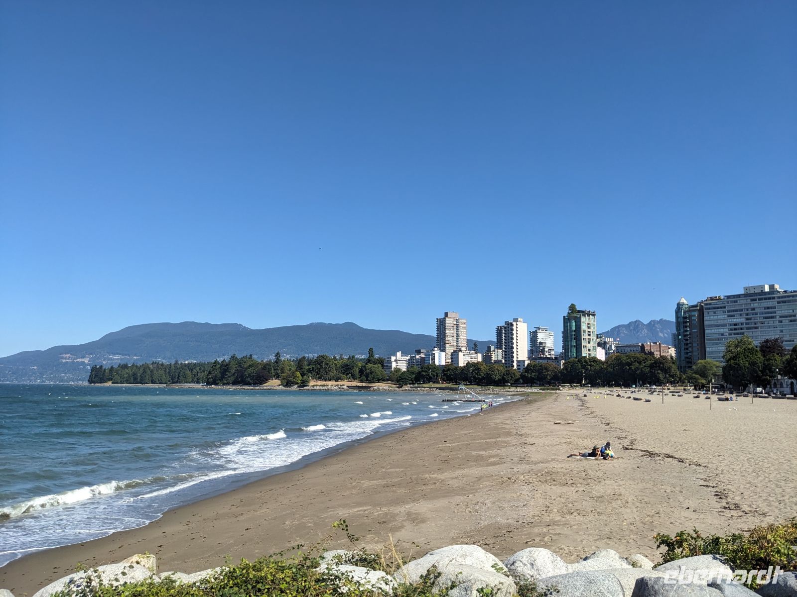 Nach einem frühen Frühstück machten wir uns auf den Weg Richtung Vancouver. Die Fahrt führte uns zunächst durch hügelige Landschaften und kleine Orte, bevor wir nach einem Stopp in Hope für eine Mittagspause die letzten Kilometer entlang beeindruckender Bergketten zurücklegten. Gegen Nachmittag erreichten wir die Metropole am Pazifik. Unser erster Halt: Gastown, das historische Herz der Stadt, wo wir die berühmte Steam Clock pünktlich zur vollen Stunde erlebten. Anschließend flanierten wir entlang der Waterfront bis zum Canada Place, genossen den Blick auf den Hafen und die Berglandschaft in der Ferne. Ein Highlight war der Stanley Park, wo wir entlang des Seawalls spazierten – immer begleitet von der frischen Meeresbrise und Blicken auf die Skyline. Am späten Nachmittag bzw. frühen Abend stießen dann unsere neugewonnenen Gruppenmitglieder dazu, die nur den Kreuzfahrt - und Alaska - Teil begleiten sollten. Wir kehrten in ein Restaurant an der English Bay ein, wo wir uns erstmal alle untereinander kennenlernten und durch die großen Fenster einen traumhaften Sonnenuntergang erleben durften.