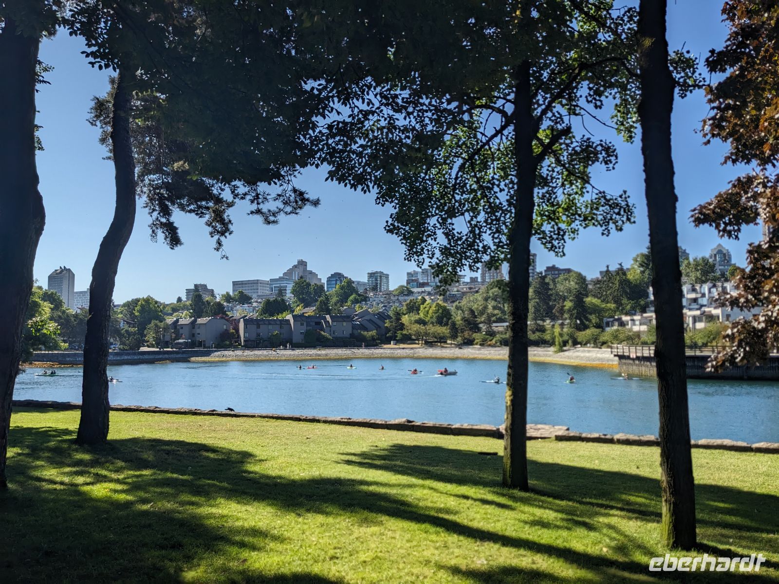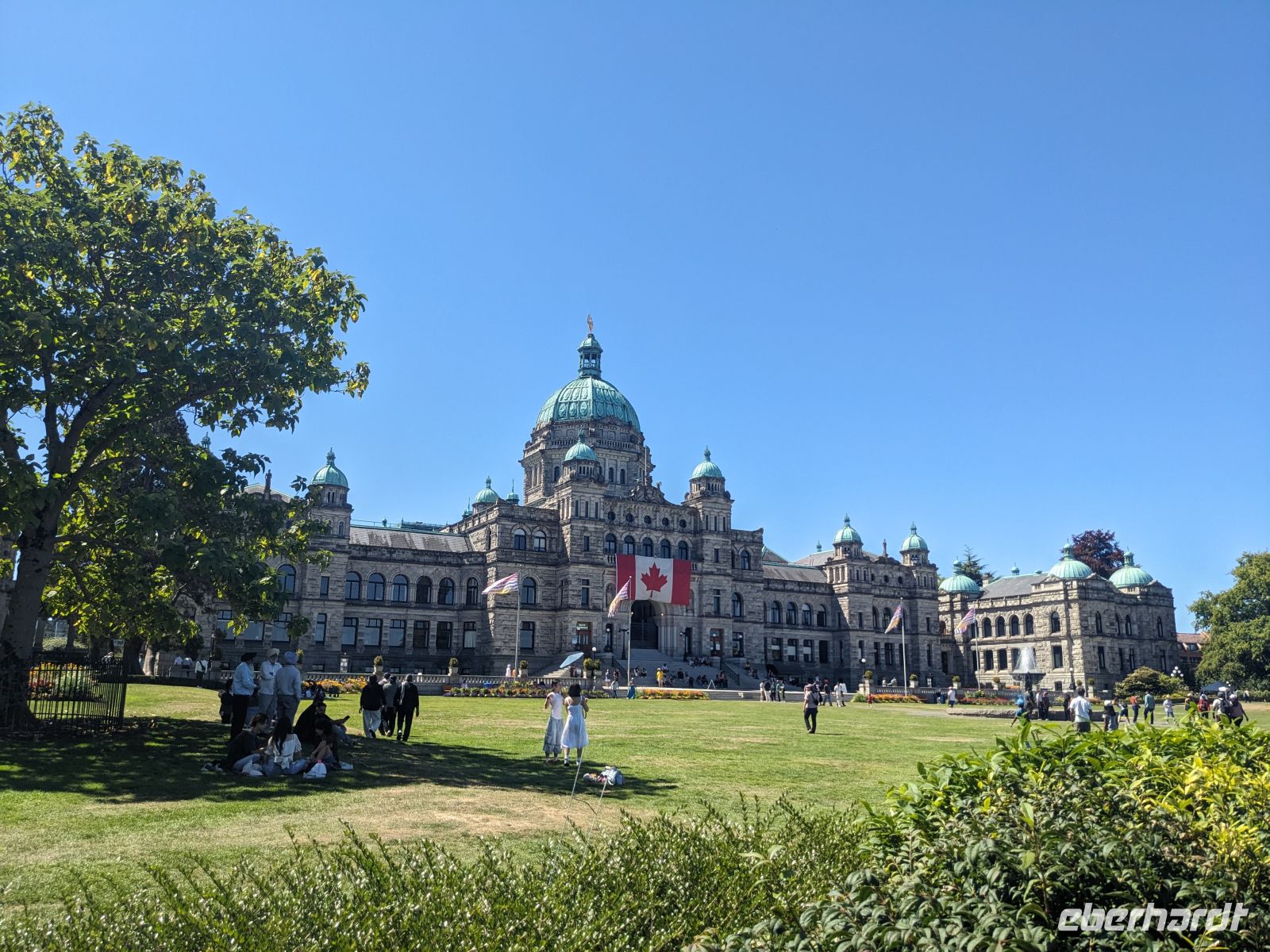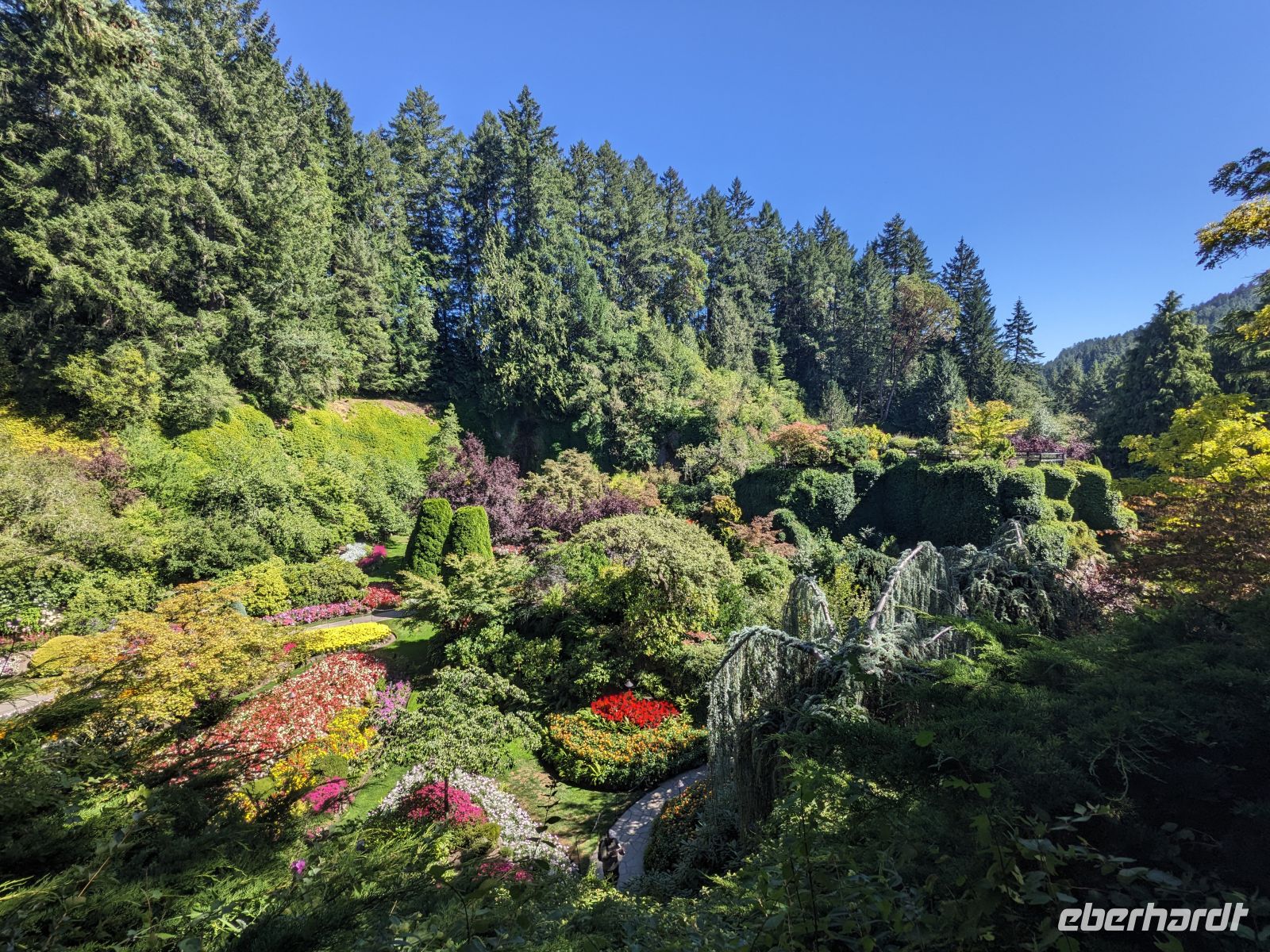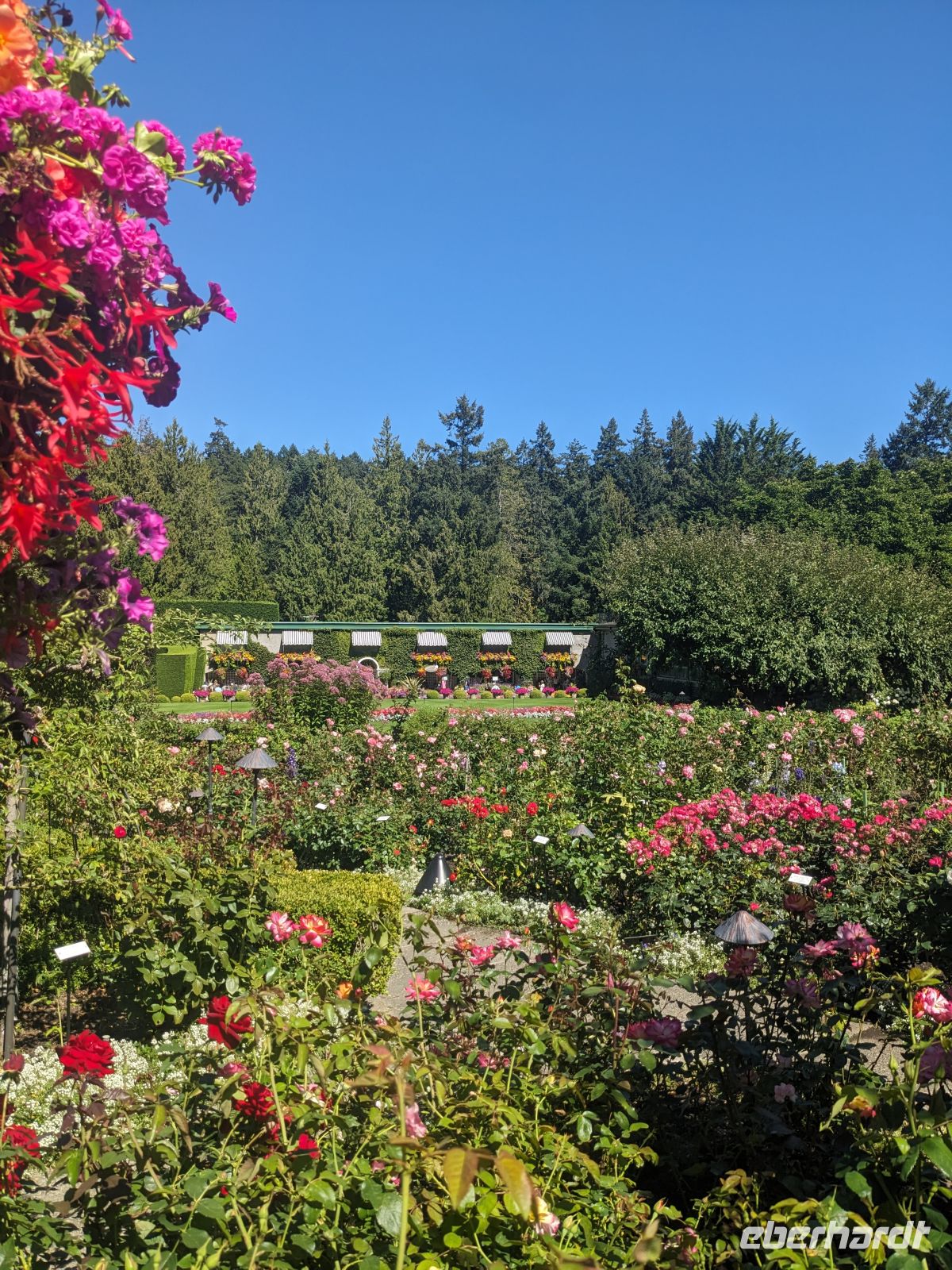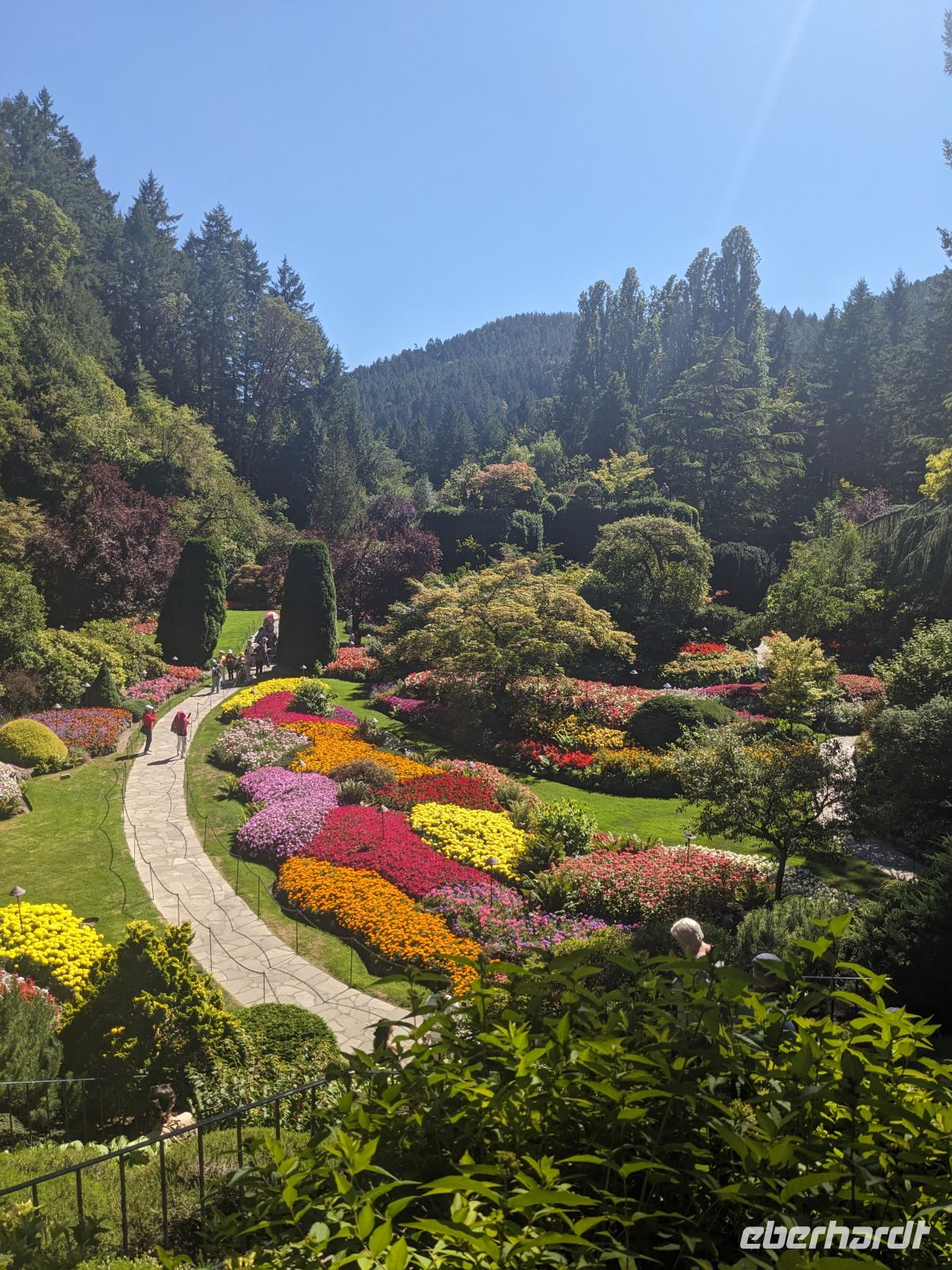 Heute stand ein fakultativer Ausflug nach Vancouver Island auf dem Programm. Mit der Fähre setzten wir über und schon die Überfahrt bot großartige Ausblicke auf bewaldete Inseln und tiefblaues Wasser. In Victoria, der charmanten Hauptstadt British Columbias, erlebten wir bei unserer kleinen Stadtrundfahrt zunächst die Chinatown, das imposante Empress Hotel und das Parlamentsgebäude sowie die Mile 0 des Transcanada Highways, die beeindruckende und bewegende Geschichte von Terry Fox und die Küstenlinie. Von dem am heutigen Tag stattfindenden Fahrradrennen ließen wir uns hierbei nicht stören. Nach ein wenig Freizeit in der schönen Fußgängerzone, besuchten wir am Nachmittag die berühmten Butchart Gardens – ein wahres Blumenparadies, das mit seinen farbenfrohen Arrangements verzauberte. Auf der Rückfahrt zur Fähre genossen wir noch einmal die pazifische Szenerie, ehe wir am Abend nach Vancouver zurückkehrten. Die Nicht-Ausflügler verbrachten einen selbstbestimmten Tag in der Stadt und stießen später zu uns, um gemeinsam den Sonnenuntergang am English Bay zu bewundern. Hier lernten wir auch unsere letzten zwei Nachzügler kennen, die unsere Gruppe komplett machen sollten. Die zwei Abenteurer waren zuvor schon selbst mit dem Mietwagen unterwegs gewesen und hatten viel auf eigene Faust erkundet.