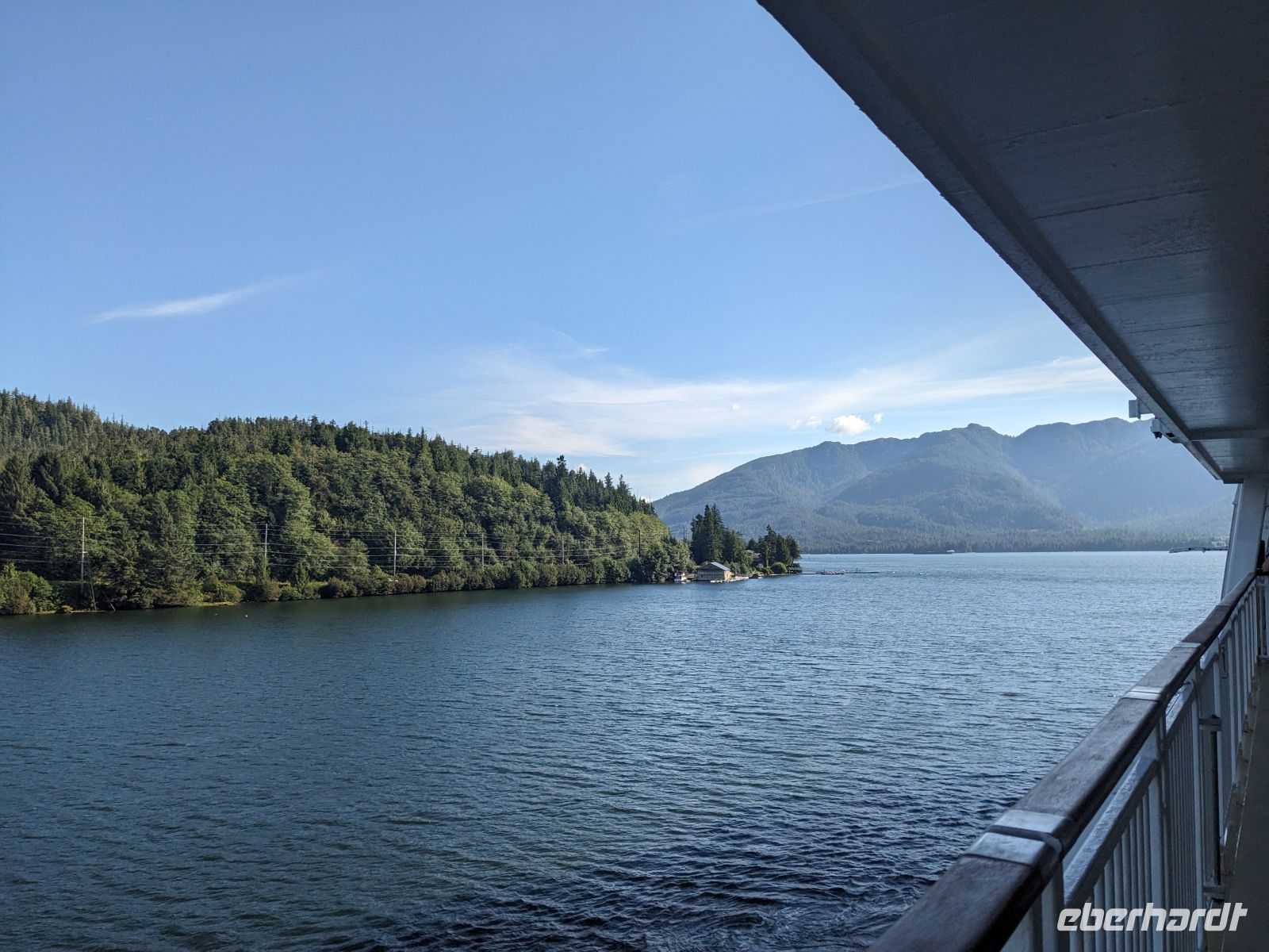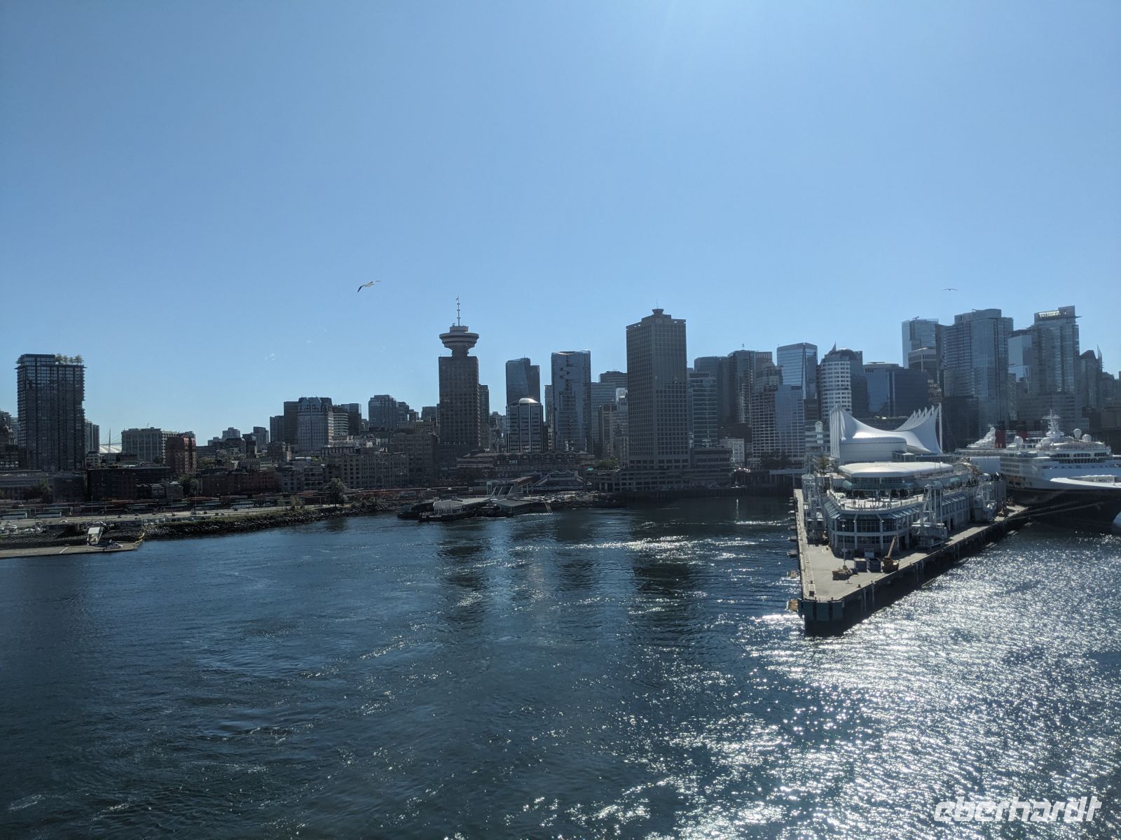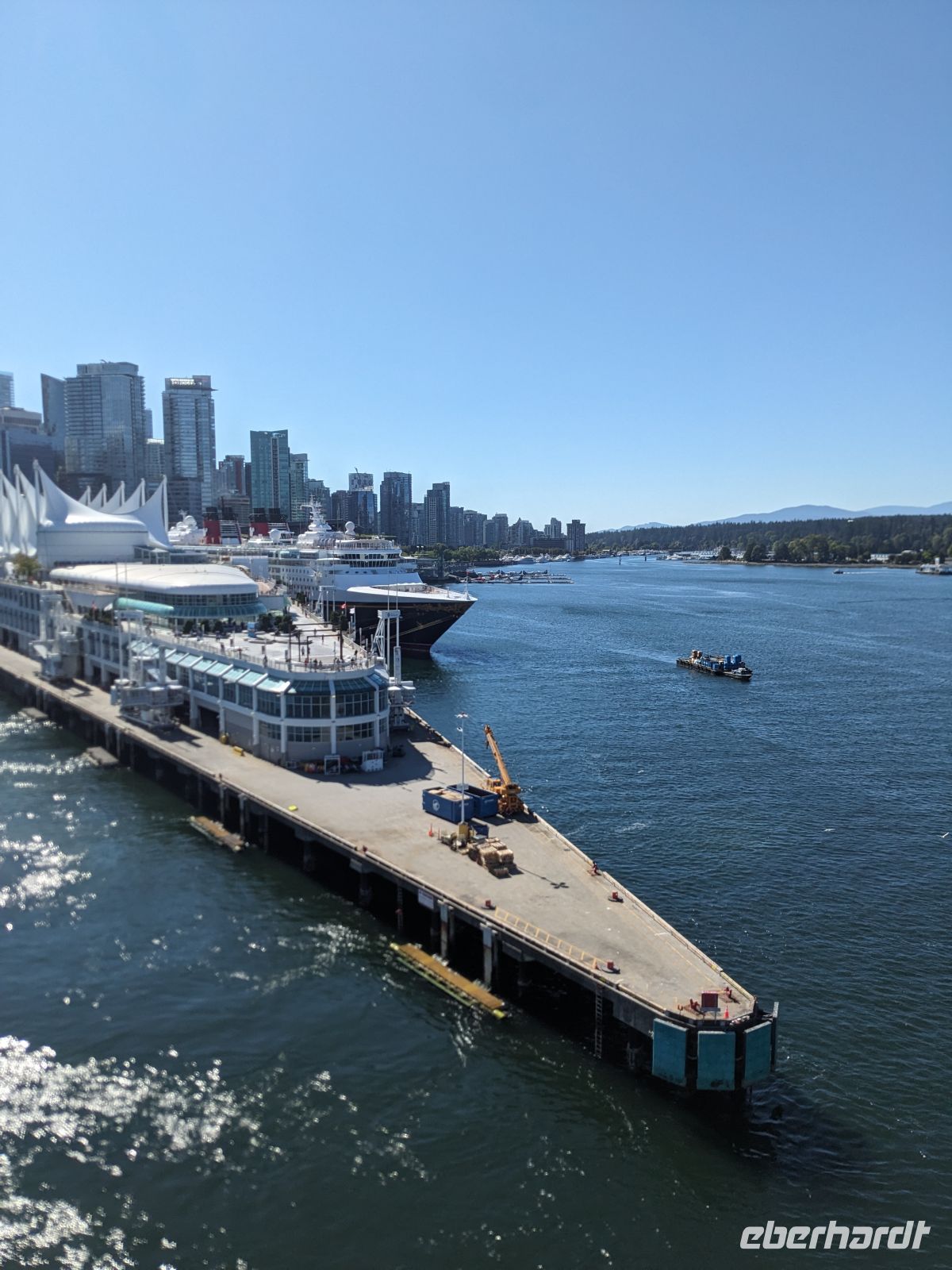 Nach dem Frühstück hieß es Abschied nehmen von Vancouver – zumindest vom Land. Während die neuen Mitreisenden bei einer kurzen Stadtrundfahrt die Highlights der Stadt kennenlernten, nutzten andere die freie Zeit für Spaziergänge oder einen Abstecher nach Granville Island. Gegen Mittag trafen wir uns alle am Kreuzfahrtterminal, wo die Einschiffung reibungslos verlief. An Bord erlebten wir das gemeinsame Auslaufen vom Sonnendeck aus - mit Blick auf die sich entfernende Skyline von Vancouver. Beim ersten gemeinsamen Abendessen stimmten wir uns dann auf die kommenden Tage ein.