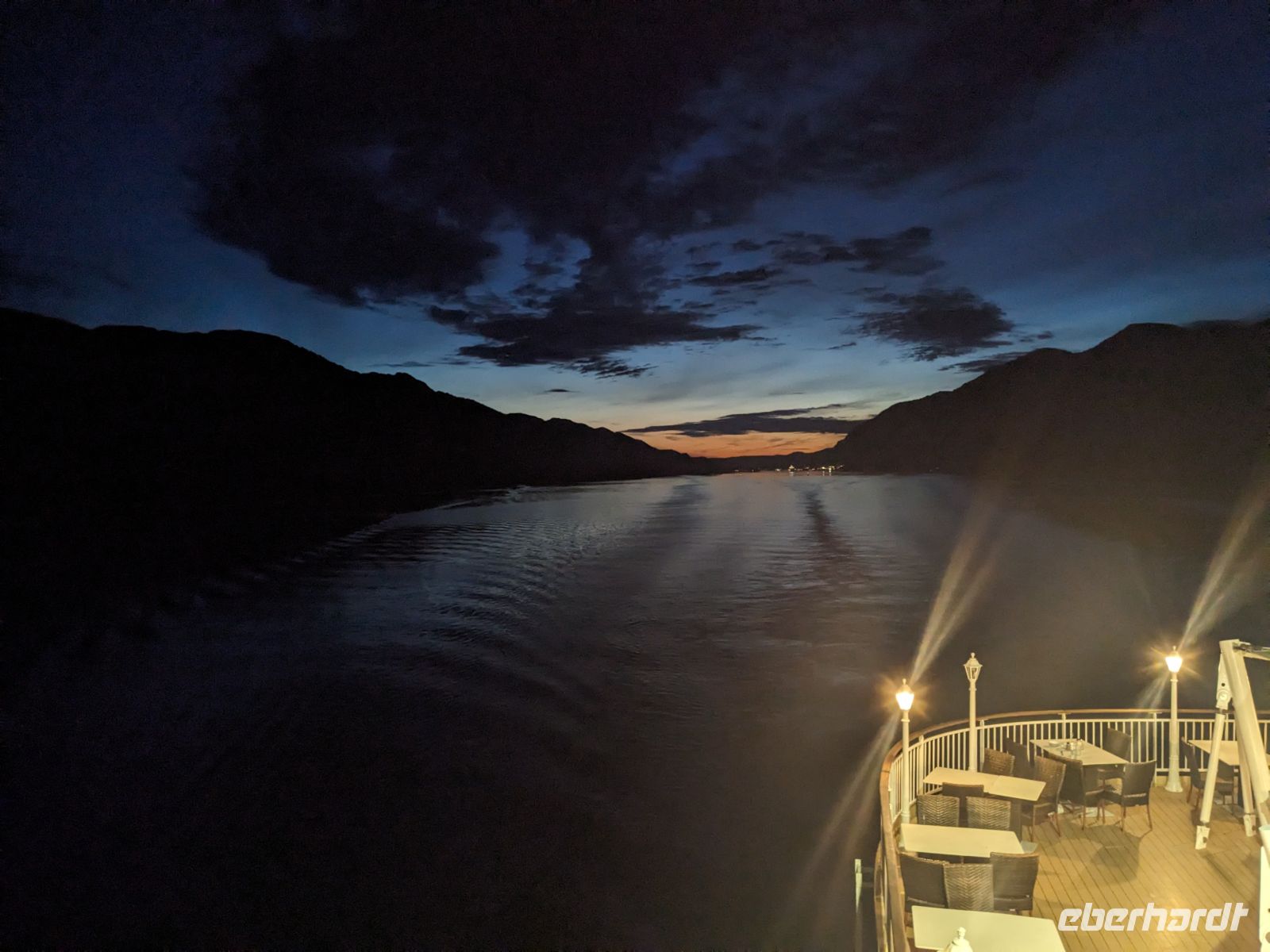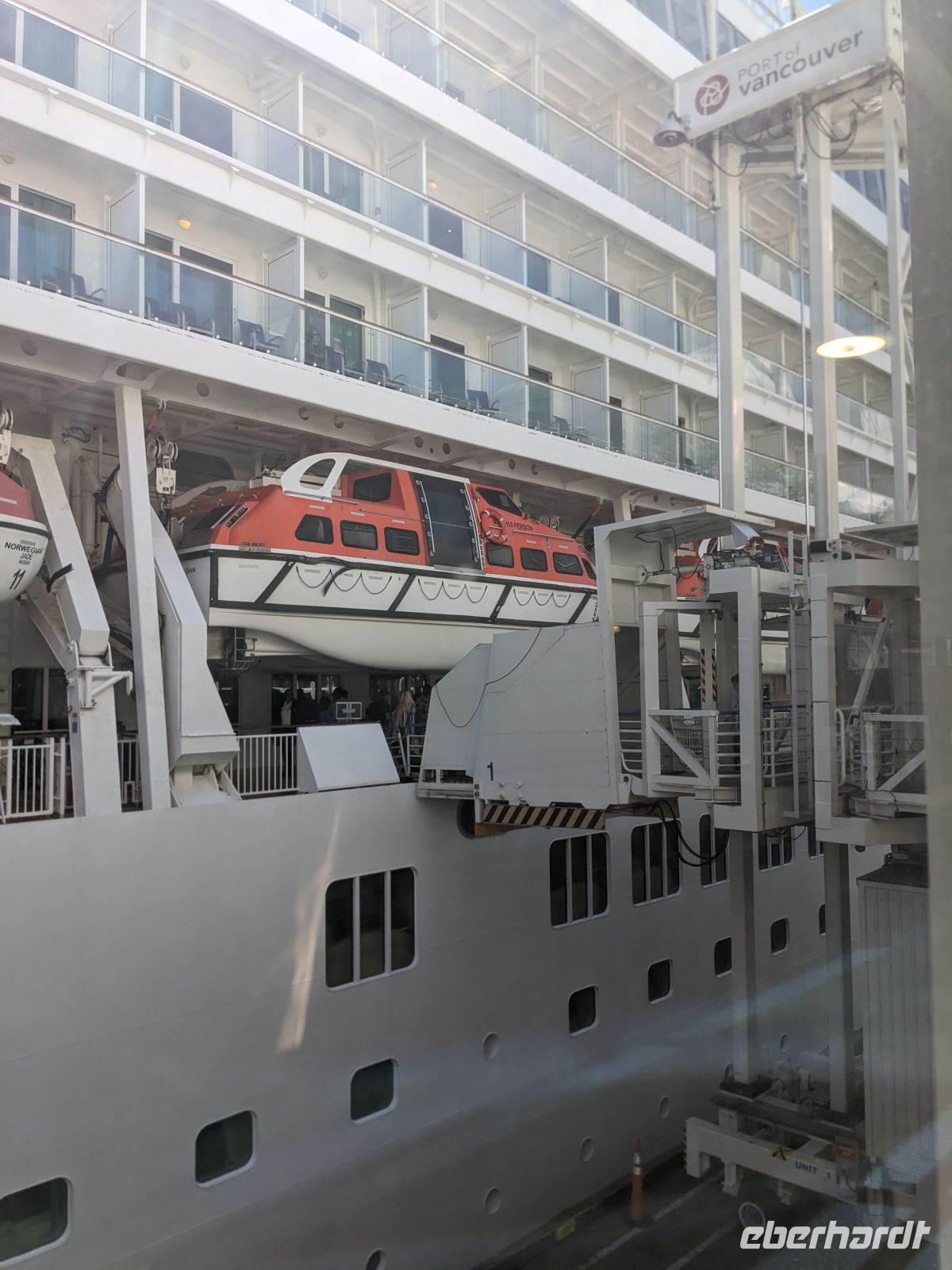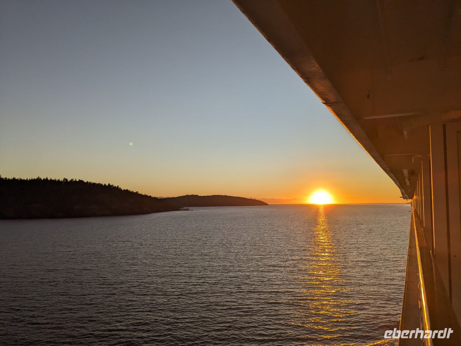 Nach dem Frühstück hieß es Abschied nehmen von Vancouver – zumindest vom Land. Während die neuen Mitreisenden bei einer kurzen Stadtrundfahrt die Highlights der Stadt kennenlernten, nutzten andere die freie Zeit für Spaziergänge oder einen Abstecher nach Granville Island. Gegen Mittag trafen wir uns alle am Kreuzfahrtterminal, wo die Einschiffung reibungslos verlief. An Bord erlebten wir das gemeinsame Auslaufen vom Sonnendeck aus - mit Blick auf die sich entfernende Skyline von Vancouver. Beim ersten gemeinsamen Abendessen stimmten wir uns dann auf die kommenden Tage ein.