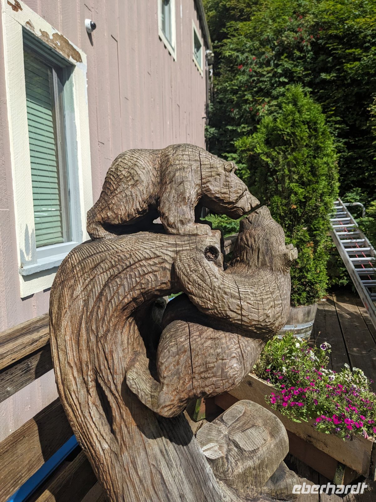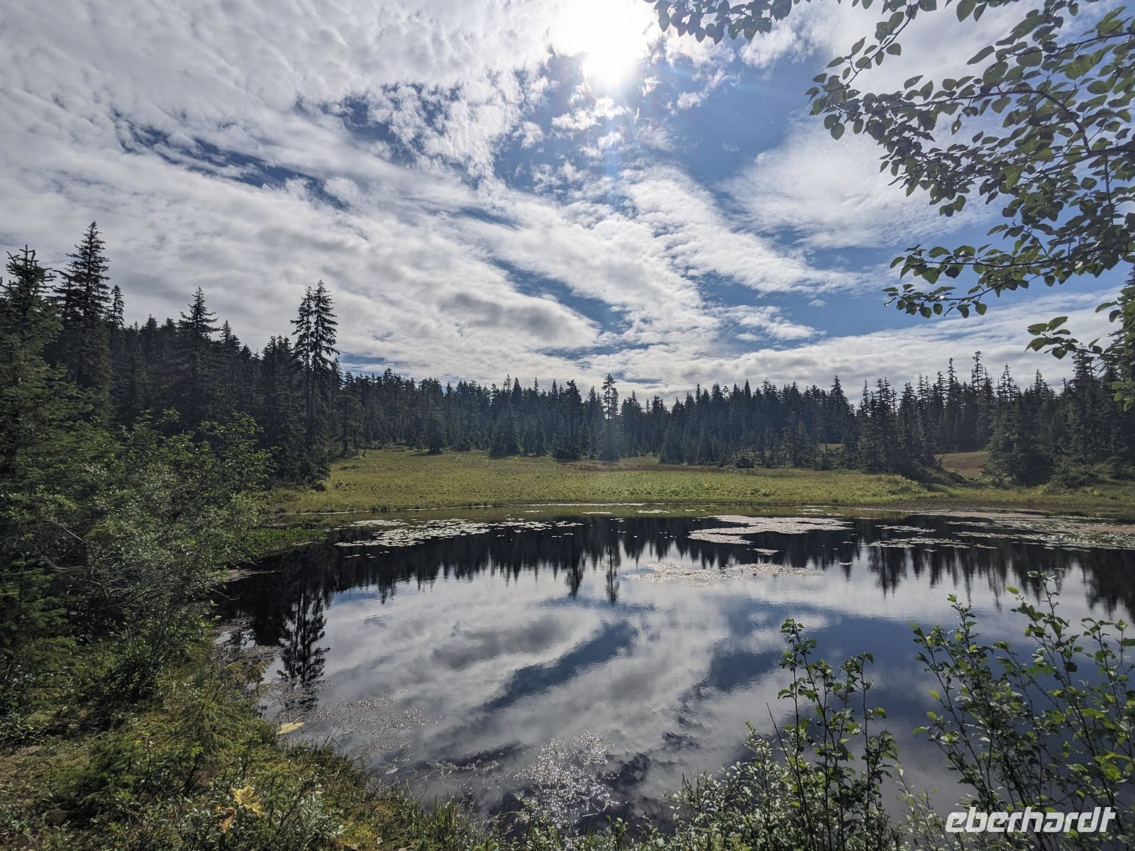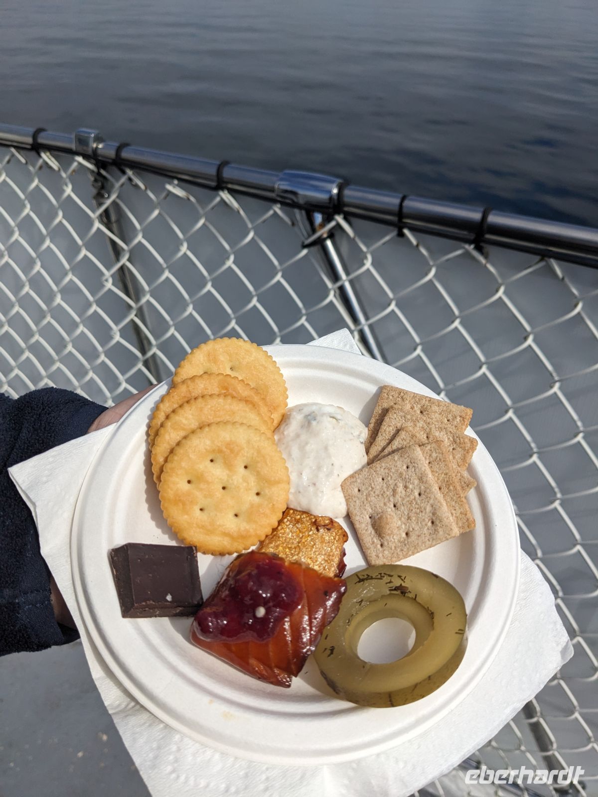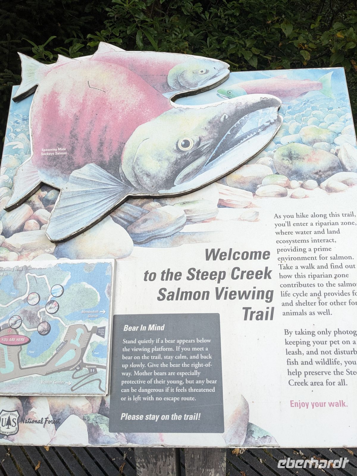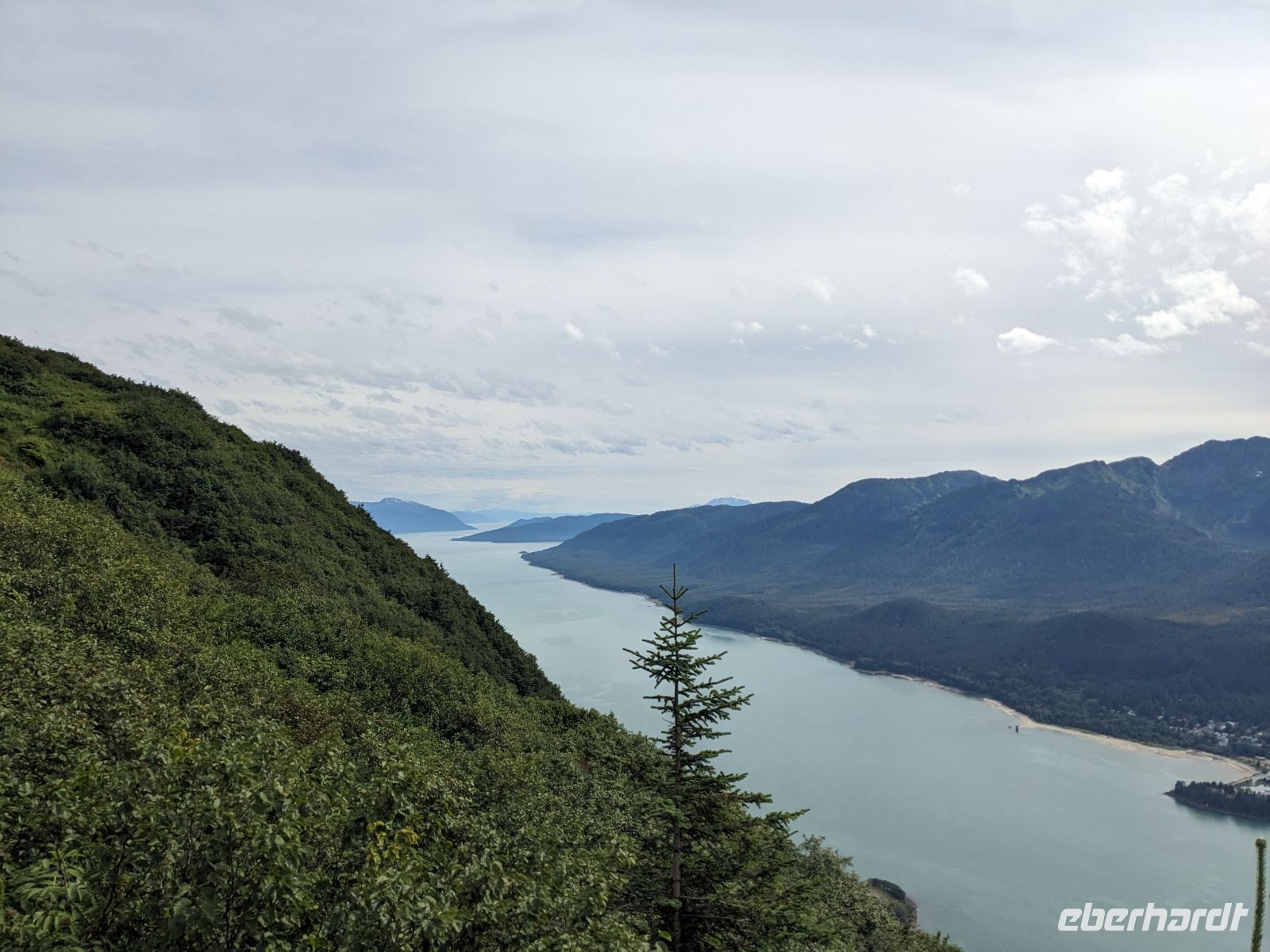 Der Großteil der Gruppe hatte für diesen Tag allerdings ein ganz besonderes Erlebnis gebucht: Walbeobachtungen per Boot. Es waren auch einige Tiere zu sehen gewesen - die sanften Riesen lassen sich durch ihre Fontäne ausfindig machen und zeigten sogar gelegentlich ihre Schwanzflosse beim Abtauchen. Teilweise war jedoch die Entfernung etwas groß, sodass man eine gute Kamera brauchte, um das Gesehene einzufangen. Ich war selbst bei keiner Walbeobachtungstour dabei, hatte aber das Glück, dass ich mit einigen aus der Gruppe beim Spaziergang in Richtung Hoonah welche vom Ufer aus sehen konnte. Auch Adler, Robben und ein Reh bekamen wir dort zu Gesicht.