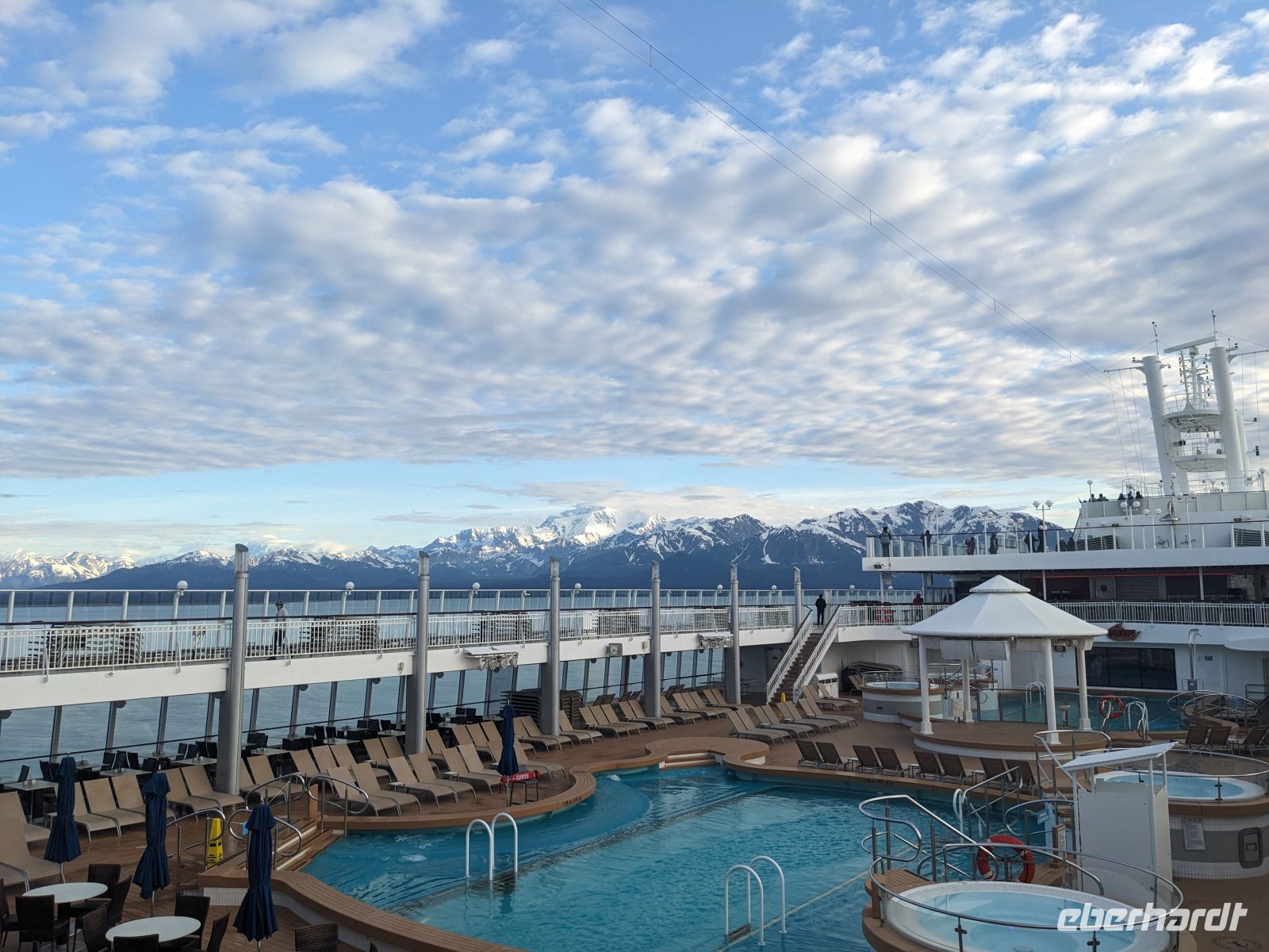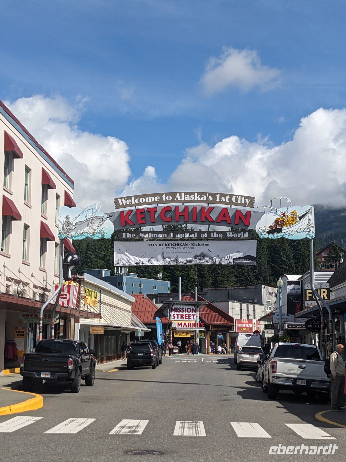 Am Morgen legten wir in Ketchikan an, der „Lachs-Hauptstadt der Welt“. Während einige die Stadt zu Fuß erkundeten – darunter die malerische Creek Street mit ihren bunten Häusern auf Stelzen – unternahmen andere Ausflüge vom Schiff aus z.B. einen Bootsausflug entlang der Küste, um Seeadler und Robben in freier Natur zu beobachten. Zumeist war es nach den Ausflügen vom Schiff zeitlich trotzdem noch möglich, die Stadt zu erkunden. Die Kombination aus spektakulären Landschaften, maritimem Flair und freundlichen Einheimischen machte diesen Tag zu einem echten Highlight. Am Nachmittag hieß es Abschied nehmen von Ketchikan, und wir stachen erneut in See.