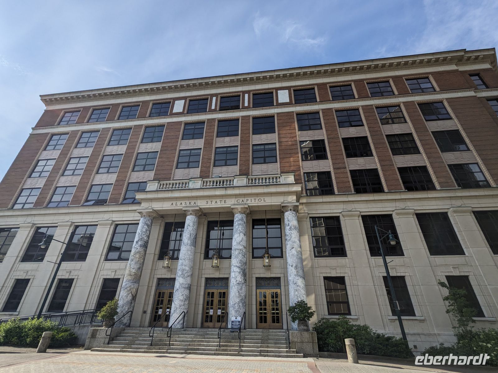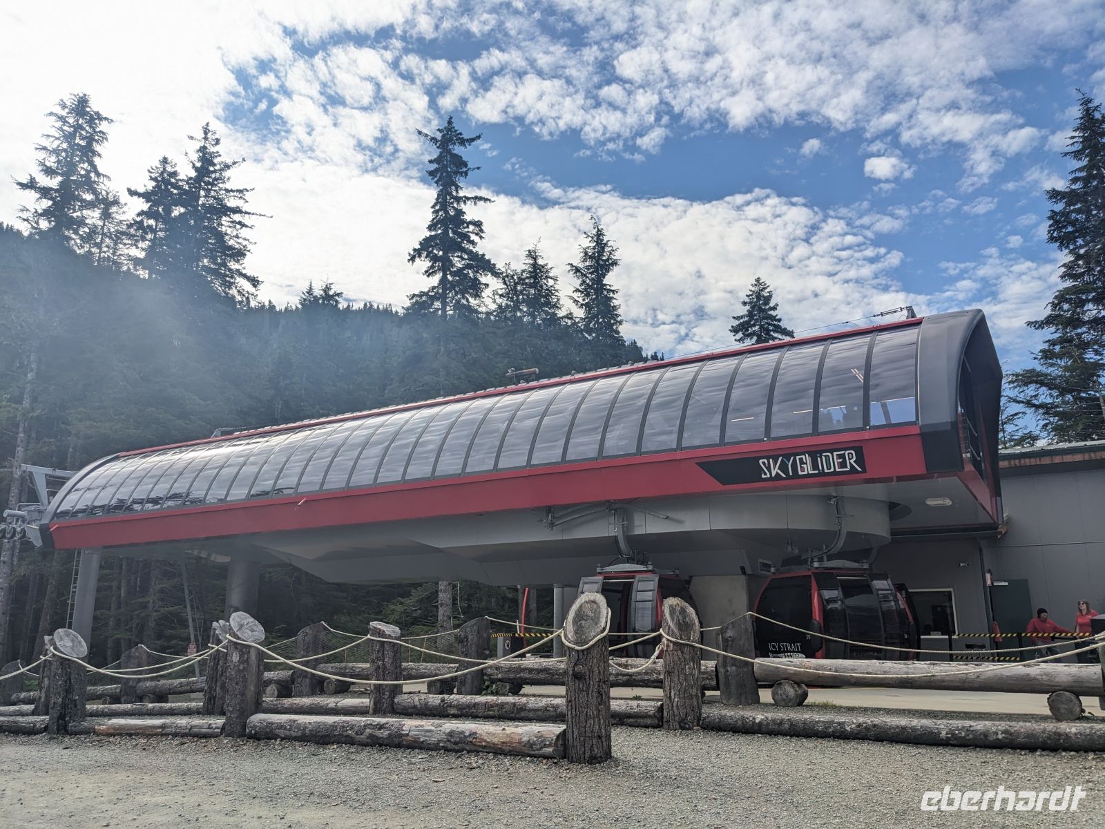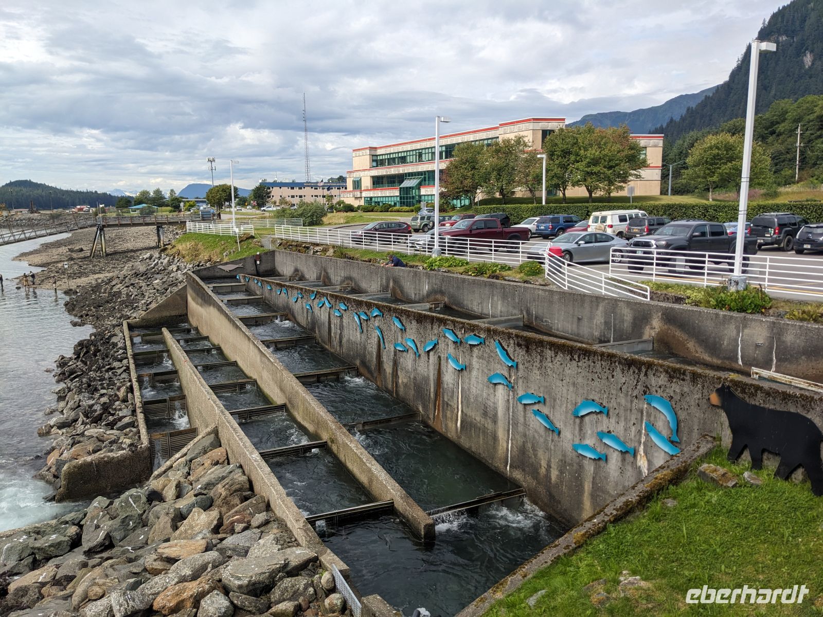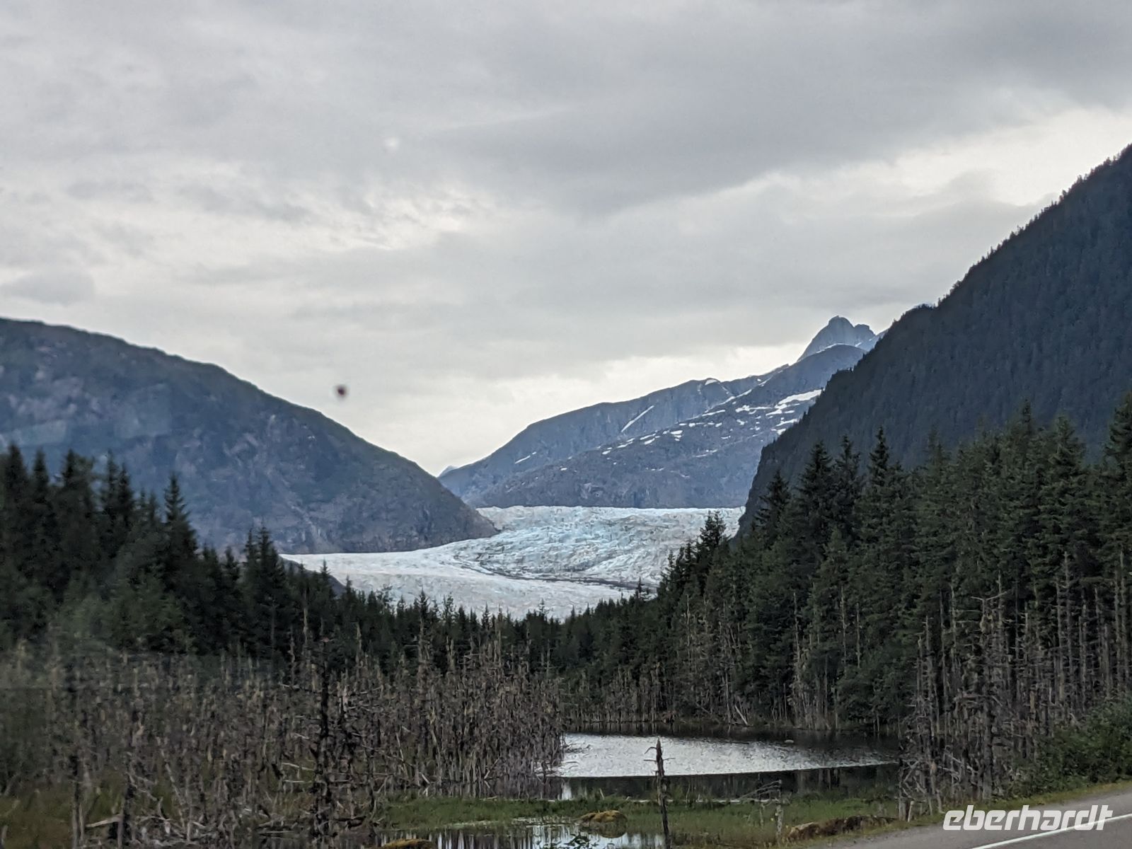 In Alaska’s Hauptstadt Juneau erwartete uns ein erlebnisreicher Tag in Form des inklusiven und privaten Eberhardt-Ausflugs. Zunächst fuhren wir zum Mendenhall-Gletscher, dessen eisblaue Zunge sich imposant in die Landschaft schiebt. Ein Spaziergang zum Aussichtspunkt bot einen tollen Blick auf den Gletscher sowie die danebenliegenden Nugget Falls, welche bei einer separaten kleinen Wanderung erkundet werden konnten. Der Weg war sehr gut angelegt und wir konnten sogar ein Stachelschwein im Baum entdecken. Insgesamt hatten wir hier großes Glück: noch am Vortag war der Zugang zum Gletscher gesperrt! Grund: Überschwemmungsgefahr. Es hatte so viel geregnet, bevor wir gekommen sind, dass der Gletschersee überfließen zu drohte. Doch pünktlich zum Tag unserer Ankunft kam die Sonne heraus und wir erlebten einen wunderschönen Tag in der Hauptstadt Alaskas. Danach ging es zur Salmon Hatchery, wo wir einen faszinierenden Einblick in die Lachszucht und den Lebenszyklus dieser Tiere erhielten. Besonders spannend war der Blick durch Unterwasserfenster auf die Fischtreppe und die großen Becken, in denen die Junglachse auf ihre Auswilderung vorbereitet werden. Auch Robben ließen sich hier blicken, angelockt vom reichen Nahrungsangebot. Anschließend ging es hinauf mit der Seilbahn auf den Mount Roberts, wo wir bei klarer Sicht spektakuläre Panoramen genießen konnten. Wer mochte, ließ den Tag mit einem Stadtbummel und im legendären Red Dog Saloon ausklingen – ein Stück echte Alaska-Tradition. In kleiner Gruppe waren wir auch noch im Regierungsgebäude - hier konnten wir einfach hineinspazieren und uns die Örtlichkeiten anschauen. Der Besuch ist auf jeden Fall eine Empfehlung wert!