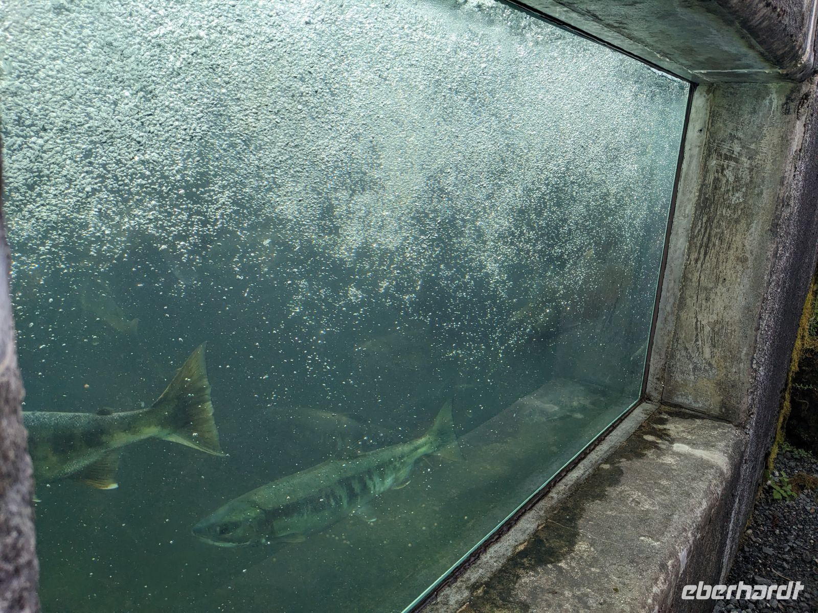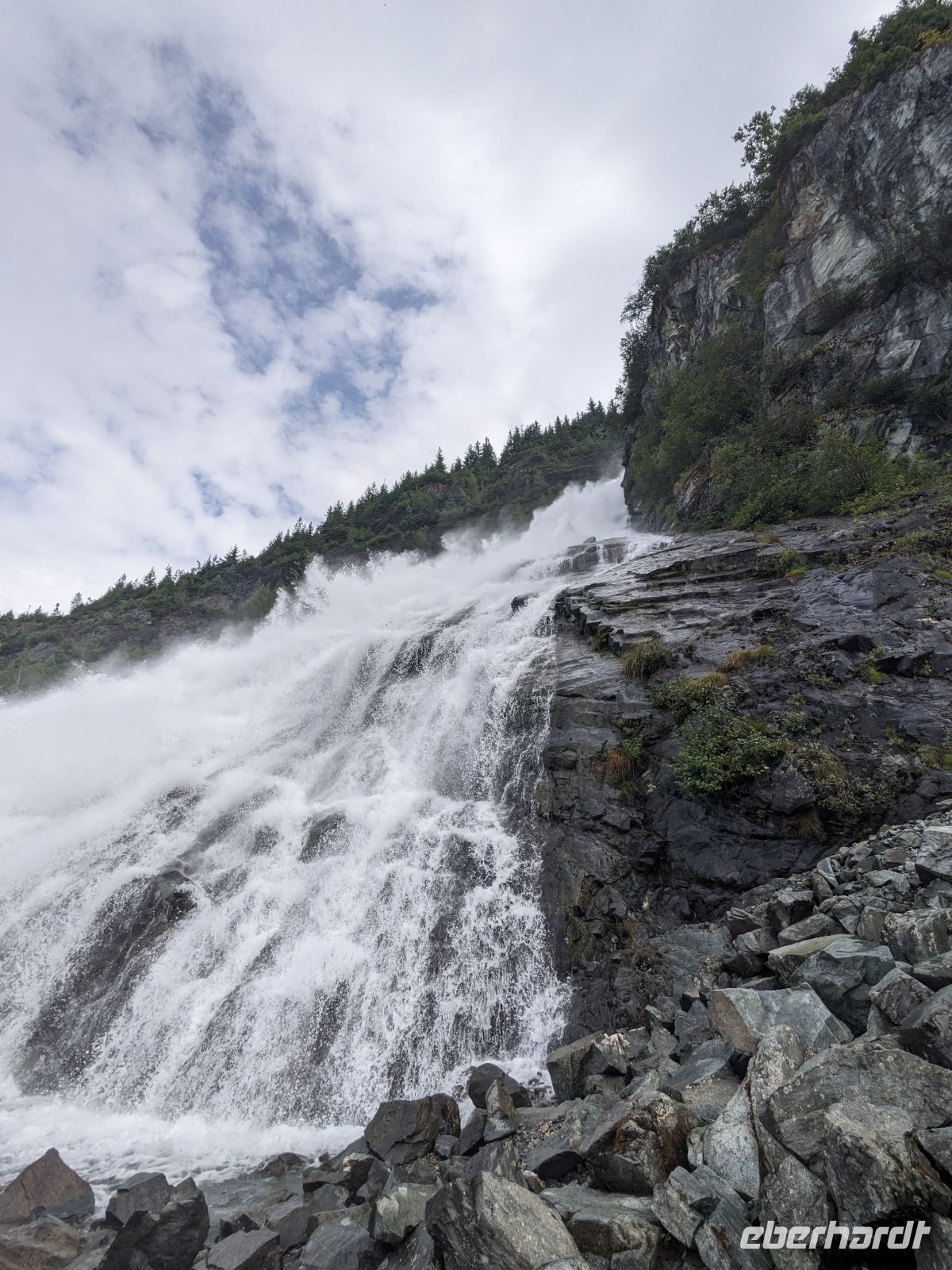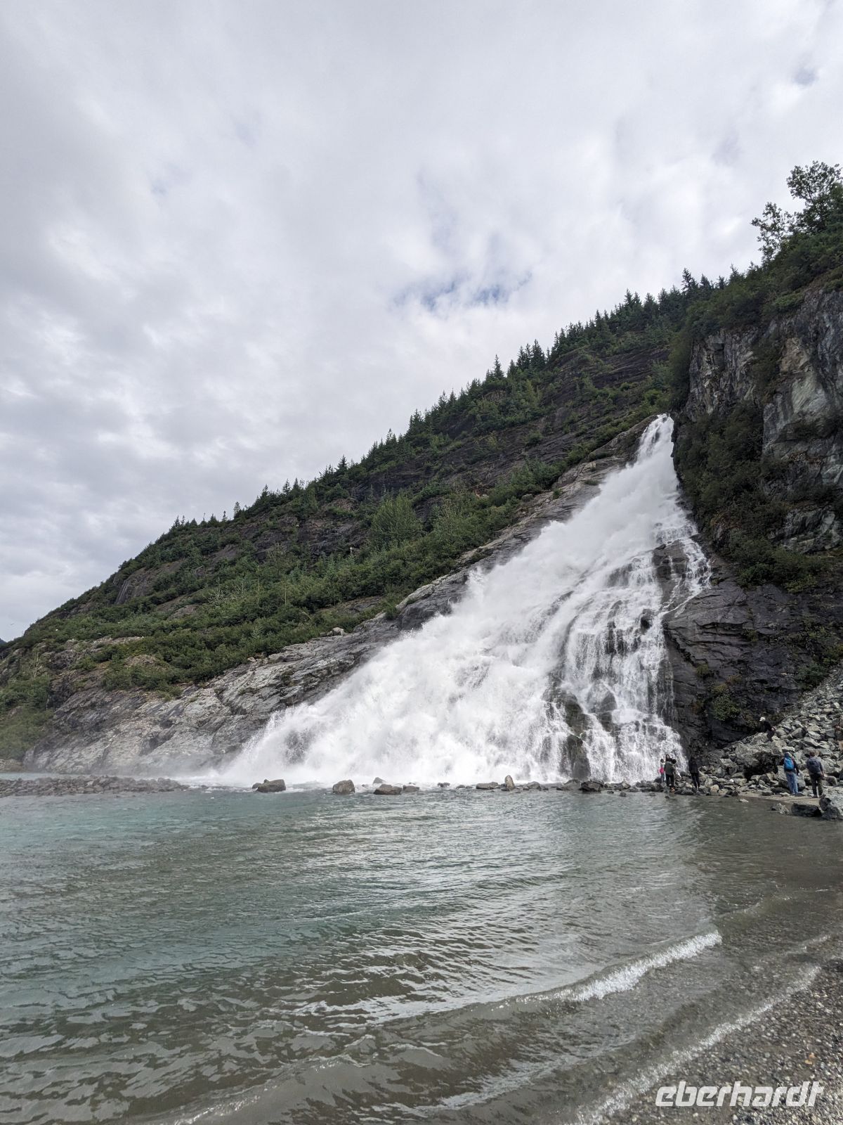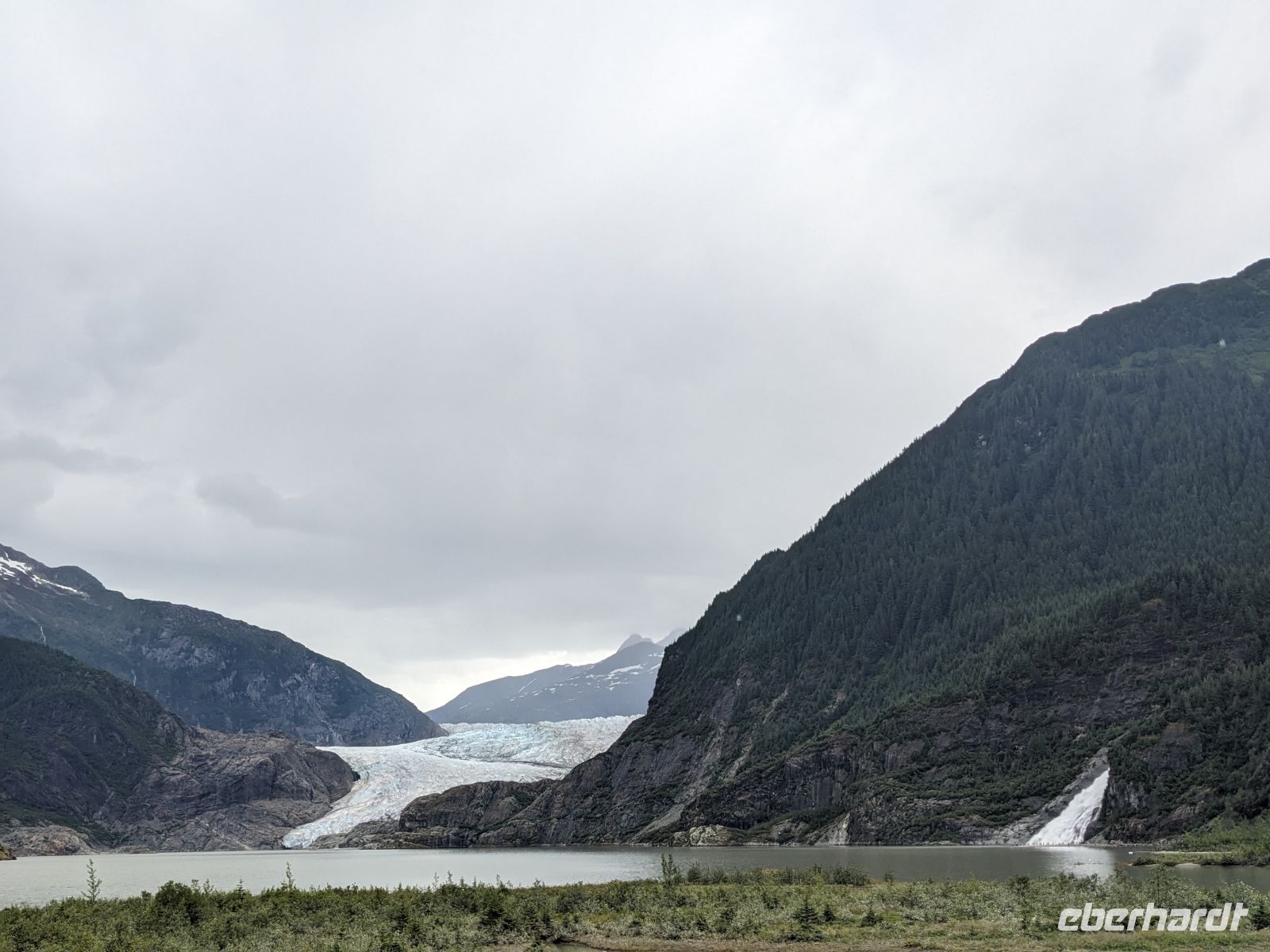 In Alaska’s Hauptstadt Juneau erwartete uns ein erlebnisreicher Tag in Form des inklusiven und privaten Eberhardt-Ausflugs. Zunächst fuhren wir zum Mendenhall-Gletscher, dessen eisblaue Zunge sich imposant in die Landschaft schiebt. Ein Spaziergang zum Aussichtspunkt bot einen tollen Blick auf den Gletscher sowie die danebenliegenden Nugget Falls, welche bei einer separaten kleinen Wanderung erkundet werden konnten. Der Weg war sehr gut angelegt und wir konnten sogar ein Stachelschwein im Baum entdecken. Insgesamt hatten wir hier großes Glück: noch am Vortag war der Zugang zum Gletscher gesperrt! Grund: Überschwemmungsgefahr. Es hatte so viel geregnet, bevor wir gekommen sind, dass der Gletschersee überfließen zu drohte. Doch pünktlich zum Tag unserer Ankunft kam die Sonne heraus und wir erlebten einen wunderschönen Tag in der Hauptstadt Alaskas. Danach ging es zur Salmon Hatchery, wo wir einen faszinierenden Einblick in die Lachszucht und den Lebenszyklus dieser Tiere erhielten. Besonders spannend war der Blick durch Unterwasserfenster auf die Fischtreppe und die großen Becken, in denen die Junglachse auf ihre Auswilderung vorbereitet werden. Auch Robben ließen sich hier blicken, angelockt vom reichen Nahrungsangebot. Anschließend ging es hinauf mit der Seilbahn auf den Mount Roberts, wo wir bei klarer Sicht spektakuläre Panoramen genießen konnten. Wer mochte, ließ den Tag mit einem Stadtbummel und im legendären Red Dog Saloon ausklingen – ein Stück echte Alaska-Tradition. In kleiner Gruppe waren wir auch noch im Regierungsgebäude - hier konnten wir einfach hineinspazieren und uns die Örtlichkeiten anschauen. Der Besuch ist auf jeden Fall eine Empfehlung wert!