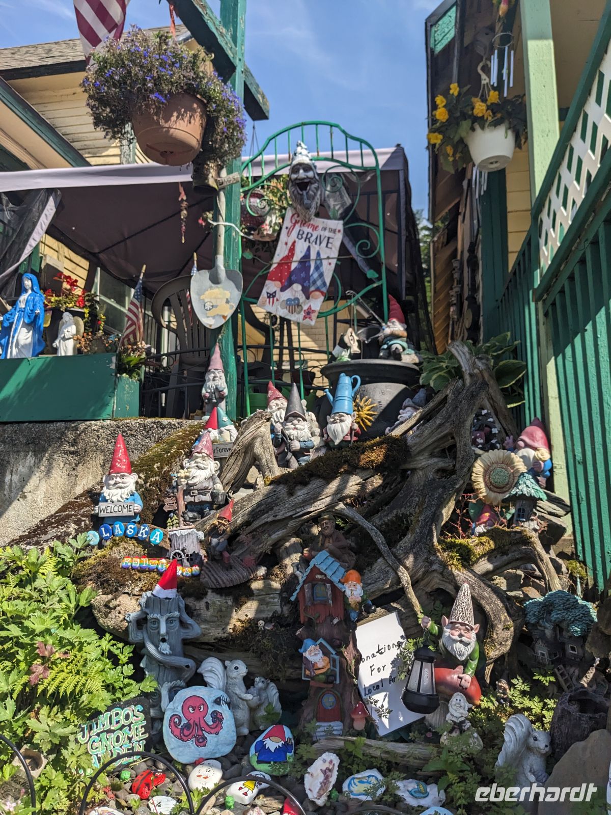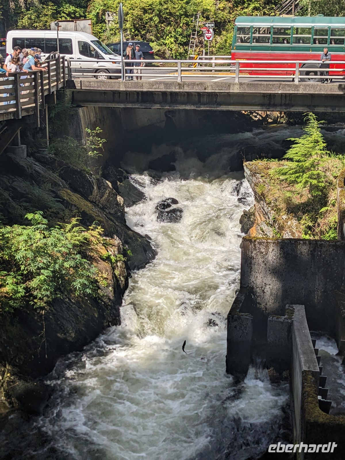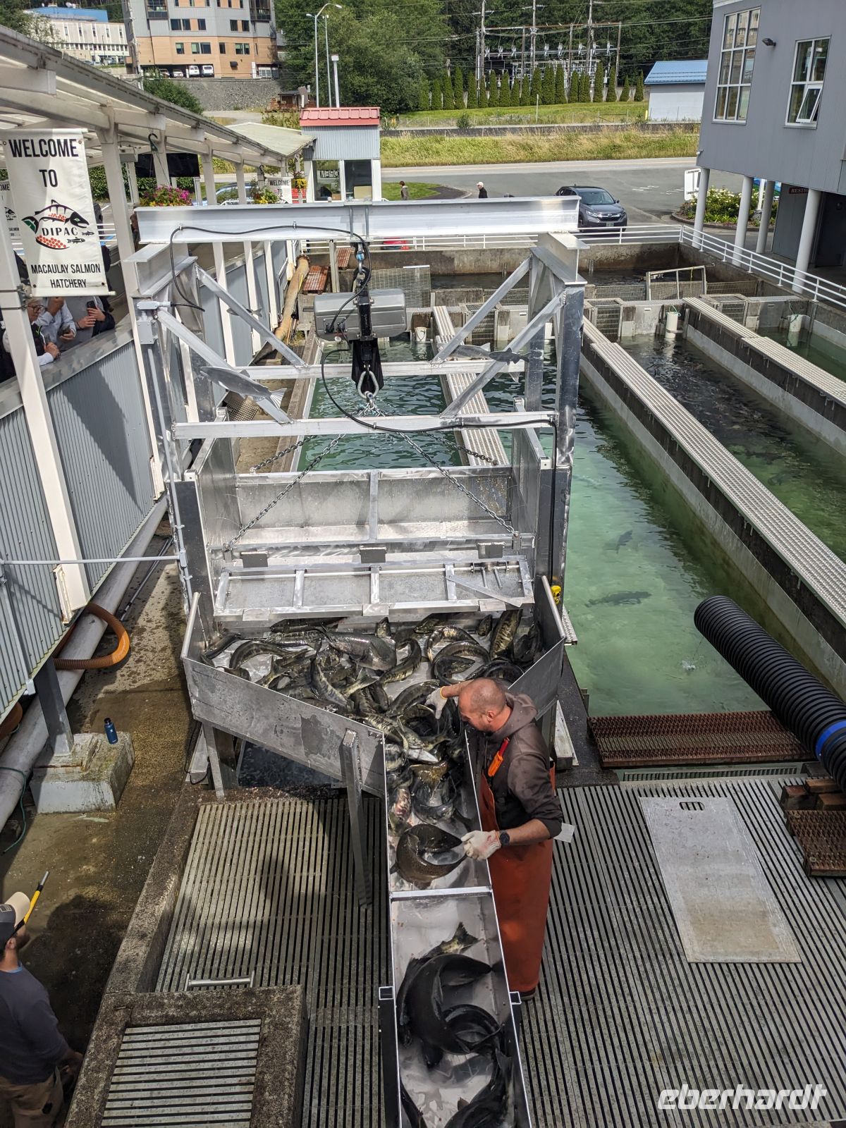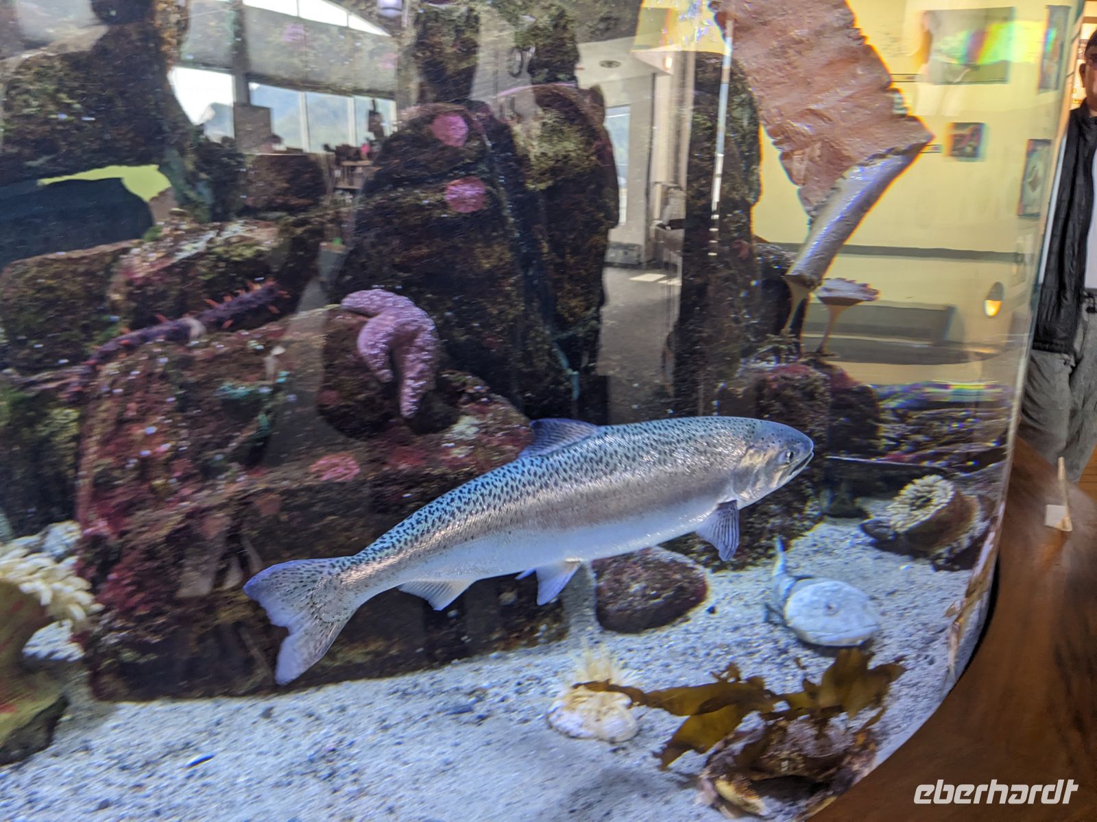 In Alaska’s Hauptstadt Juneau erwartete uns ein erlebnisreicher Tag in Form des inklusiven und privaten Eberhardt-Ausflugs. Zunächst fuhren wir zum Mendenhall-Gletscher, dessen eisblaue Zunge sich imposant in die Landschaft schiebt. Ein Spaziergang zum Aussichtspunkt bot einen tollen Blick auf den Gletscher sowie die danebenliegenden Nugget Falls, welche bei einer separaten kleinen Wanderung erkundet werden konnten. Der Weg war sehr gut angelegt und wir konnten sogar ein Stachelschwein im Baum entdecken. Insgesamt hatten wir hier großes Glück: noch am Vortag war der Zugang zum Gletscher gesperrt! Grund: Überschwemmungsgefahr. Es hatte so viel geregnet, bevor wir gekommen sind, dass der Gletschersee überfließen zu drohte. Doch pünktlich zum Tag unserer Ankunft kam die Sonne heraus und wir erlebten einen wunderschönen Tag in der Hauptstadt Alaskas. Danach ging es zur Salmon Hatchery, wo wir einen faszinierenden Einblick in die Lachszucht und den Lebenszyklus dieser Tiere erhielten. Besonders spannend war der Blick durch Unterwasserfenster auf die Fischtreppe und die großen Becken, in denen die Junglachse auf ihre Auswilderung vorbereitet werden. Auch Robben ließen sich hier blicken, angelockt vom reichen Nahrungsangebot. Anschließend ging es hinauf mit der Seilbahn auf den Mount Roberts, wo wir bei klarer Sicht spektakuläre Panoramen genießen konnten. Wer mochte, ließ den Tag mit einem Stadtbummel und im legendären Red Dog Saloon ausklingen – ein Stück echte Alaska-Tradition. In kleiner Gruppe waren wir auch noch im Regierungsgebäude - hier konnten wir einfach hineinspazieren und uns die Örtlichkeiten anschauen. Der Besuch ist auf jeden Fall eine Empfehlung wert!
