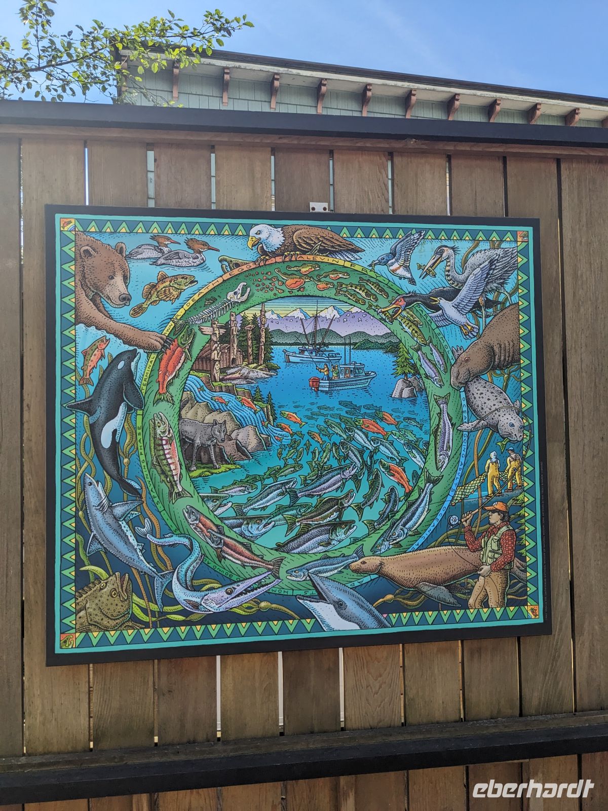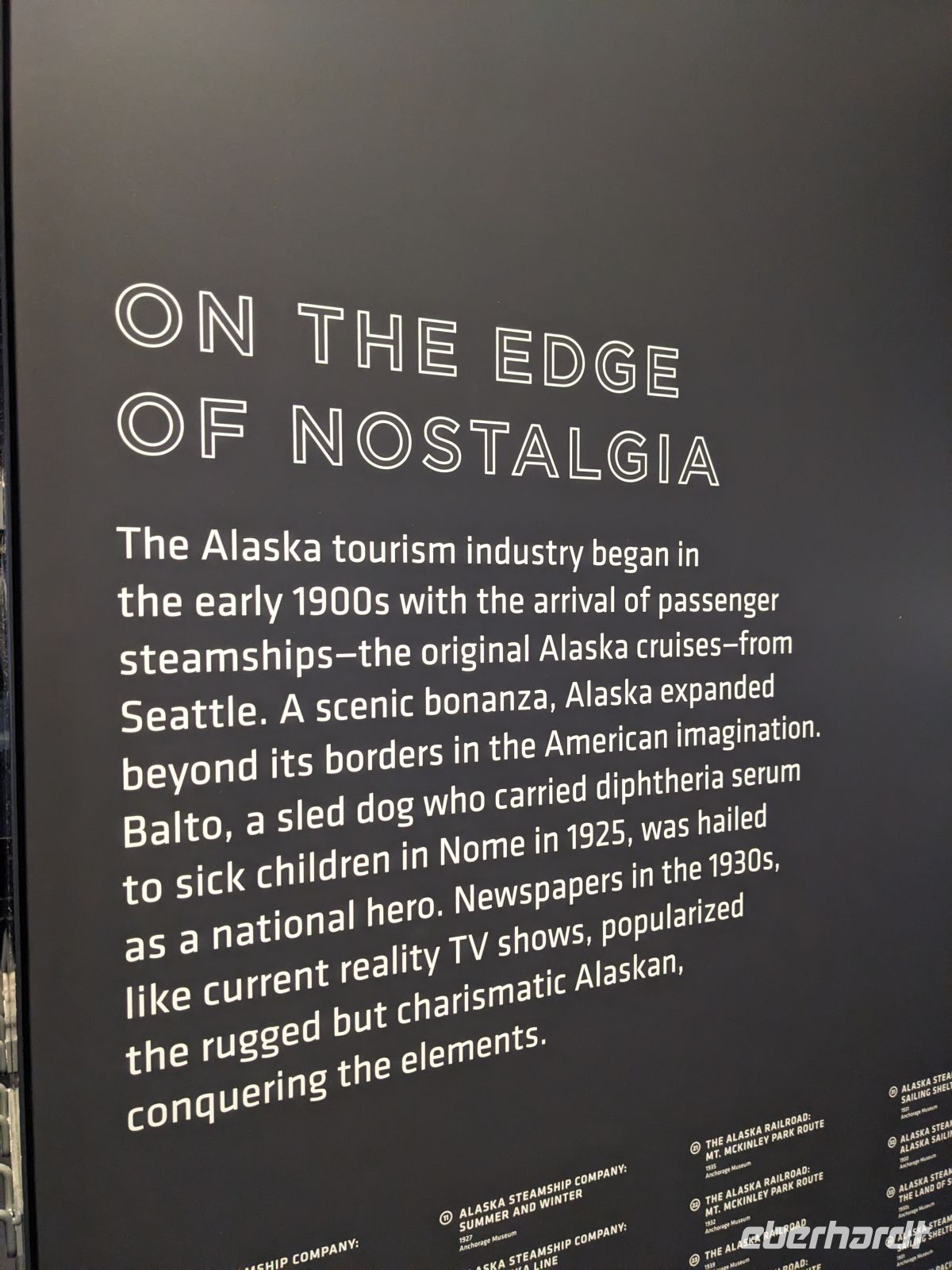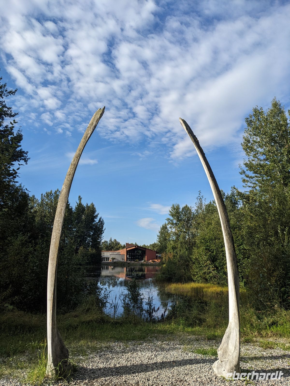 Mit einem Teil der Gruppe besuchte ich das Anchorage Museum. Die Ausstellungen waren wirklich vielseitig – von faszinierenden Fotografien über inspirierende Kunstwerke bis hin zu interaktiven Stationen, die zum Mitmachen einluden. Alles war sehr ansprechend und liebevoll hergerichtet, sodass der Besuch zu einem rundum tollen Erlebnis wurde. Nach einer kleinen Mittagspause lud ich dann noch zu einem Spaziergang durch Anchorage ein. Wir schauten uns zunächst das Hotel von allen Seiten an ; ) und dann ging es zum Centenniel Park mit seinem Rosengarten, an der Küste entlang bis zum Marco Polo Denkmal bzw. die Abbiegung vorher zum Biergarten mit Livemusik. Während die Sonne auf uns herabschien, bei einem kühlen Getränk oder einem leckeren Eis mit bekannten Songs im Ohr, ließ es sich hier aushalten. Da dies auch das Restaurant für das gemeinsame Abendessen war, blieb ein Teil direkt vor Ort und später konnten wir dann (größtenteils) gemeinsam den Abend ausklingen lassen.