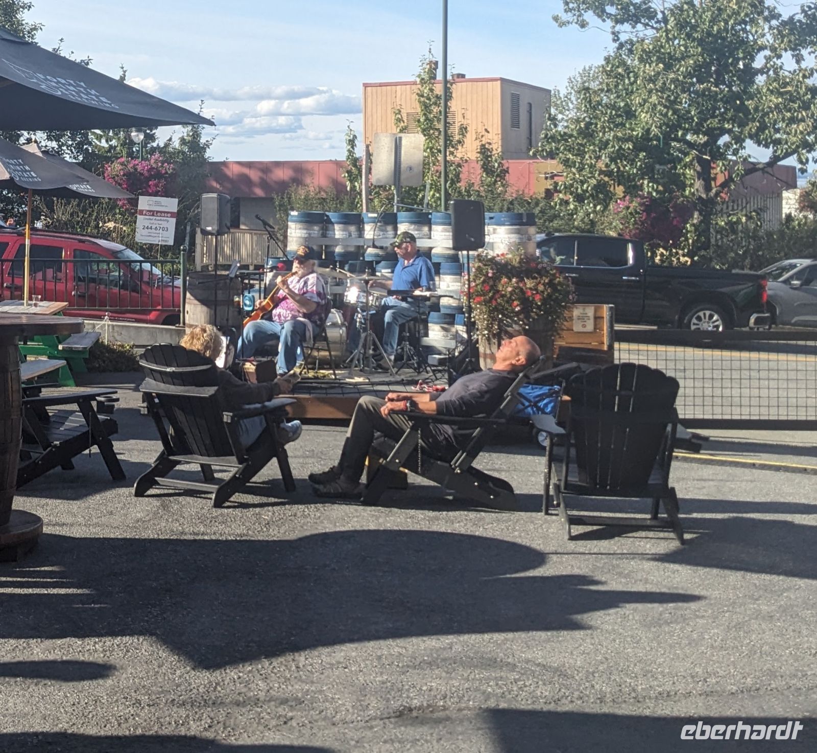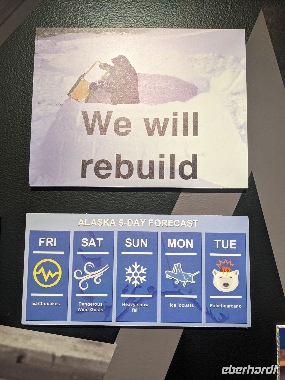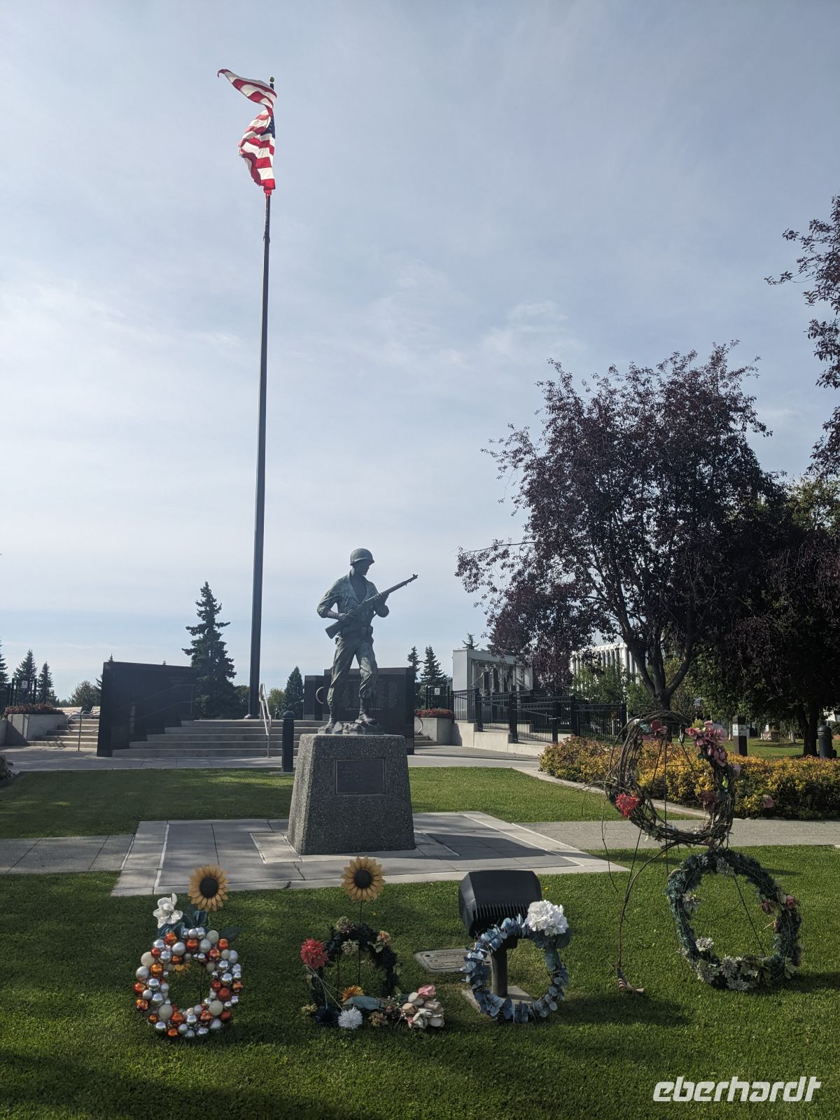 Mit einem Teil der Gruppe besuchte ich das Anchorage Museum. Die Ausstellungen waren wirklich vielseitig – von faszinierenden Fotografien über inspirierende Kunstwerke bis hin zu interaktiven Stationen, die zum Mitmachen einluden. Alles war sehr ansprechend und liebevoll hergerichtet, sodass der Besuch zu einem rundum tollen Erlebnis wurde. Nach einer kleinen Mittagspause lud ich dann noch zu einem Spaziergang durch Anchorage ein. Wir schauten uns zunächst das Hotel von allen Seiten an ; ) und dann ging es zum Centenniel Park mit seinem Rosengarten, an der Küste entlang bis zum Marco Polo Denkmal bzw. die Abbiegung vorher zum Biergarten mit Livemusik. Während die Sonne auf uns herabschien, bei einem kühlen Getränk oder einem leckeren Eis mit bekannten Songs im Ohr, ließ es sich hier aushalten. Da dies auch das Restaurant für das gemeinsame Abendessen war, blieb ein Teil direkt vor Ort und später konnten wir dann (größtenteils) gemeinsam den Abend ausklingen lassen.