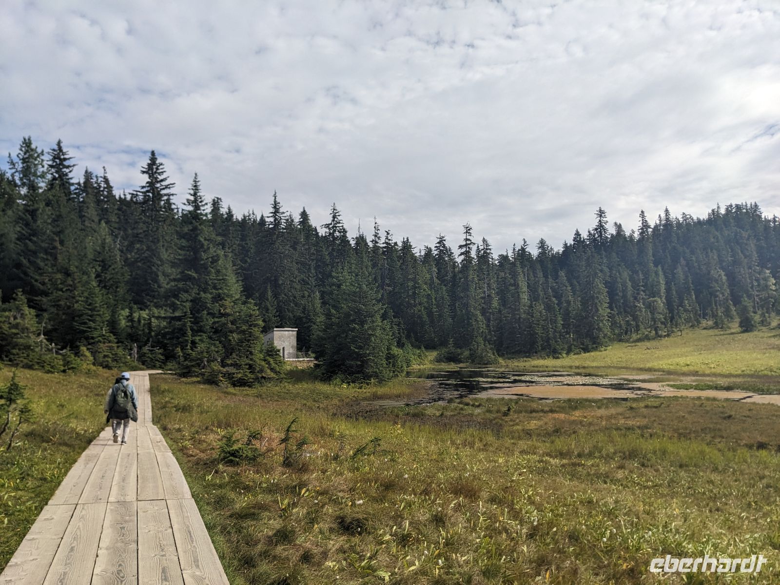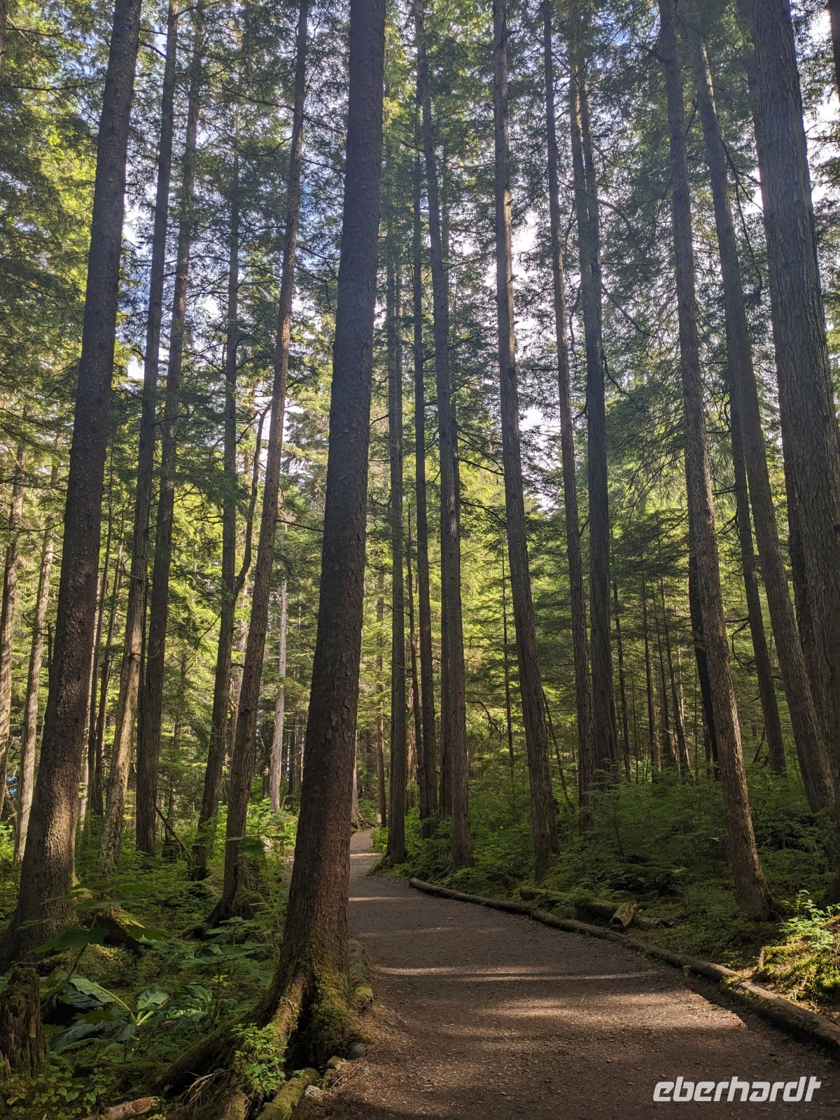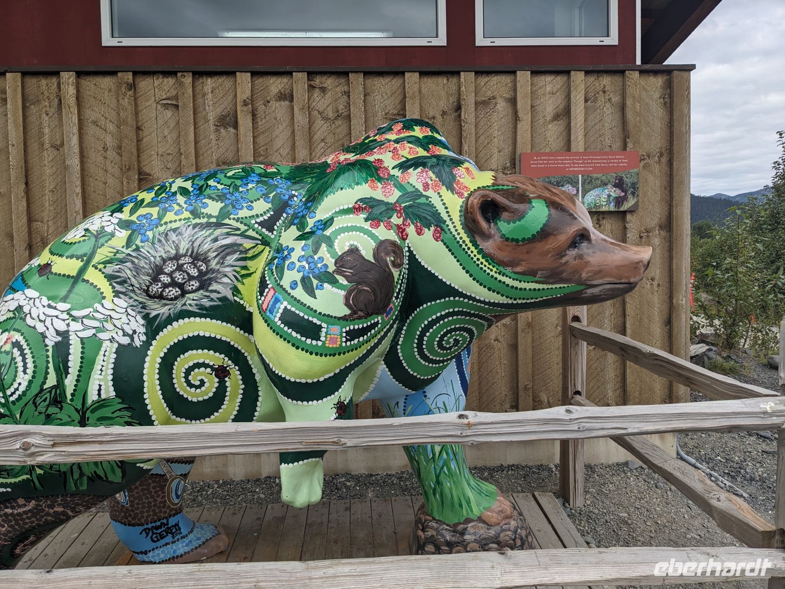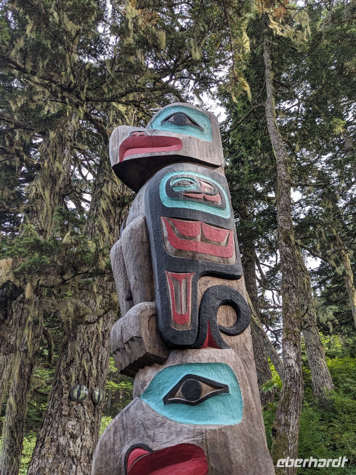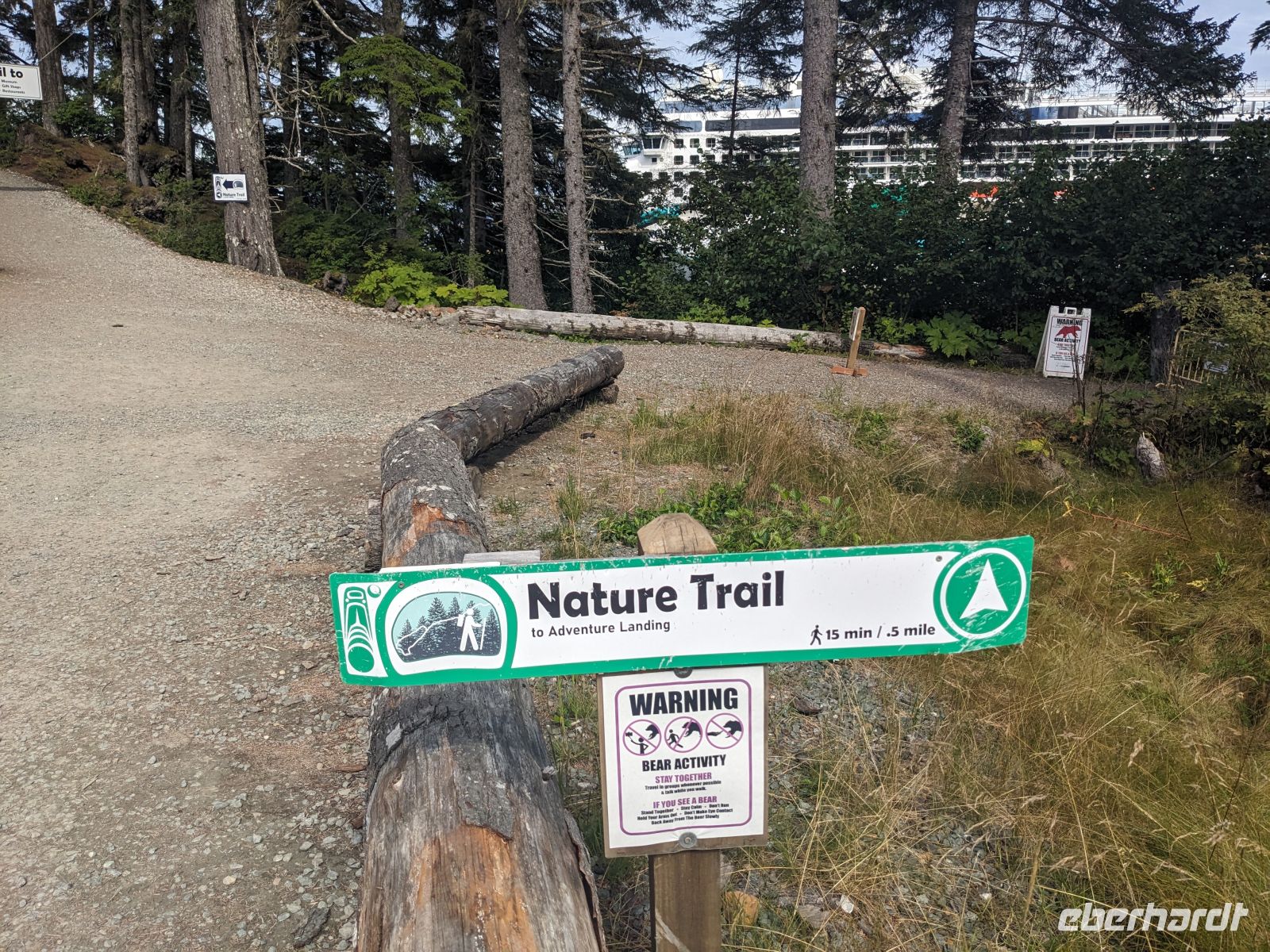 Heute erwartete uns ein ganz besonderer Ort: Icy Strait Point, ein verstecktes Kleinod Alaskas, umgeben von unberührter Natur. Schon beim Anlegen begrüßten uns dichte Wälder, klare Luft und die Weite des Ozeans. Mit einigen aus der Gruppe nutzte ich die Gelegenheit, mit der Gondel hinauf auf den Aussichtspunkt zu fahren. Von dort bot sich ein grandioser Blick über die Küstenlinie, tiefgrüne Wälder und die schneebedeckten Berge im Hintergrund. Wieder unten angekommen, war ein weiteres Highlight der Spaziergang über den Naturpfad, der parallel zur zweiten Gondel von Icy Strait Point (flach verlaufene Gondel) verläuft – ein sanfter Weg, der durch ursprünglichen Regenwald führt. Unterwegs erzählte die Natur selbst ihre Geschichte: Moose, Vogelstimmen und der Blick auf die Küste bestimmten die Atmosphäre.