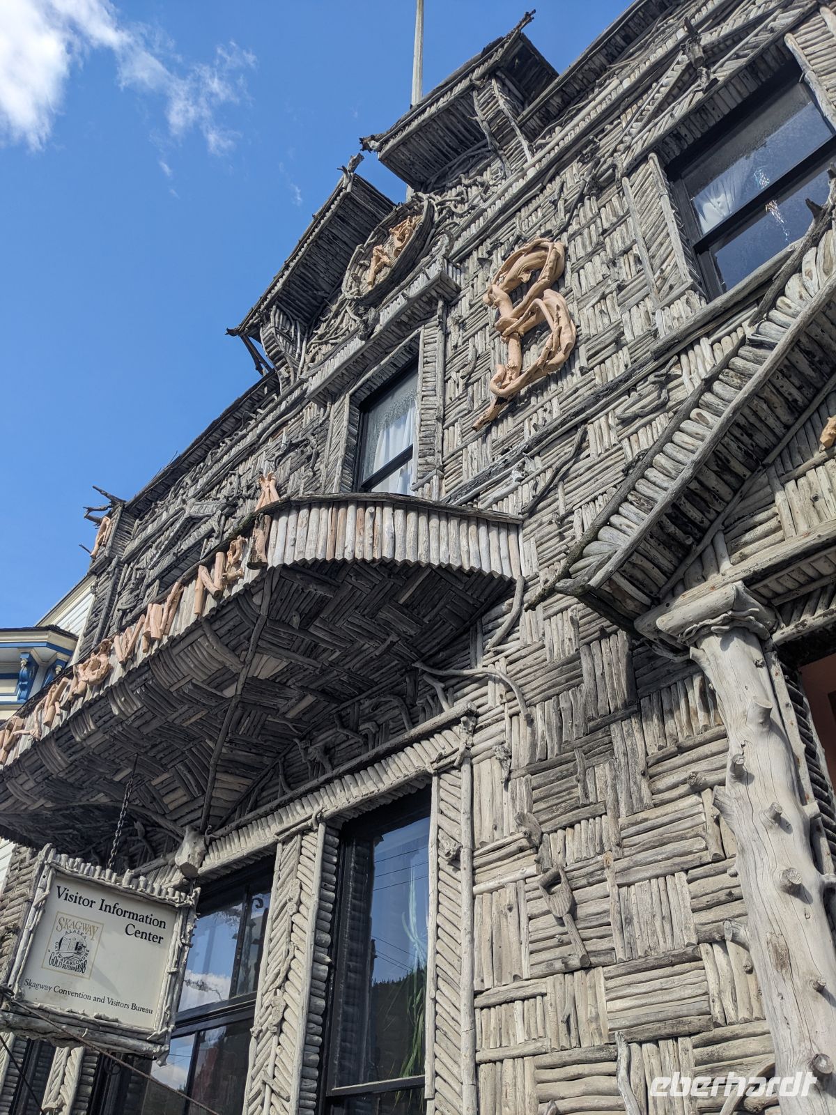 Einige hatten kombinierte Ausflüge gebucht, bei denen sie einen Teil der Strecke mit dem Zug und einen Teil mit dem Bus zurücklegten – und dabei sogar kurz in Kanada ein- und wieder in die USA ausreisen mussten. Andere entschieden sich für Helikopterflüge über die Gletscher, die bei diesem Traumwetter spektakulär gewesen sein sollen. Wer lieber auf eigene Faust unterwegs war, nutzte die Zeit für einen Besuch im Museum, das die spannende Geschichte des Goldrauschs lebendig erzählt. So verbrachte jeder den Tag ganz individuell – und doch waren sich alle einig: Skagway ist ein Ort voller Geschichte und Charme.