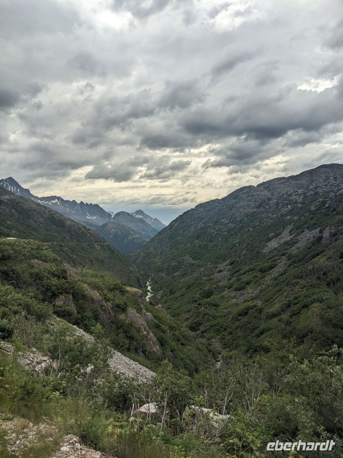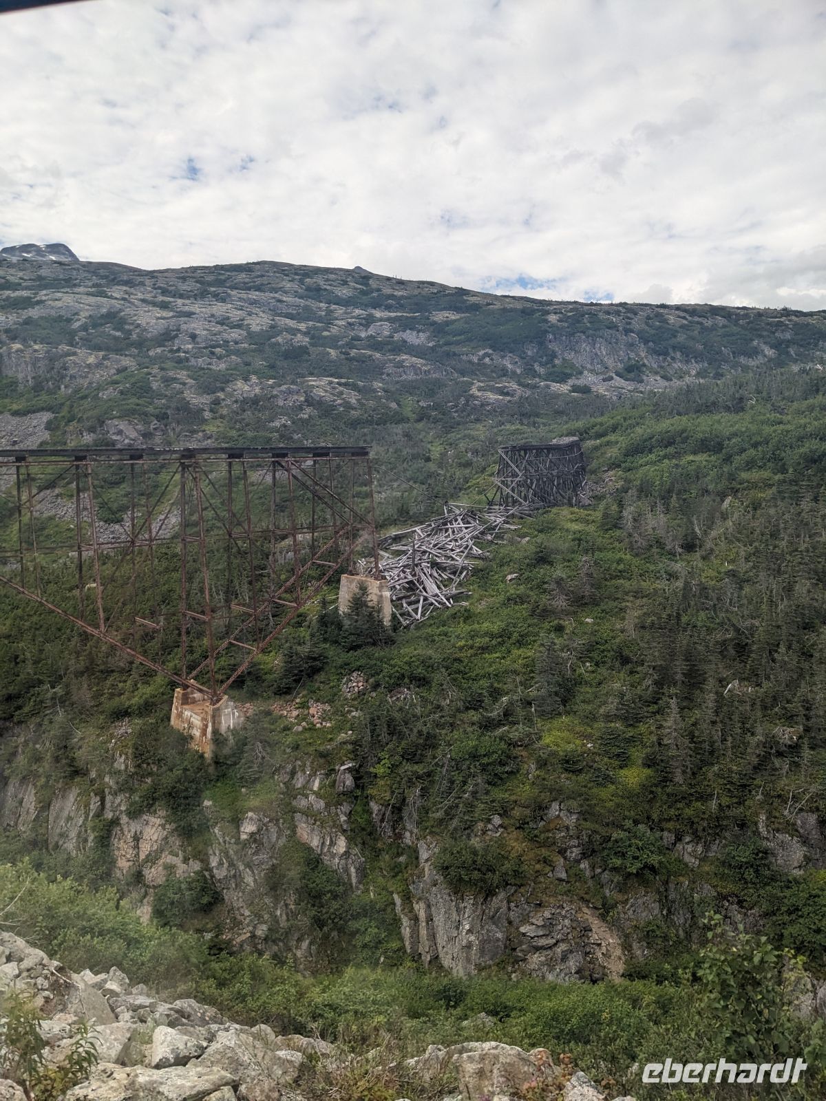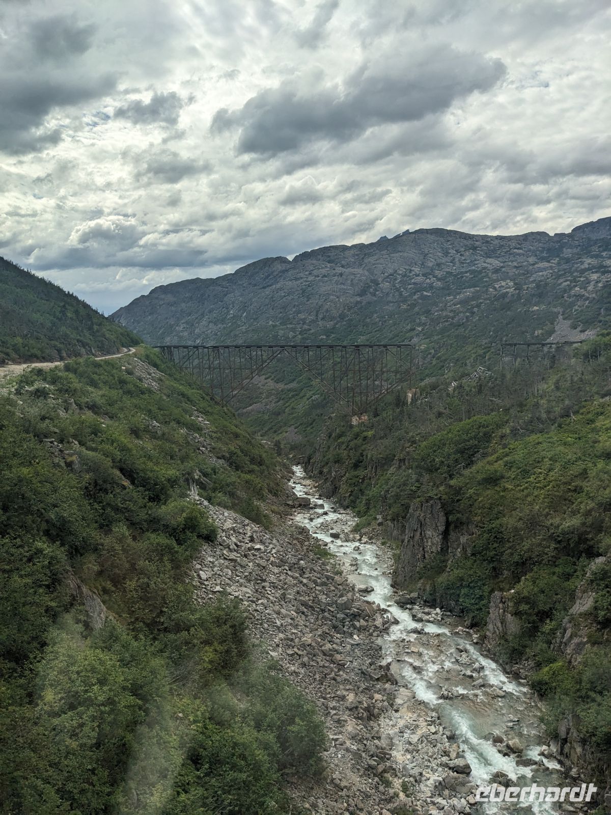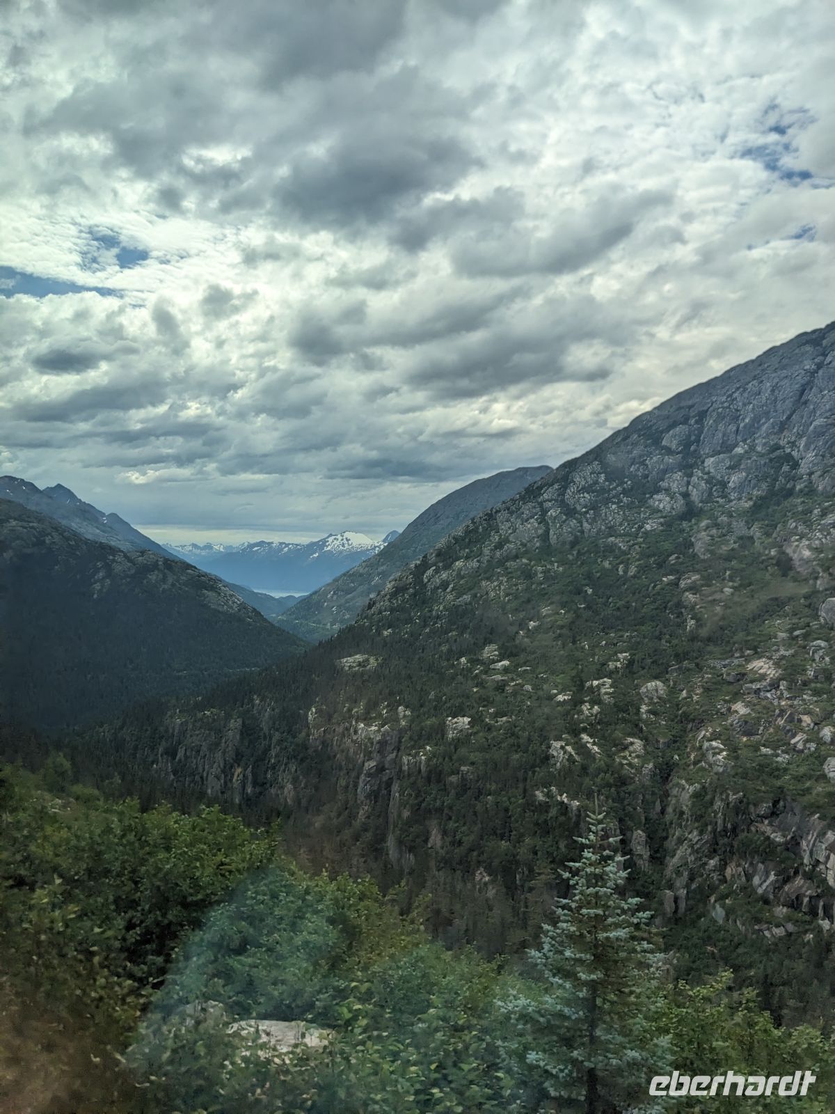 Am Nachmittag stand für einen Großteil der Gruppe die legendäre Fahrt mit der White Pass & Yukon Route auf dem Programm – einer historischen Bahnstrecke, die einst während des Goldrauschs als Lebensader in den Norden diente. Sie wurde unter extremen Bedingungen in den Jahren 1898/99 erbaut, um den mühseligen und gefährlichen Weg über den White Pass zu erleichtern. Die Strecke windet sich auf über 1.000 Höhenmeter hinauf, vorbei an tosenden Wasserfällen, tiefen Schluchten und atemberaubenden Bergpanoramen. An den Originalwaggons aus Holz und den engen Kurven spürt man noch heute den Pioniergeist dieser Zeit.