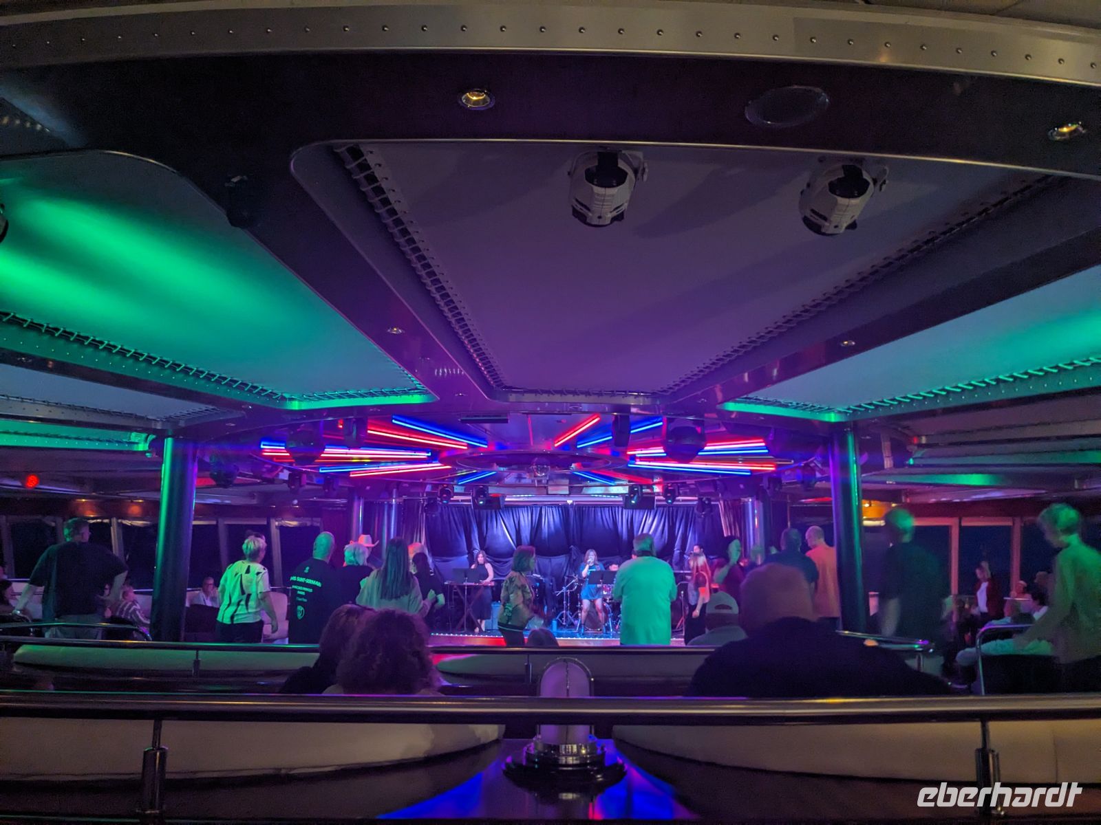 Der Kapitän manövrierte das Schiff gekonnt und drehte es mehrfach, sodass jeder Gast – egal ob an Deck oder auf dem Balkon – einen perfekten Blick auf dieses Naturwunder hatte. Viele nutzten die Gelegenheit für Fotos, andere standen einfach nur da und ließen den Moment auf sich wirken.