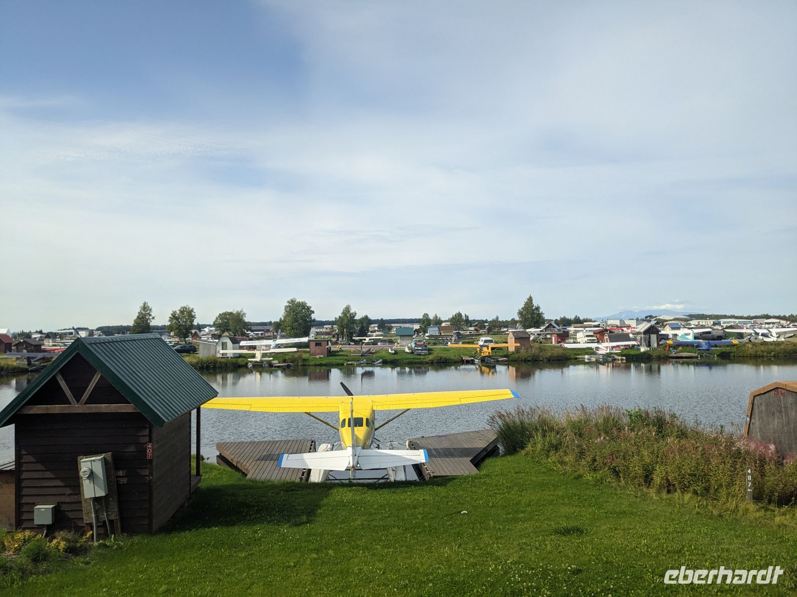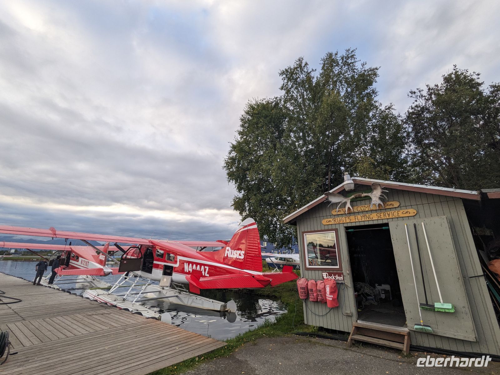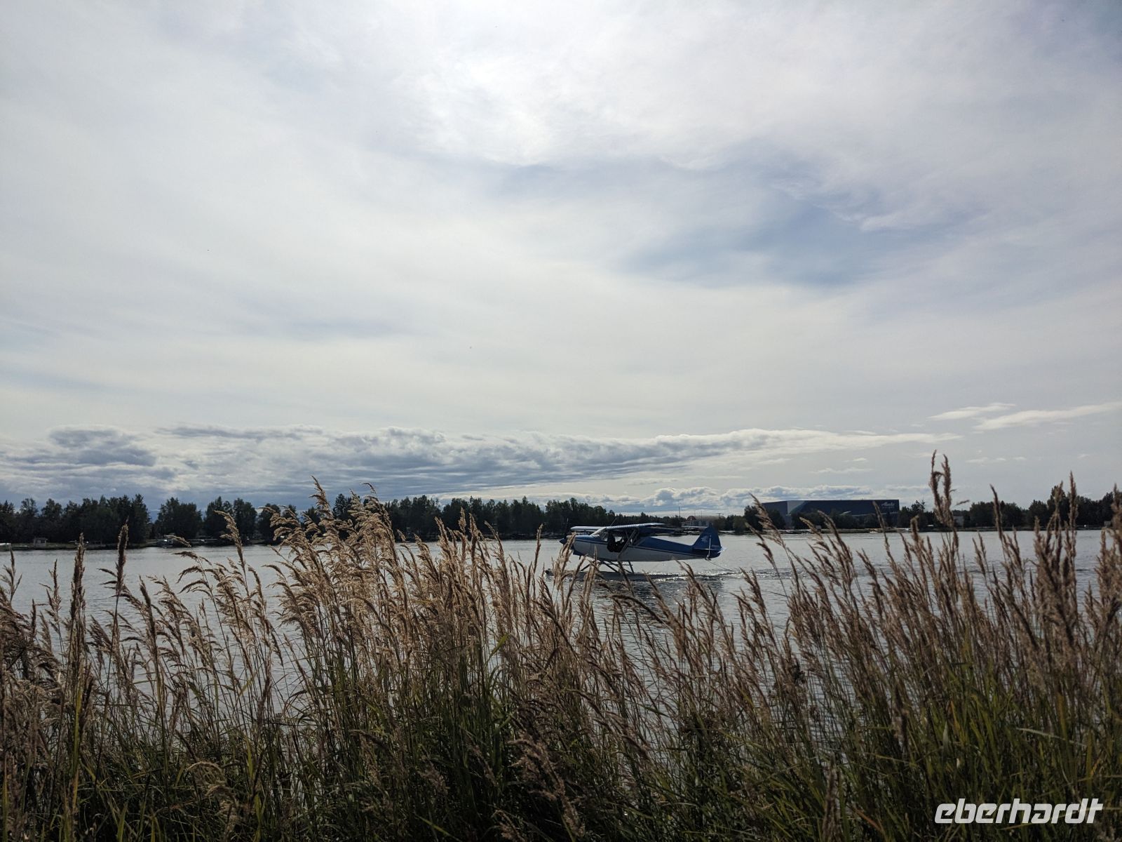 Die anschließende Fahrt entlang des Turnagain Arm war landschaftlich ein echtes Highlight: links die zerklüftete Küste, rechts steile Berghänge, dazu immer wieder Ausblicke auf Gletscher. Kurz vor Anchorage legten wir einen Halt an einem Aussichtspunkt ein, von dem aus wir sogar die Spitze des Denali erblicken konnten – ein seltener Glücksmoment bei klarem Wetter. Am Wasserflughafen bestaunten wir dann die vielen Flugzeuge und das Abheben sowie Landen im Minutentackt.