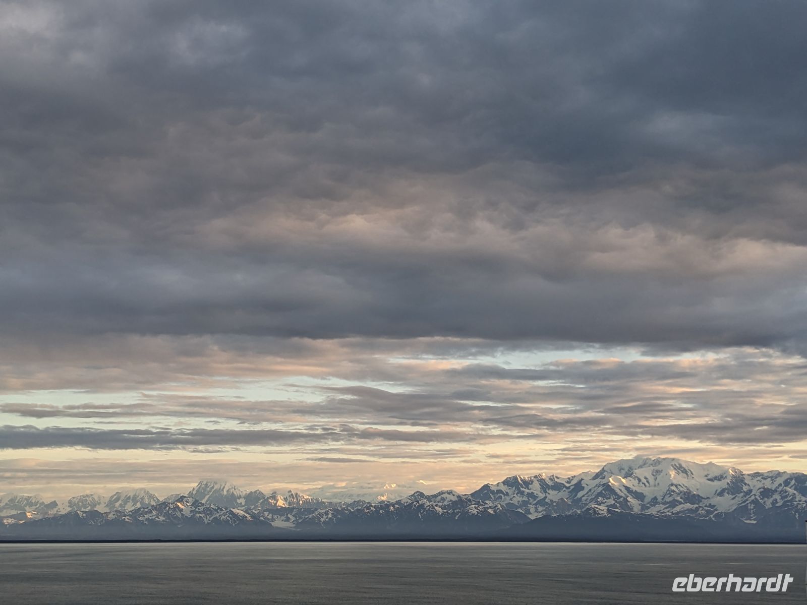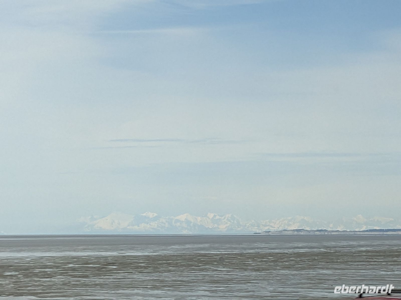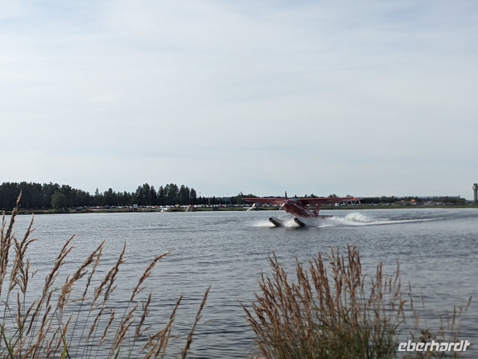 Die anschließende Fahrt entlang des Turnagain Arm war landschaftlich ein echtes Highlight: links die zerklüftete Küste, rechts steile Berghänge, dazu immer wieder Ausblicke auf Gletscher. Kurz vor Anchorage legten wir einen Halt an einem Aussichtspunkt ein, von dem aus wir sogar die Spitze des Denali erblicken konnten – ein seltener Glücksmoment bei klarem Wetter. Am Wasserflughafen bestaunten wir dann die vielen Flugzeuge und das Abheben sowie Landen im Minutentackt.