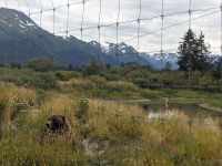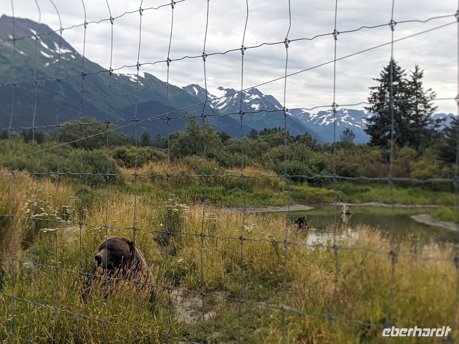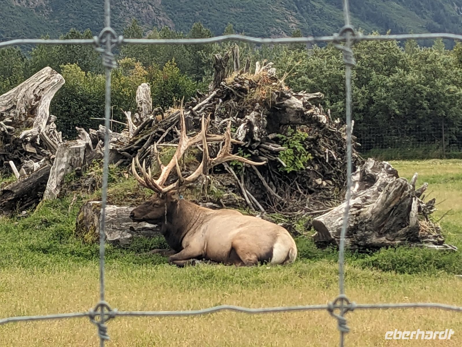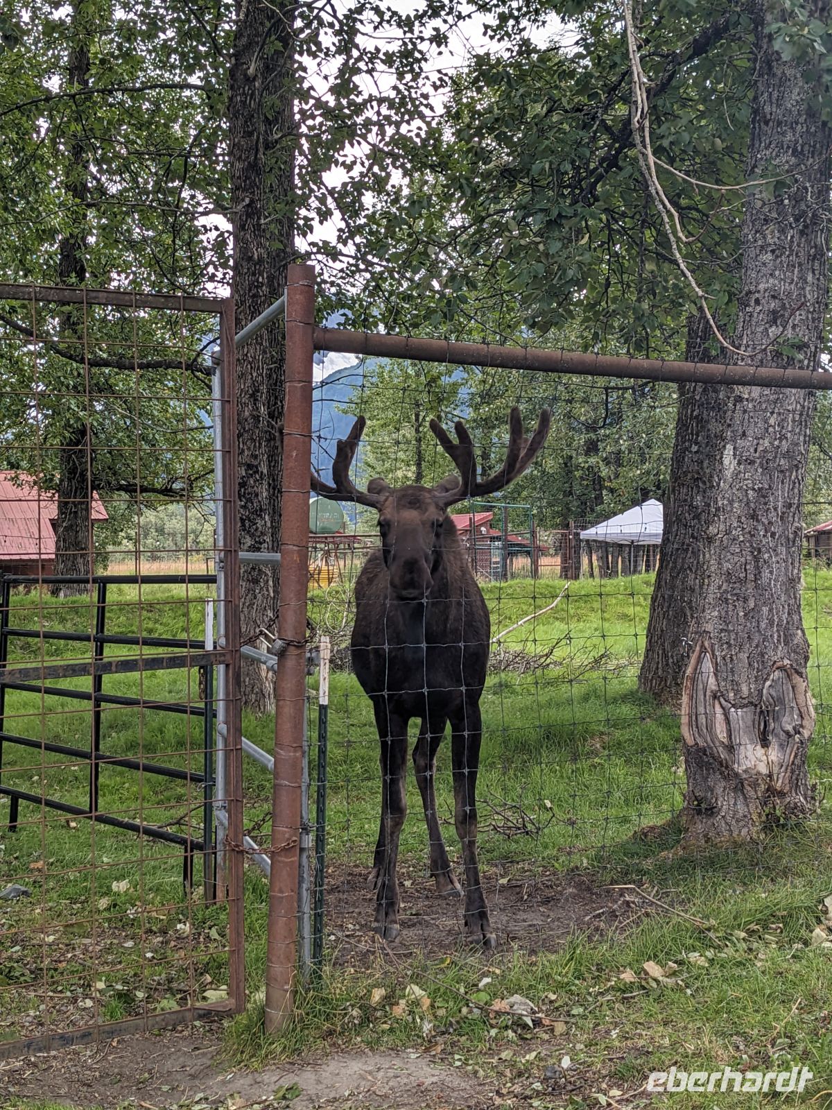Kurz darauf erreichten wir das Portage Valley mit seinen Gletscherseen. Bei Fotostopps bestaunten wir spiegelglatte Wasserflächen, umgeben von schneebedeckten Bergen. Weiter ging es zum Alaska Wildlife Conservation Center, einer Auffangstation für verletzte oder verwaiste Wildtiere. Hier konnten wir Bären, Elche, Bisons und sogar Moschusochsen aus nächster Nähe sehen – eine tolle Gelegenheit für beeindruckende Fotos und spannende Einblicke in den Artenschutz.