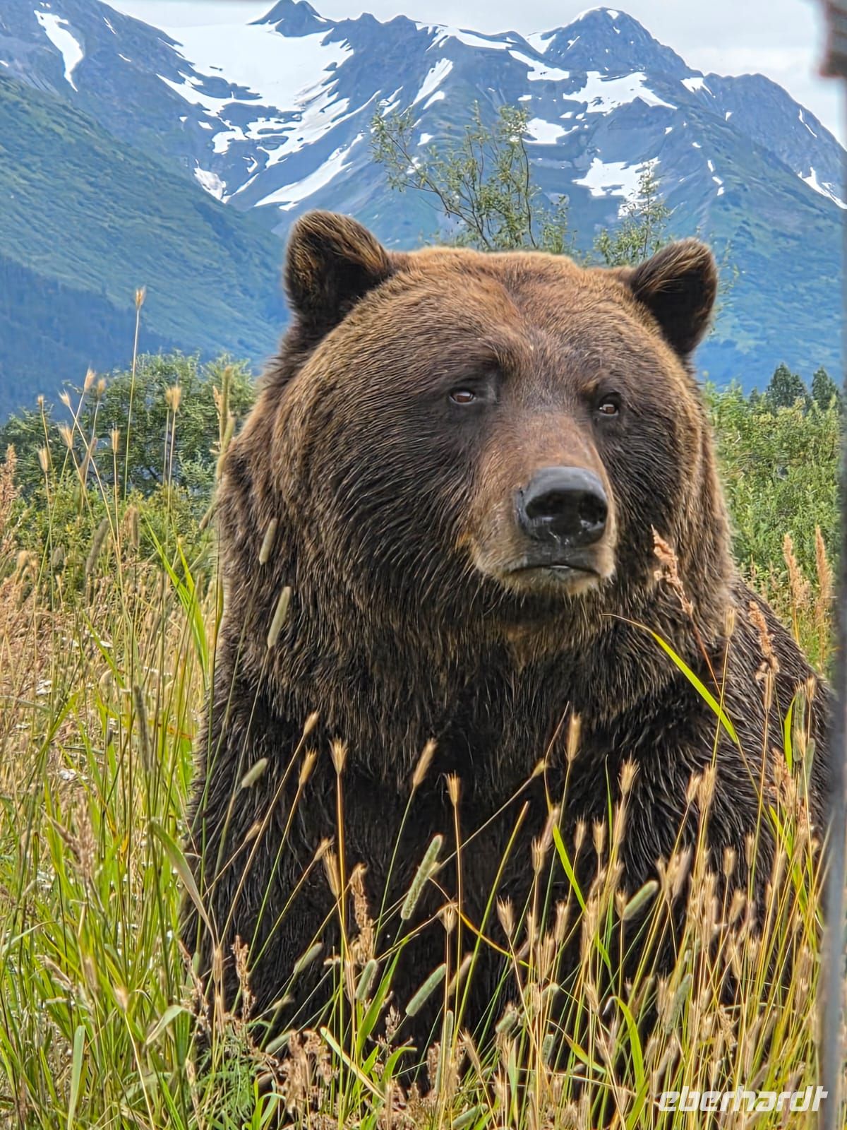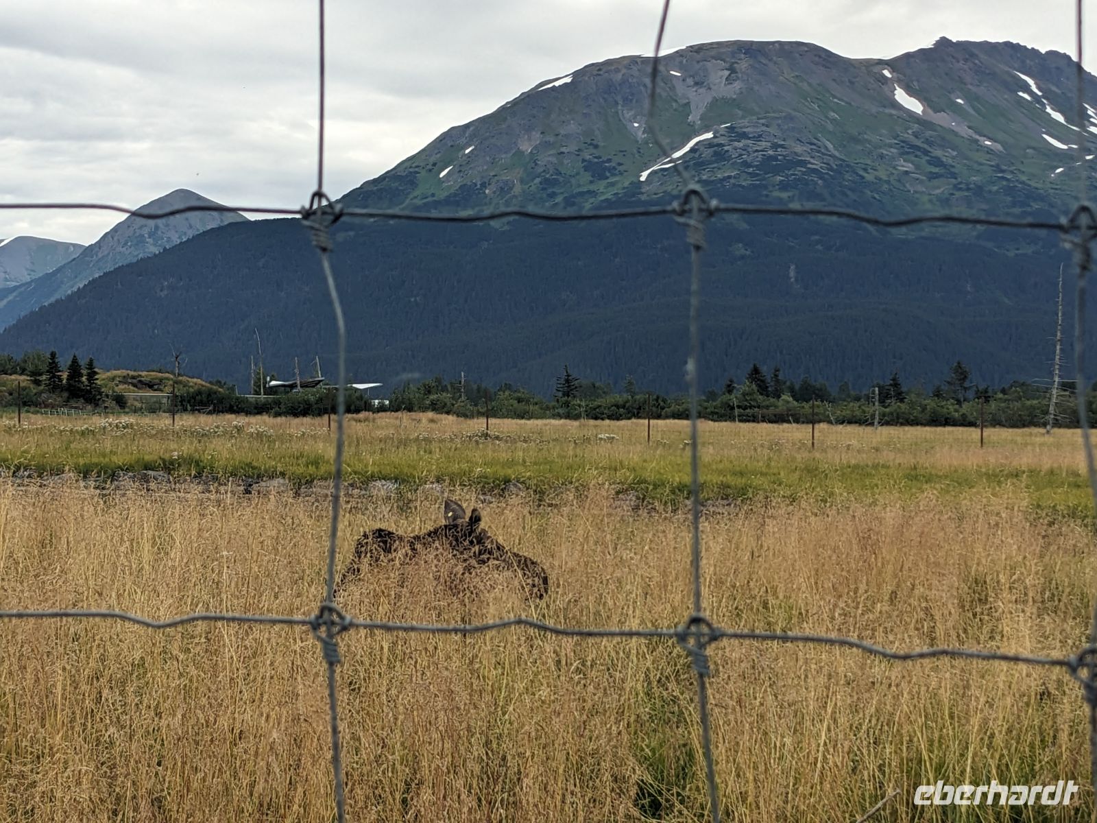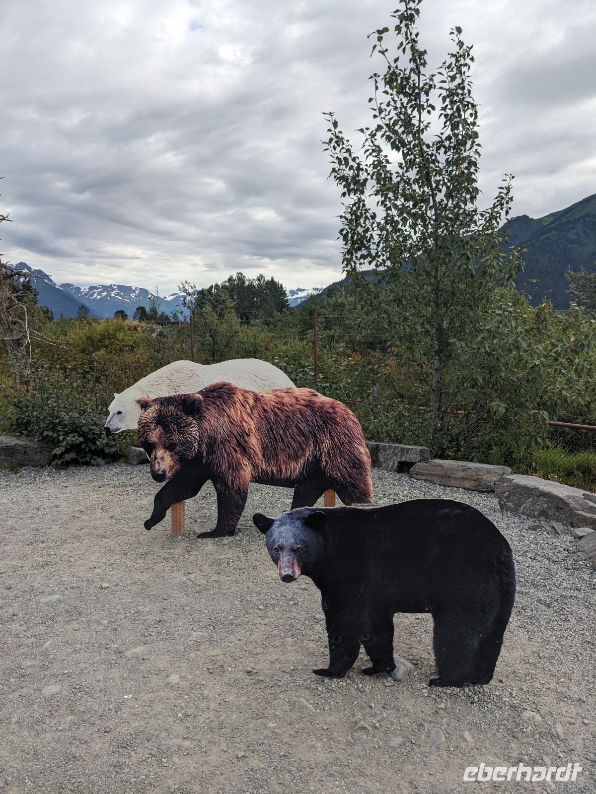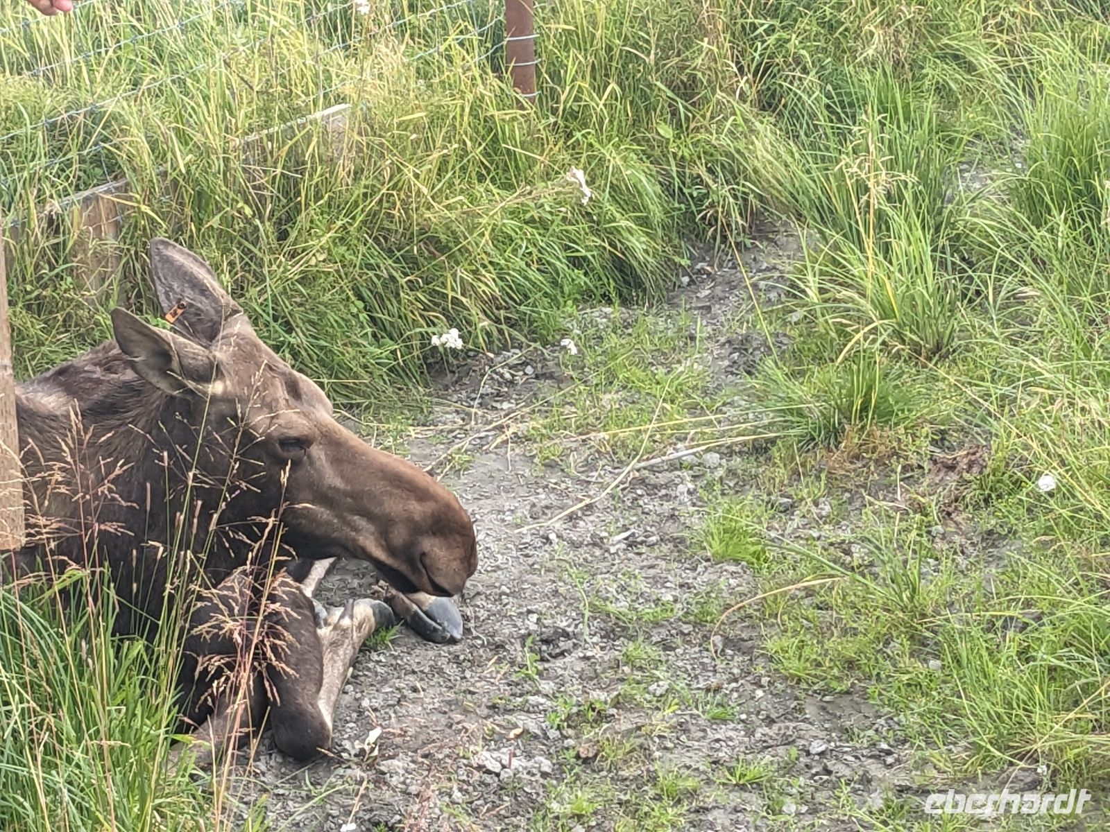 Kurz darauf erreichten wir das Portage Valley mit seinen Gletscherseen. Bei Fotostopps bestaunten wir spiegelglatte Wasserflächen, umgeben von schneebedeckten Bergen. Weiter ging es zum Alaska Wildlife Conservation Center, einer Auffangstation für verletzte oder verwaiste Wildtiere. Hier konnten wir Bären, Elche, Bisons und sogar Moschusochsen aus nächster Nähe sehen – eine tolle Gelegenheit für beeindruckende Fotos und spannende Einblicke in den Artenschutz.