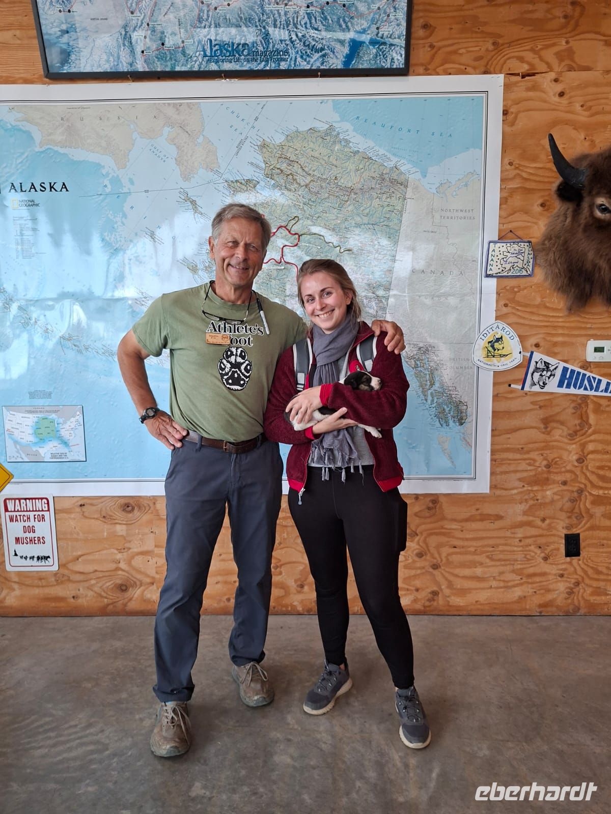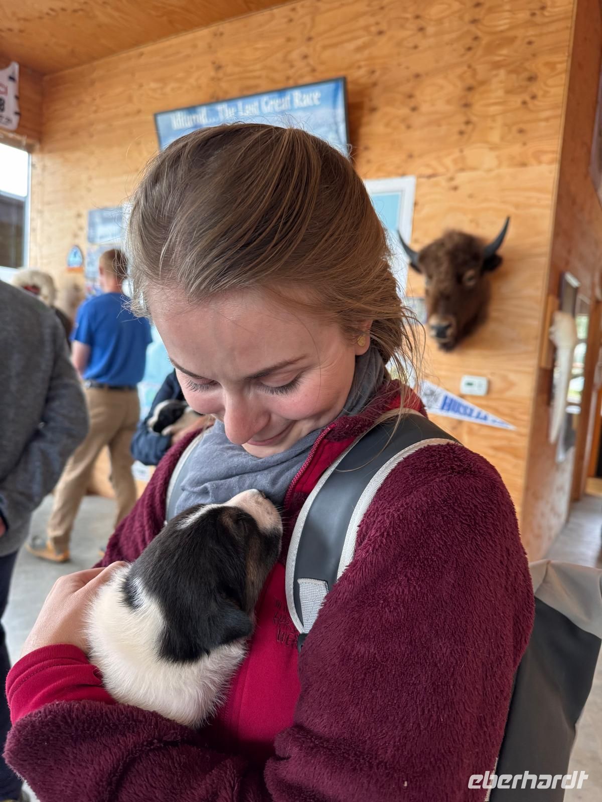 Heute ging es weiter in den Norden – und gleich am Morgen wartete ein absolutes Highlight: der Besuch bei Martin Buser, einem bekannten Musher und viermaligen Gewinner des Iditarod-Schlittenhunderennens. Er empfing uns herzlich auf seiner Farm und erzählte spannende Geschichten über das Leben der Schlittenhunde. Nach einer kurzen Einführung sahen wir, wie die Hunde angespannt werden und mit welcher Begeisterung sie starten – reine Energie auf vier Pfoten! Besonders emotional war das Welpenkuscheln: Kleine Huskys, gerade wenige Wochen alt, eroberten im Sturm die Herzen - besonders meins ; ).