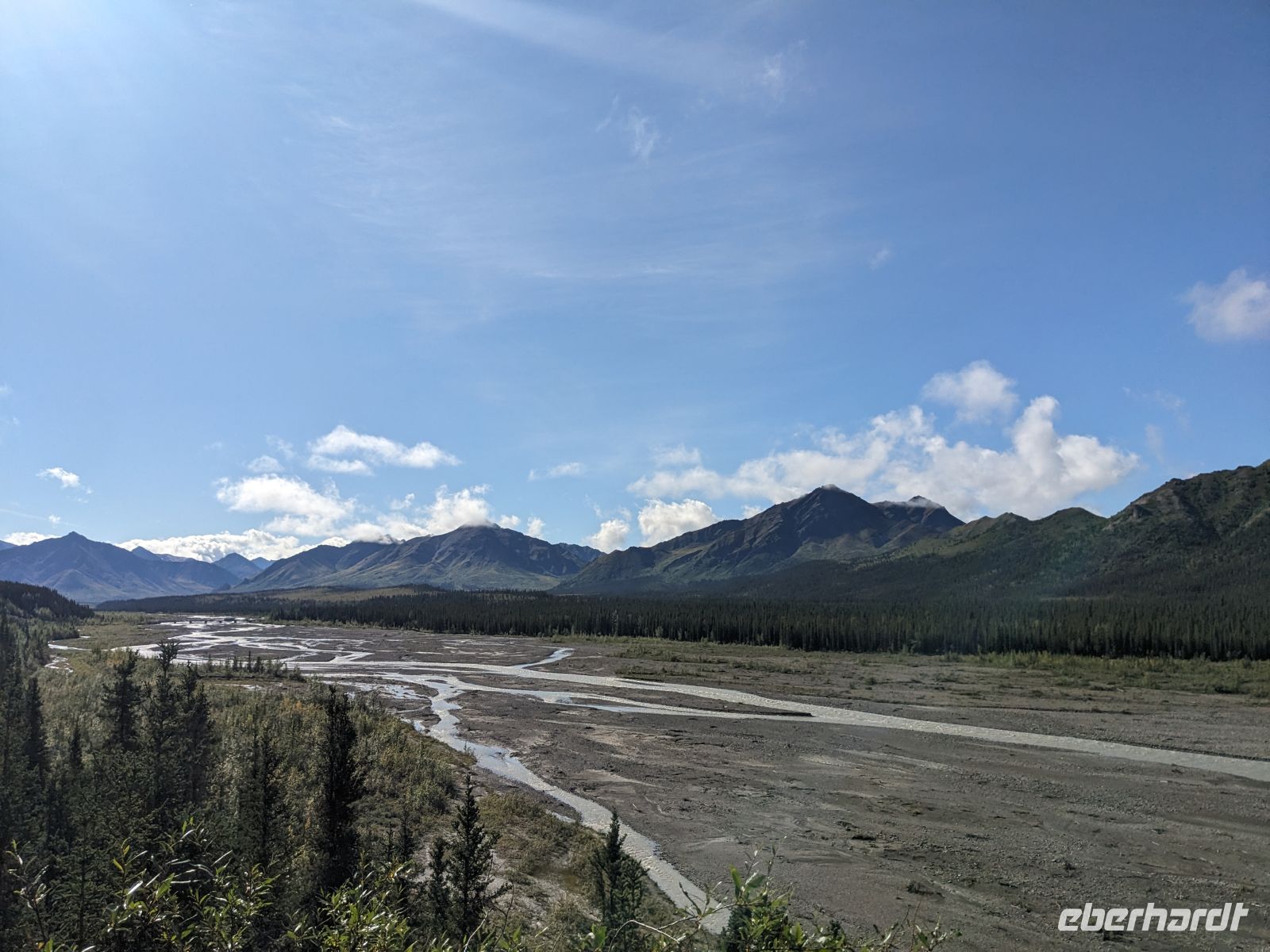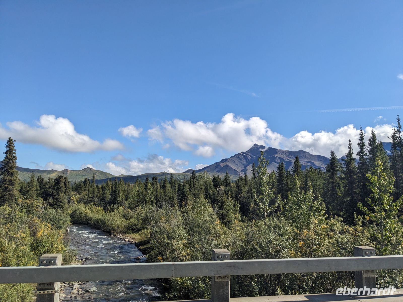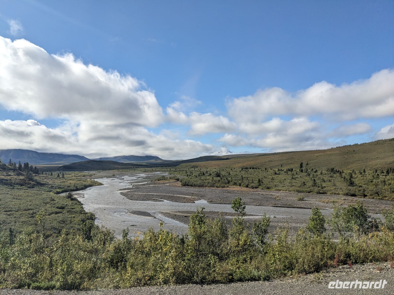 Nach diesem unvergesslichen Erlebnis setzten wir unsere Fahrt fort und erreichten am frühen Nachmittag das charmante Städtchen Talkeetna. Hier blieb Zeit für einen Spaziergang durch die bunte Main Street, vorbei an kleinen Cafés, Kunstläden und Holzhausfassaden, die wie aus einem Film wirkten. Anschließend fuhren wir weiter in Richtung Denali-Nationalpark, durch weite Wälder und entlang des Nenana Rivers.