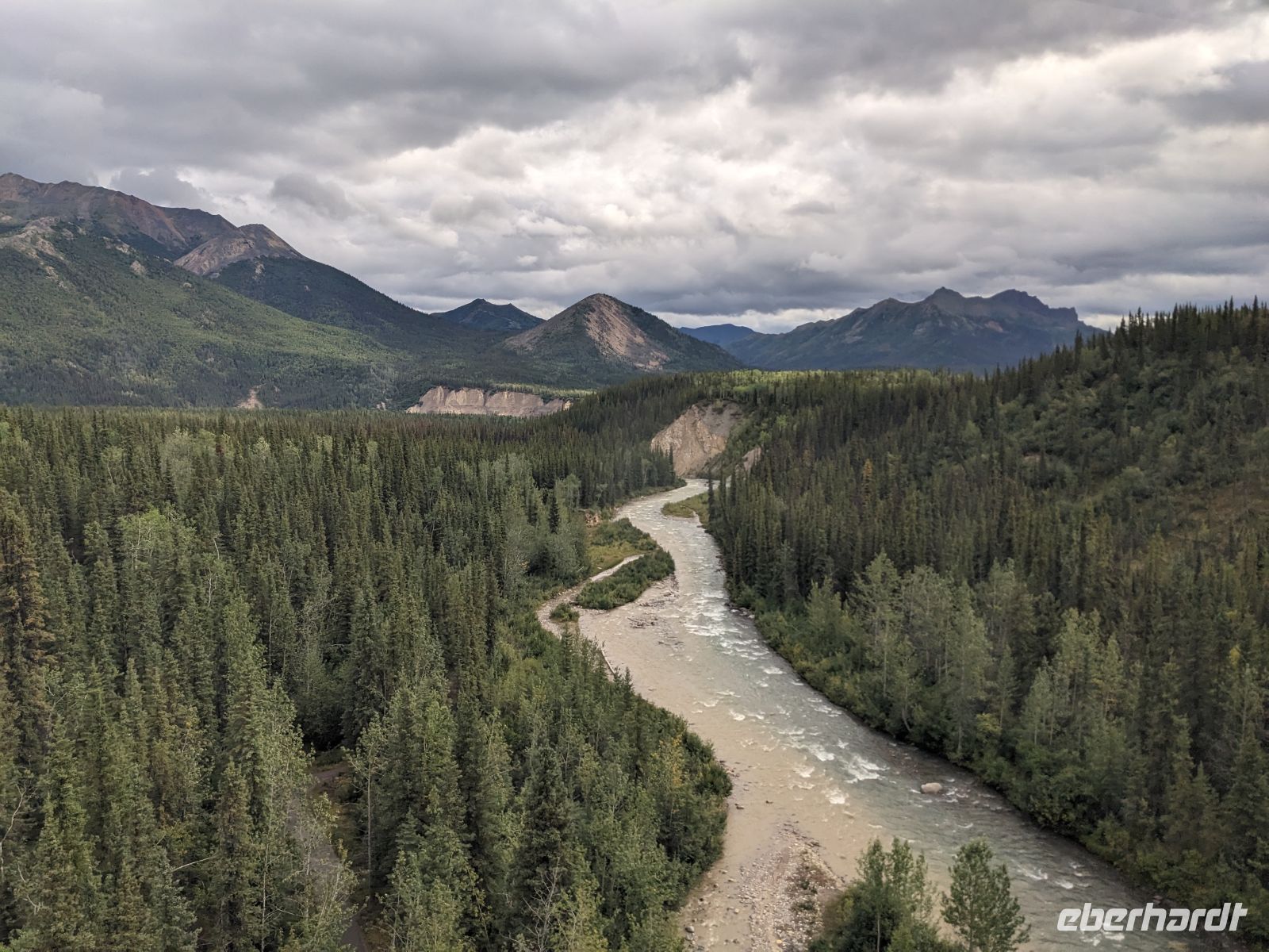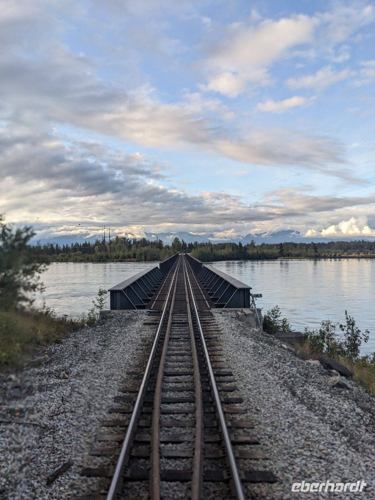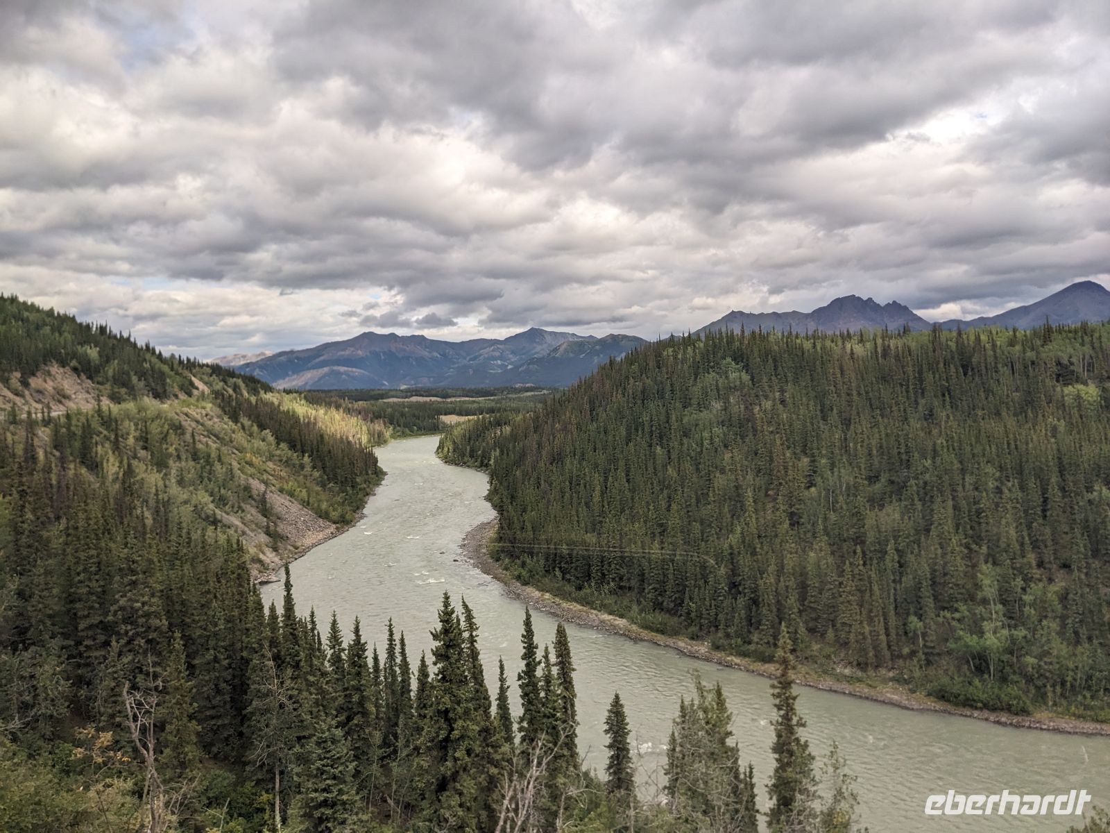Nach diesem unvergesslichen Erlebnis setzten wir unsere Fahrt fort und erreichten am frühen Nachmittag das charmante Städtchen Talkeetna. Hier blieb Zeit für einen Spaziergang durch die bunte Main Street, vorbei an kleinen Cafés, Kunstläden und Holzhausfassaden, die wie aus einem Film wirkten. Anschließend fuhren wir weiter in Richtung Denali-Nationalpark, durch weite Wälder und entlang des Nenana Rivers.