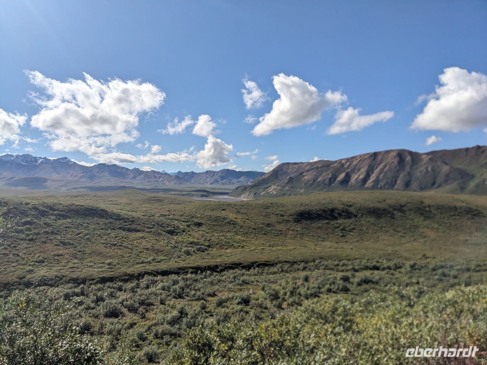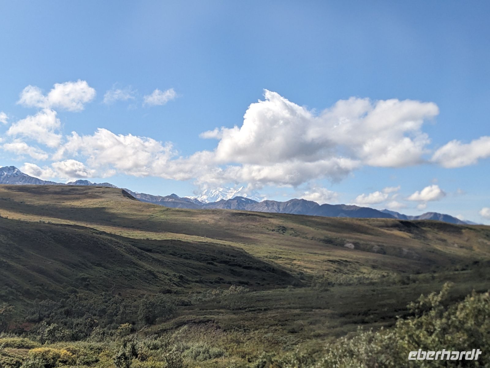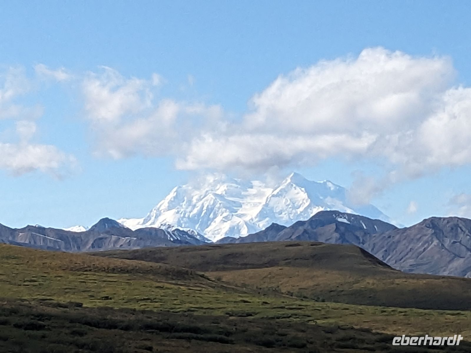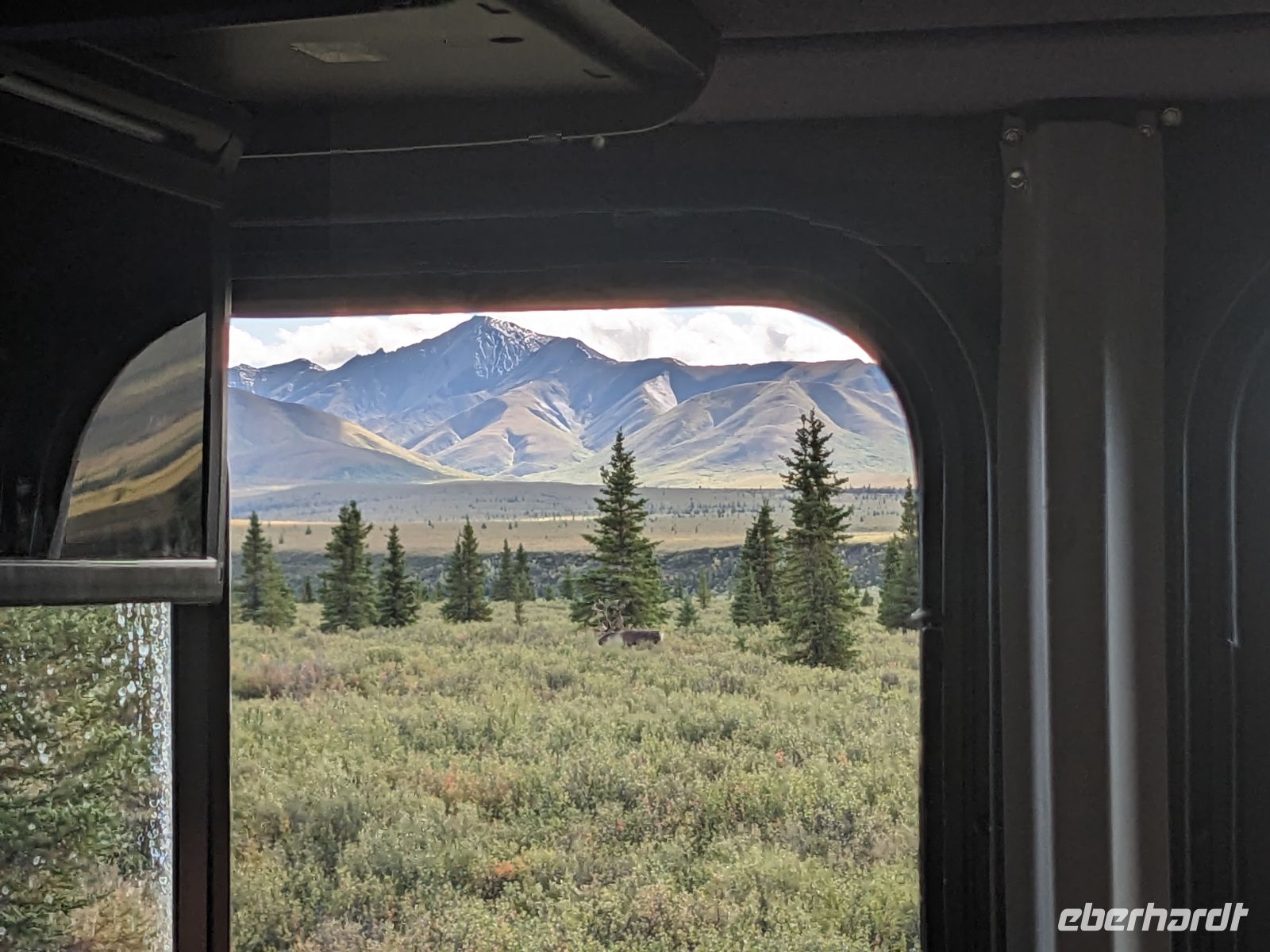 Der Tag begann früh, denn es stand einer der Höhepunkte der Reise an: die Tundra Wilderness Tour. In einem speziellen Bus des Parks ging es tief hinein in den Denali-Nationalpark. Aus der Ferne erspähten wir Bären, Elche und Karibus, während unser Fahrer spannende Geschichten und Fakten rund um den Park erzählte. Durch die sehr gute Kamera des Fahrers konnten wir die Tiere vergrößert auch im Bus auf den Bildschirmen bestaunen. Die unberührte Natur, weite Tundren und die mächtigen Berge im Hintergrund hinterließen bleibende Eindrücke. Auch der Denali ließ sich fast in seiner vollen Pracht blicken - wir konnten das gewaltige Bergmassiv in seiner vollen Größe bestaunen und gehören damit zu den 30% der Besucher, die ihn überhaupt zu sehen bekommen. Wenn Engel reisen...