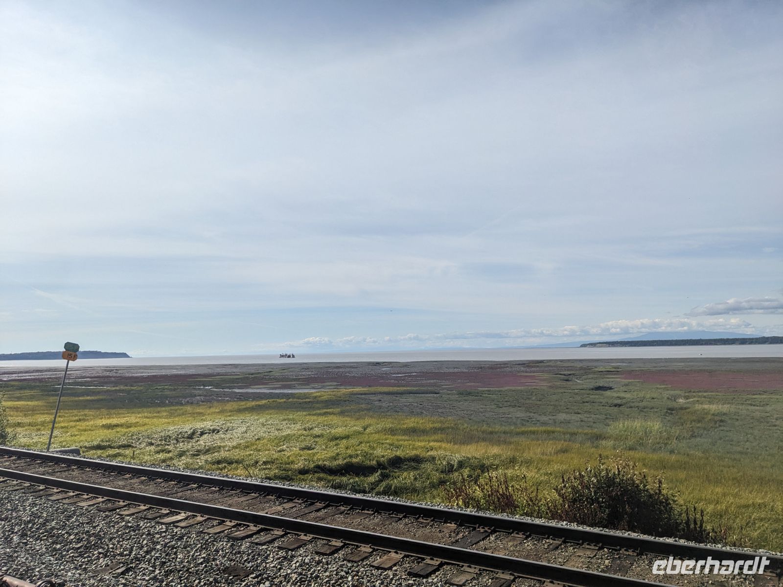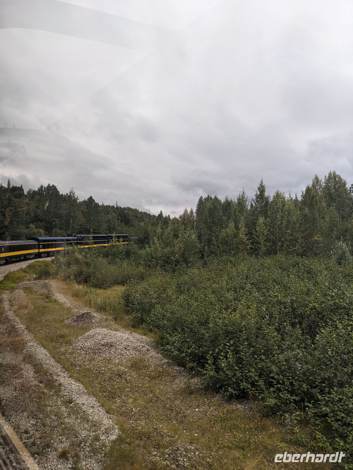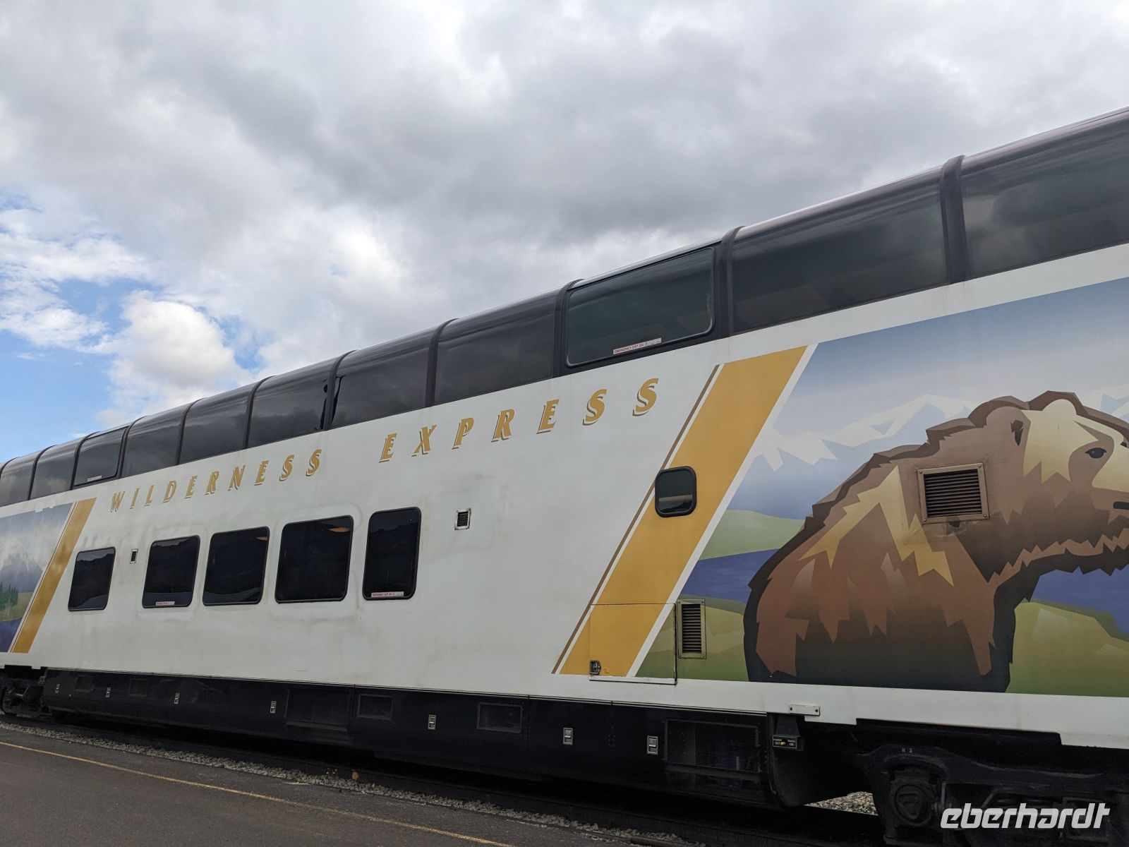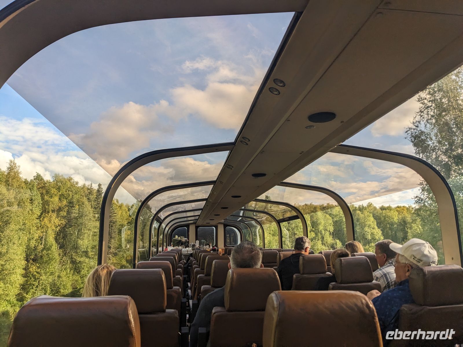 Heute hieß es: Einsteigen und genießen! Die Fahrt mit dem Wilderness Express, dem berühmten Panoramazug, war ein absolutes Highlight. In den großzügigen Glaskuppel-Waggons hatten wir freien Blick auf die vorbeiziehende Landschaft: endlose Wälder, glitzernde Flüsse und majestätische Berge. Immer wieder sahen wir kleine Siedlungen, verlassene Holzhütten und am Ende sogar zwei Elche am Wegesrand.