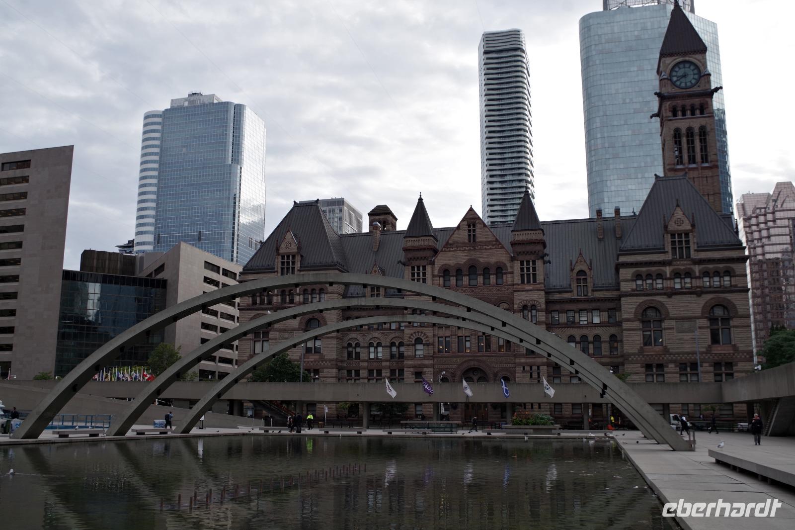 Nach einem ausgiebigen Frühstück haben wir den heutigen Tag mit der Besichtigung Torontos begonnen. Unser erster Stopp war das Rathaus der Stadt. Im Winter verwandelt sich der Platz vor diesem in eine riesige Schlittschuhbahn.