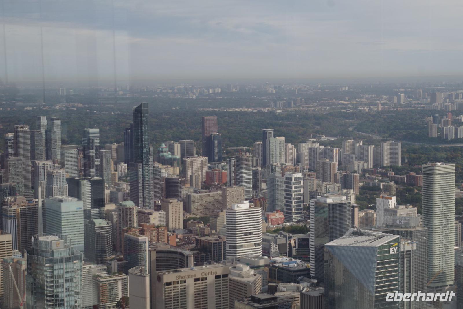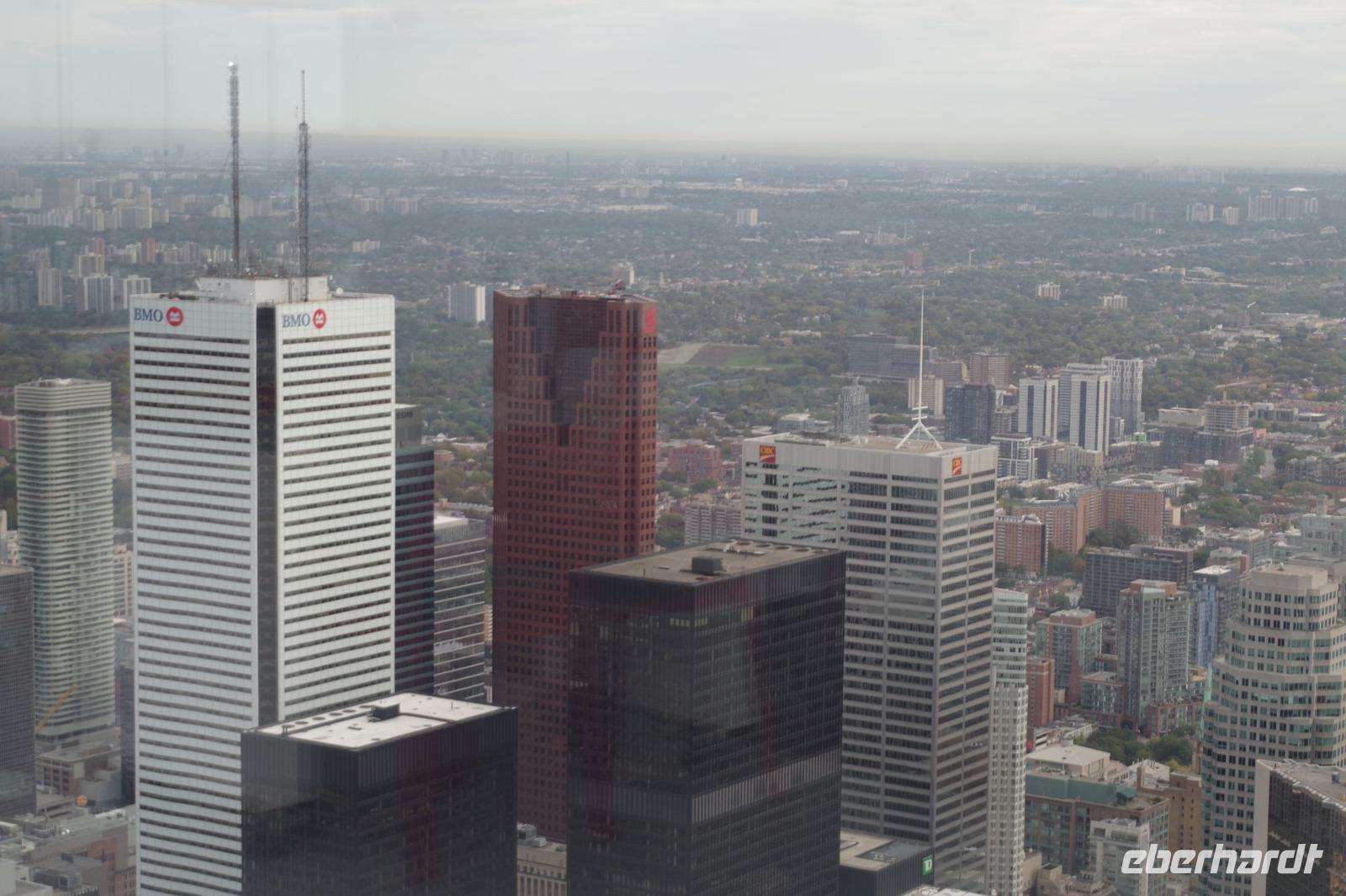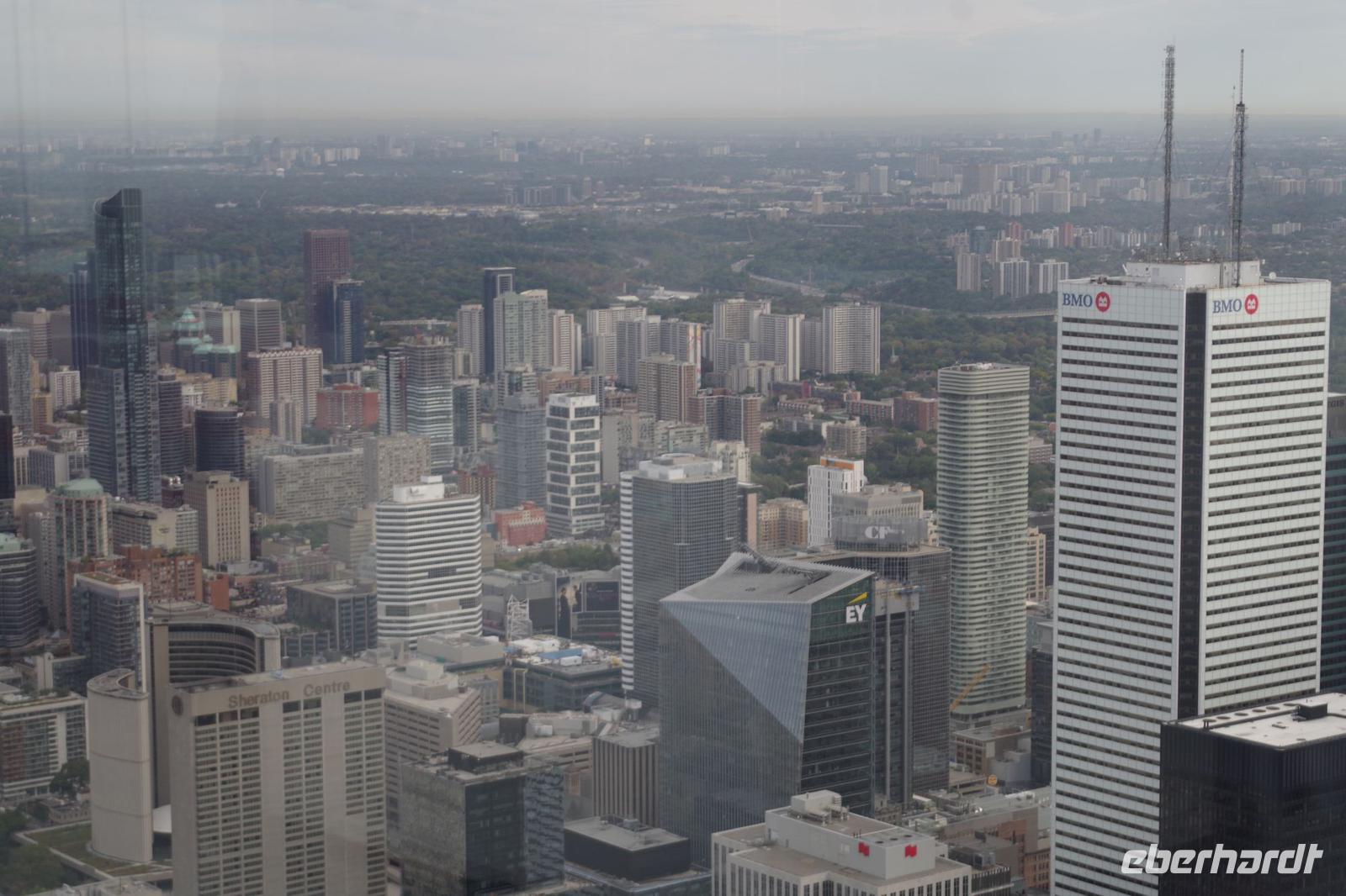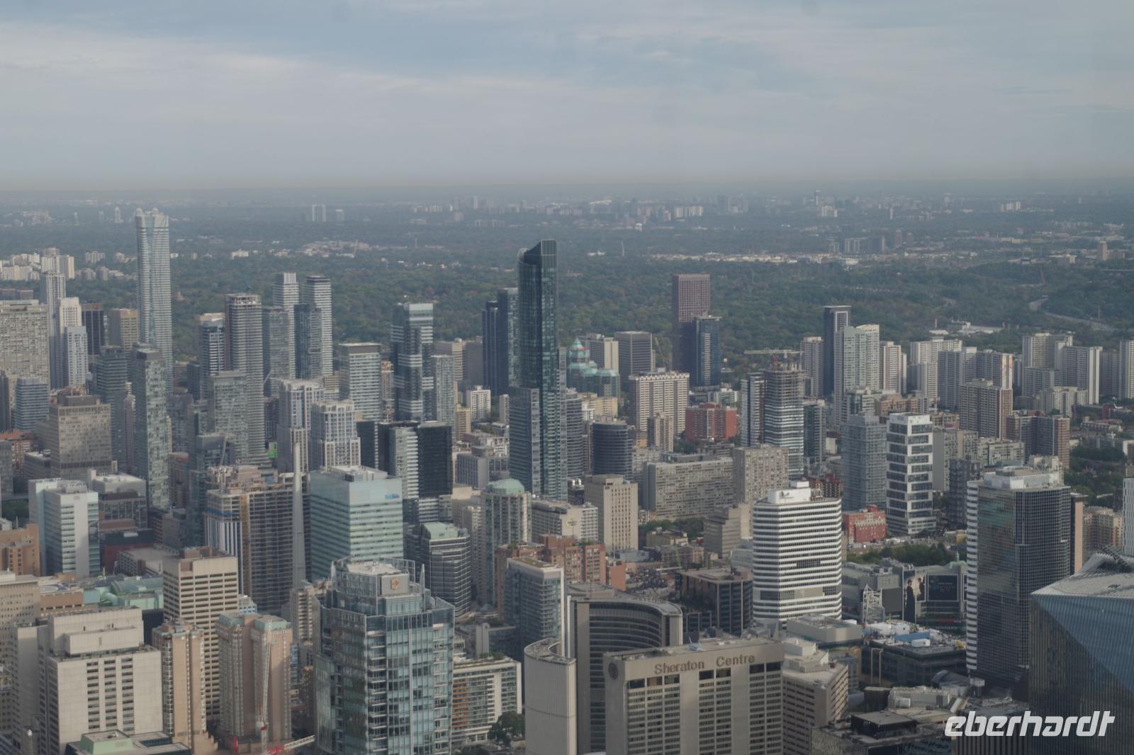 Im Anschluss fuhren wir zum 553 m hohen CN Tower, von dem wir einen wirklich tollen Ausblick hatten. Wir besuchten die beiden Aussichtsplattformen und konnten so wunderbare Ausblicke auf die Stadt mit den Wolkenkratzern, aber auch auf den Lake Ontario genießen.