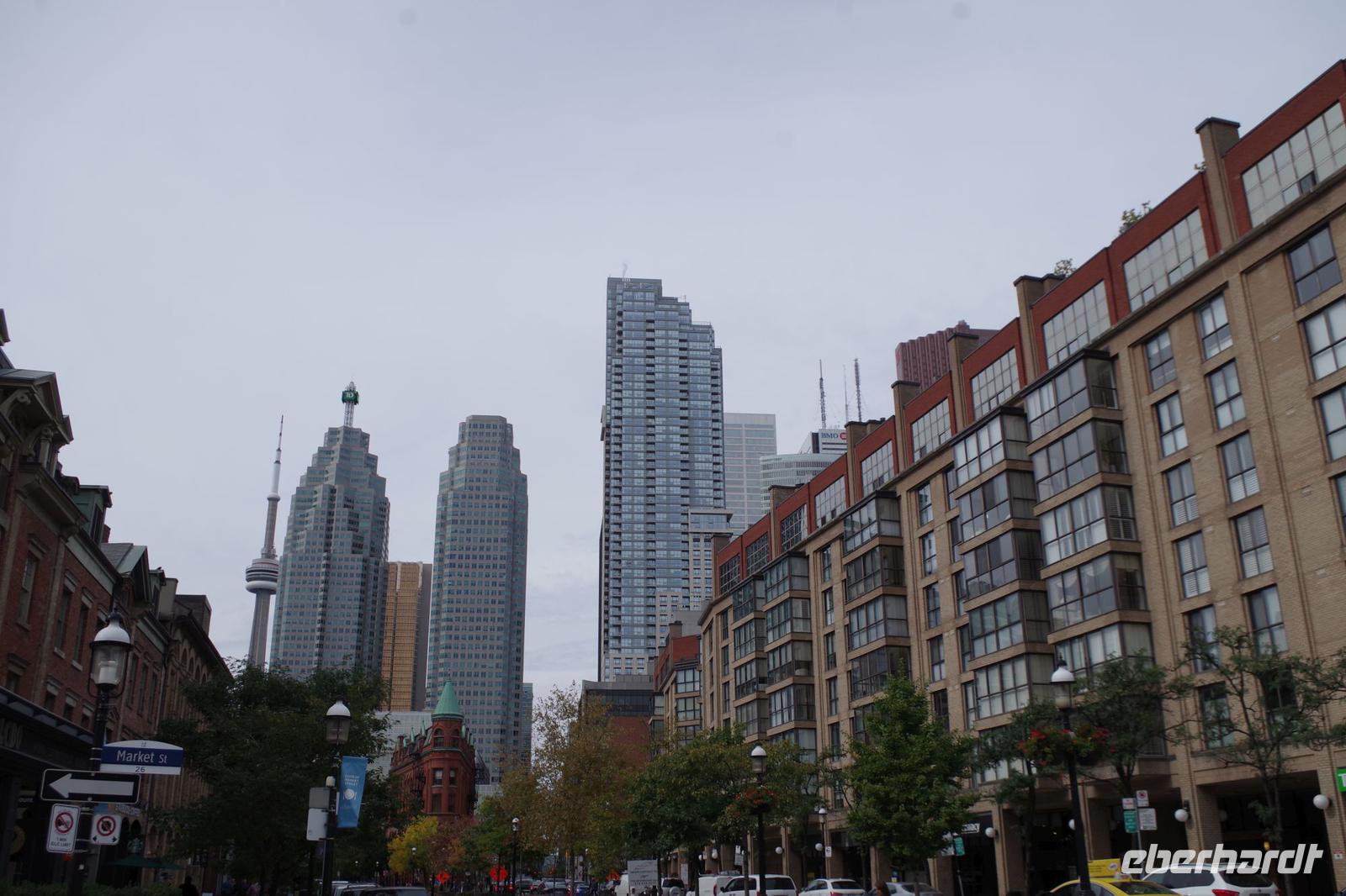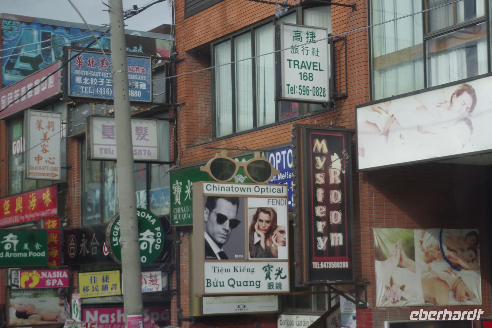 Danach starteten wir so richtig mit der Stadtrundfahrt. 45 Prozent der Torontianer stammen nicht ursprünglich aus Kanada. Die meist gesprochenen Sprachen sind Englisch, Französisch, Italienisch und dann Chinesisch. Vor einigen Jahren stand noch Deutsch an vierter Stelle, wurde nun aber von der chinesischen Sprache abgelöst. Wir fuhren während der Stadtrundfahrt auch durch das chinesische Viertel, in dem sogar alle Beschriftungen in chinesischen Schriftzeichen zu sehen sind.