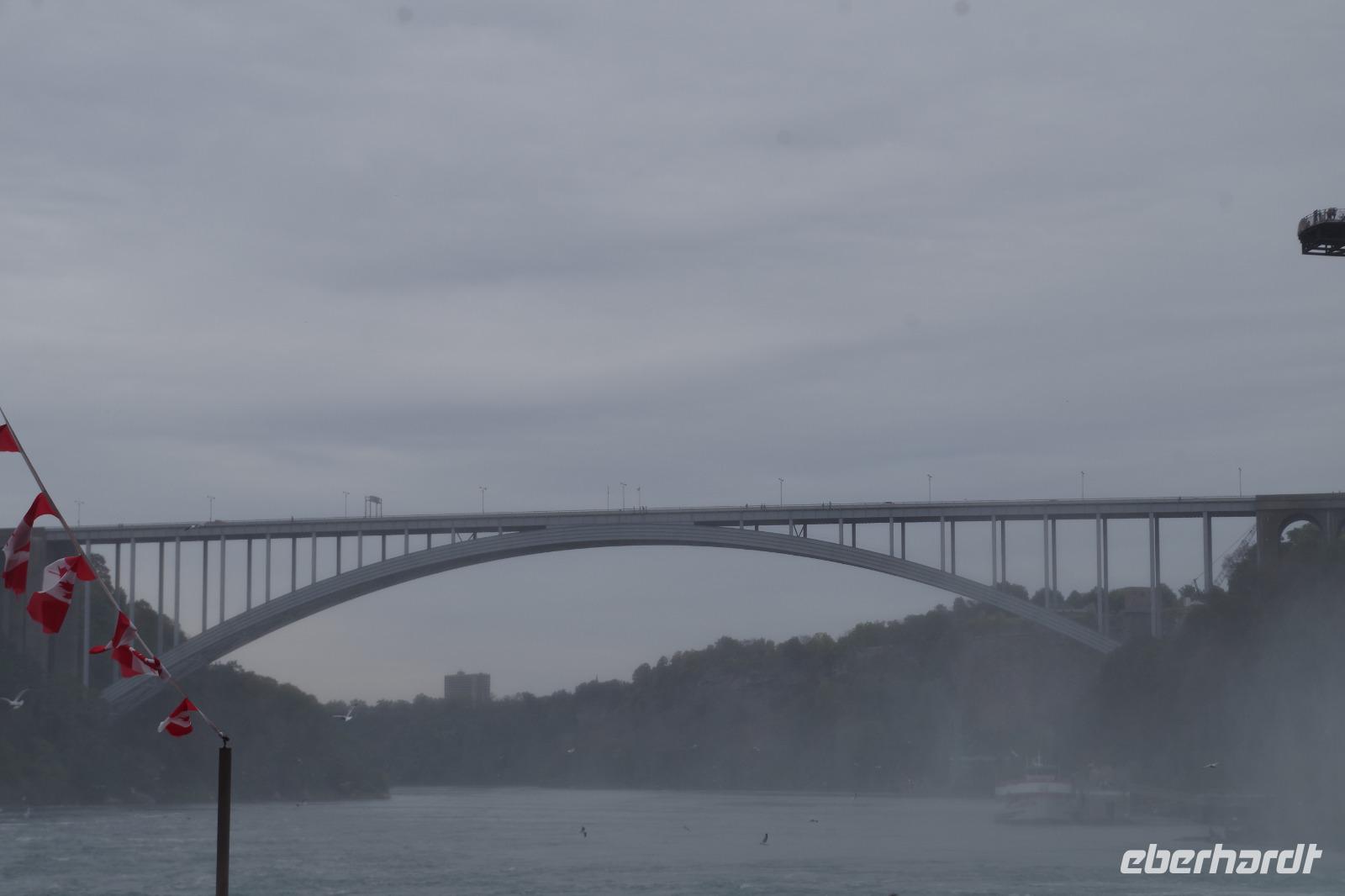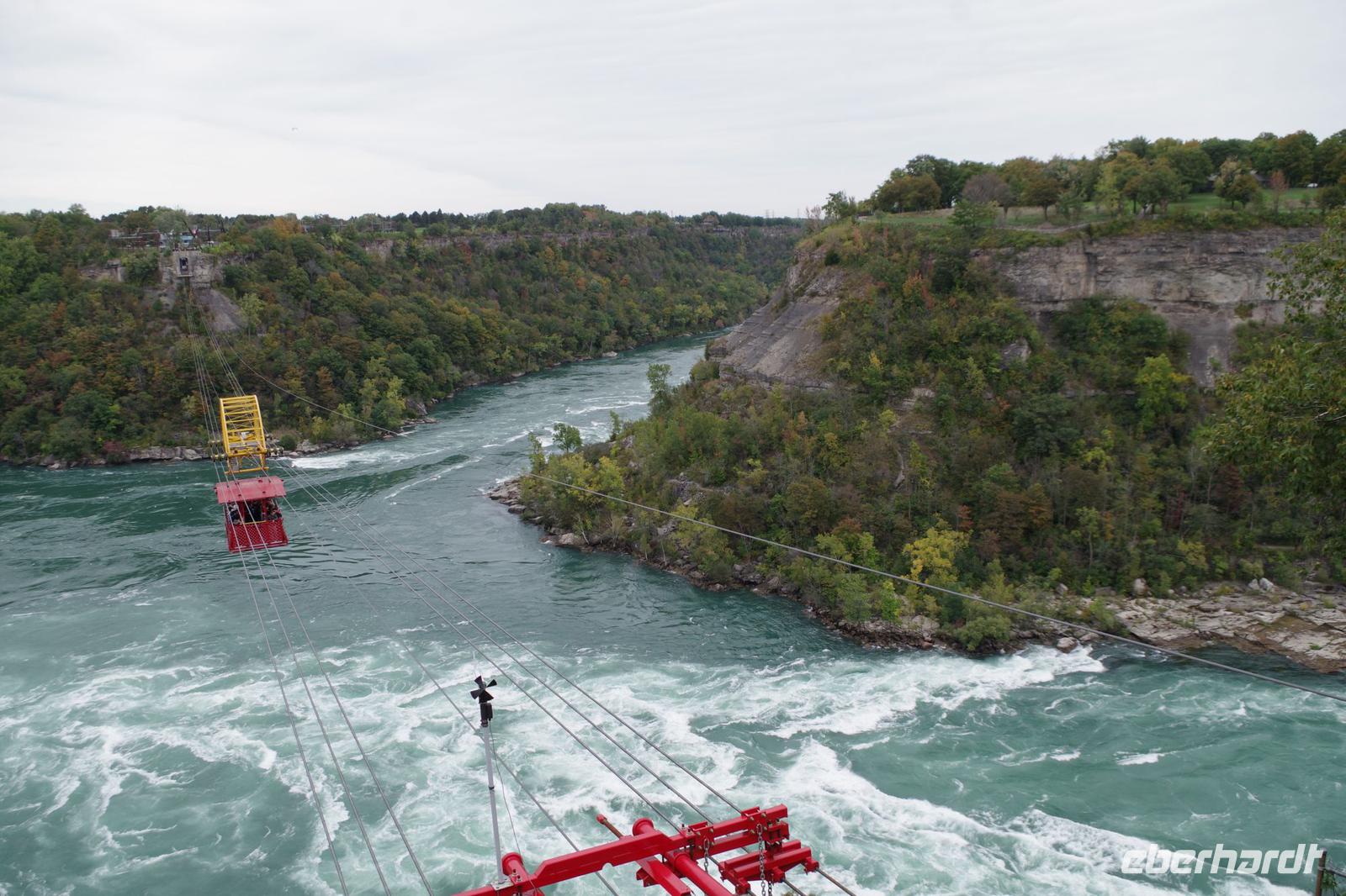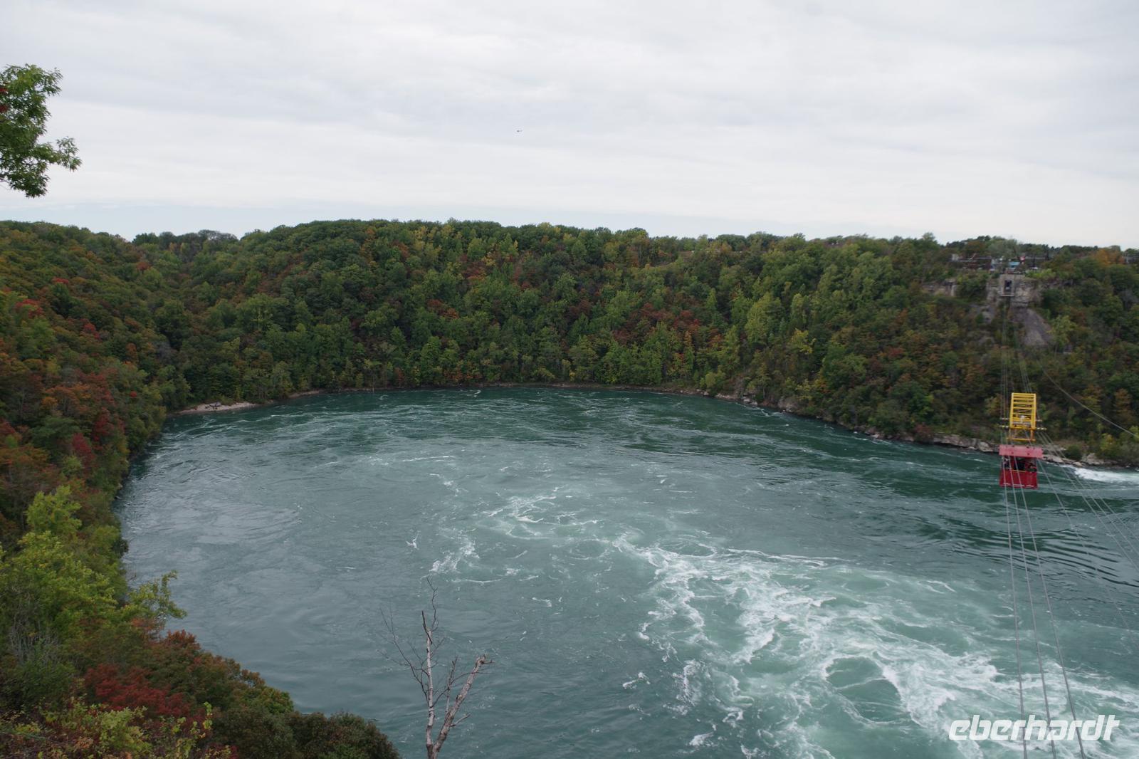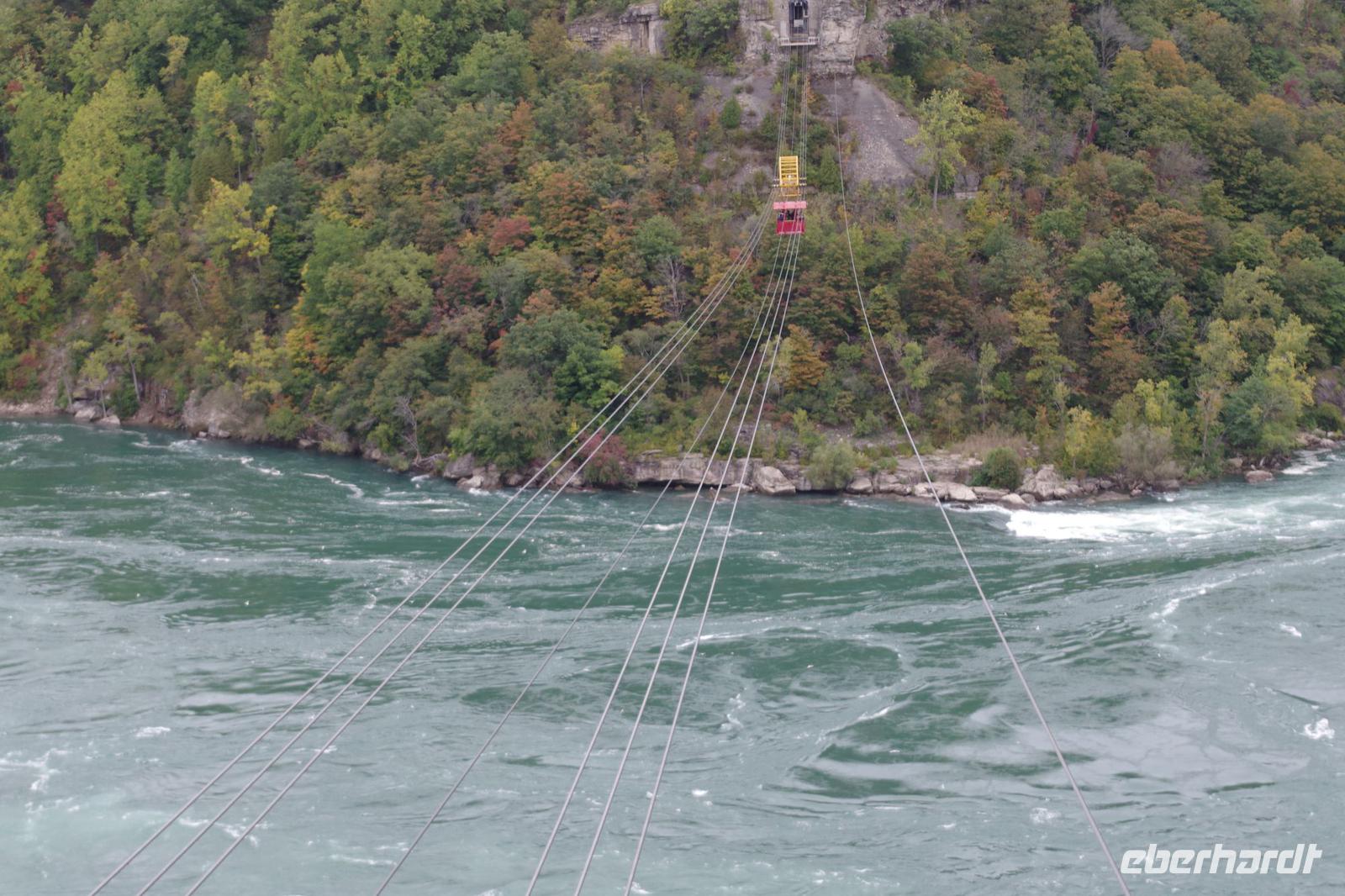 Danach startete unserer Fahrt in Richtung der Niagara Fälle. Wir fuhren dabei auch durch den schönen, kleinen Ort Niagara on the Lake, hielten nochmal am sogenannten Whirlpool der Niagara Fälle und erreichten diese dann endlich. Durchschnittlich stürzen dort 6 Millionen Liter Wasser pro Sekunde herunter. Die Niagara Fälle werden auch für die Stromerzeugung genutzt, weswegen man nur etwa 60 Prozent der Wassermassen sehen kann. Im Winter und in der Nacht fließen sogar nur 30 Prozent des Wassers über die Fälle. Damit soll verhindert werden, dass die Wasserfälle noch mehr wandern. Die Wasserfälle befinden sich mittlerweile schon ganze 11 km in südlicher Richtung entfernt vom ursprünglichen Standort. Aufgrund der Einschränkungen kann heute nur noch eine Bewegung von etwa 10 cm pro Jahr vernommen werden.