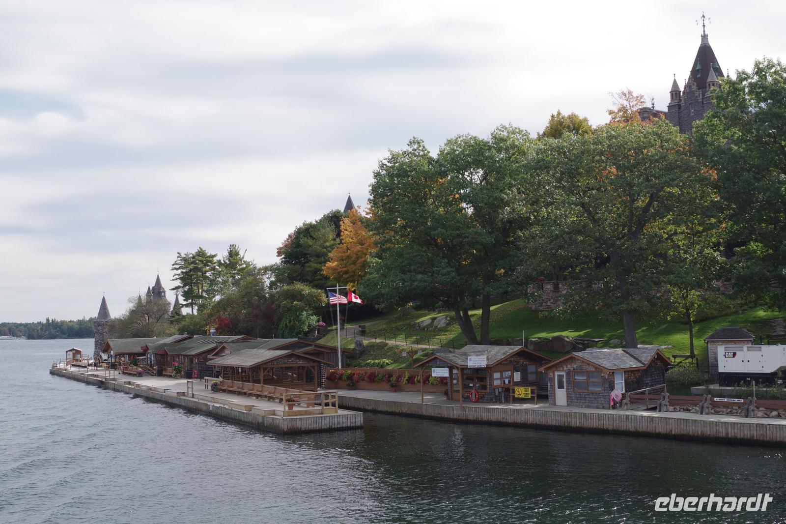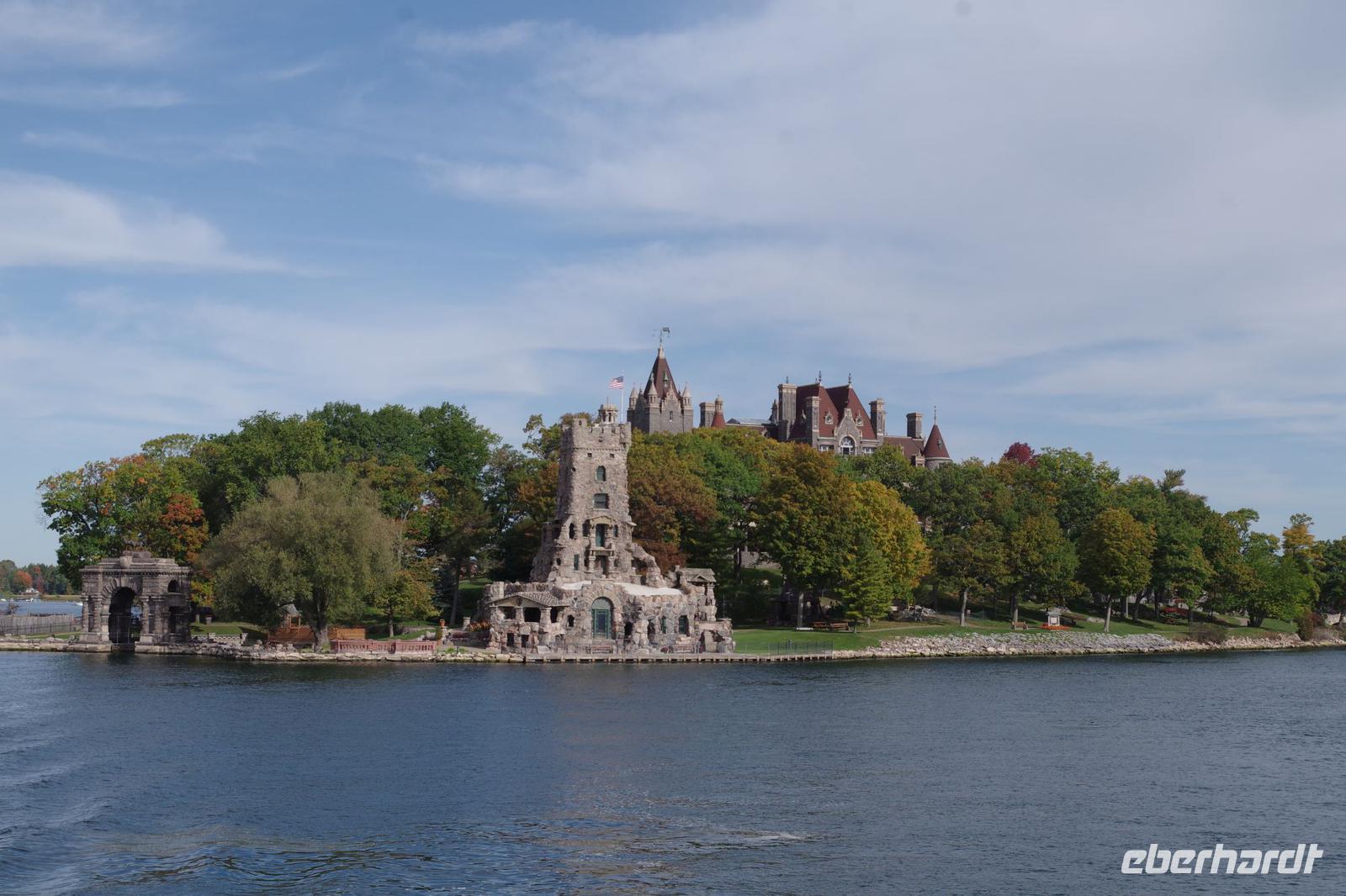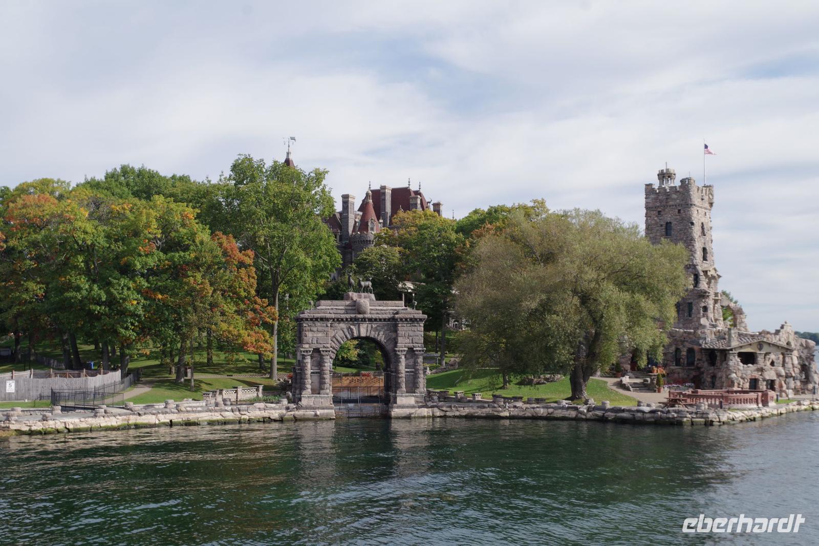 Anschließend setzten wir unsere Fahrt zum Hafen in Rockport fort, von wo wir eine Bootsfahrt im 1.000 Islands Nationalpark unternahmen. Wir befanden uns dann sowohl im kanadischen, als auch im US-amerikanischen Gewässer. Es gab wirklich viele schöne, auch sehr kleine Inseln zu sehen. Am beeindruckensten war natürlich Heart Island mit dem imposanten Boldt Castle.
