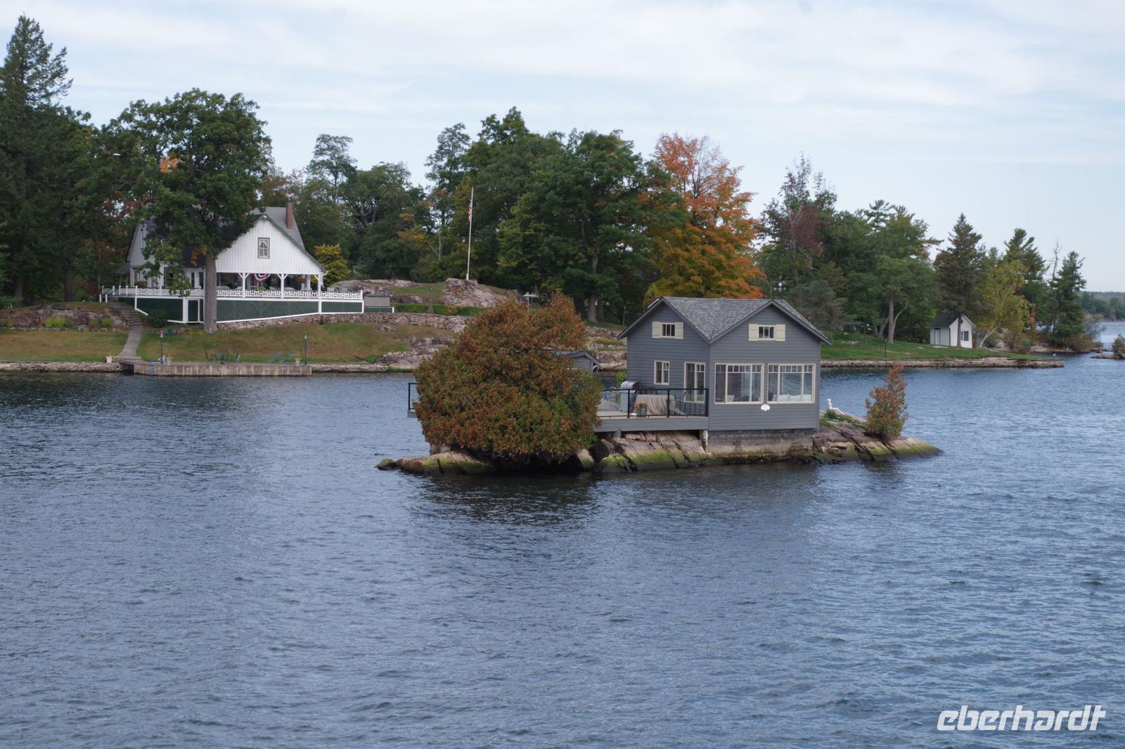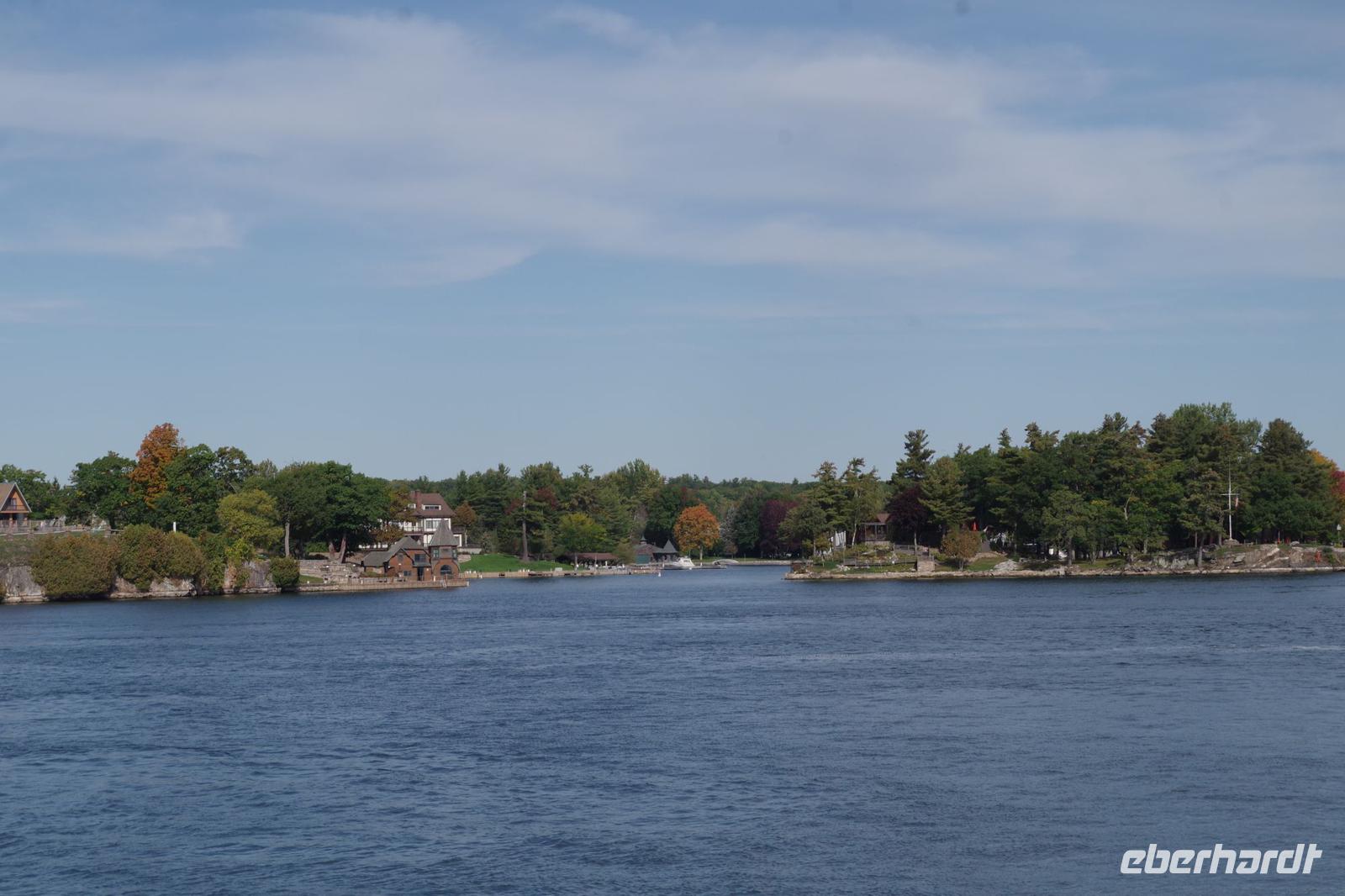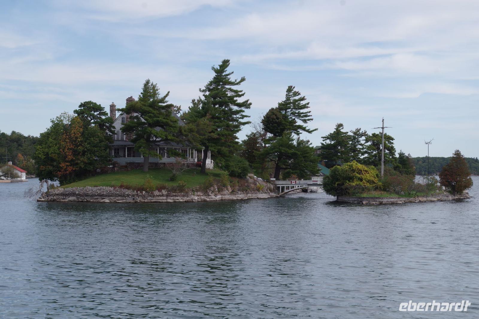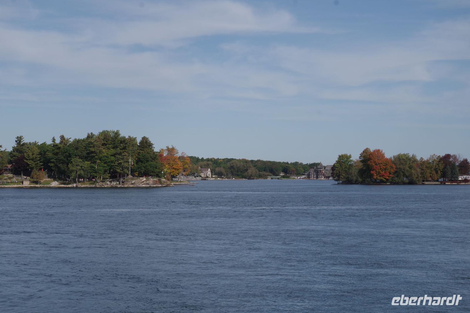 Anschließend setzten wir unsere Fahrt zum Hafen in Rockport fort, von wo wir eine Bootsfahrt im 1.000 Islands Nationalpark unternahmen. Wir befanden uns dann sowohl im kanadischen, als auch im US-amerikanischen Gewässer. Es gab wirklich viele schöne, auch sehr kleine Inseln zu sehen. Am beeindruckensten war natürlich Heart Island mit dem imposanten Boldt Castle.