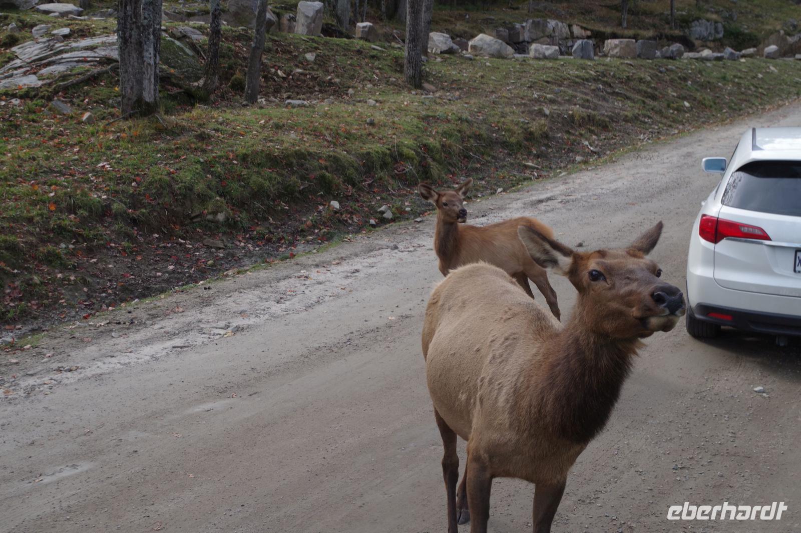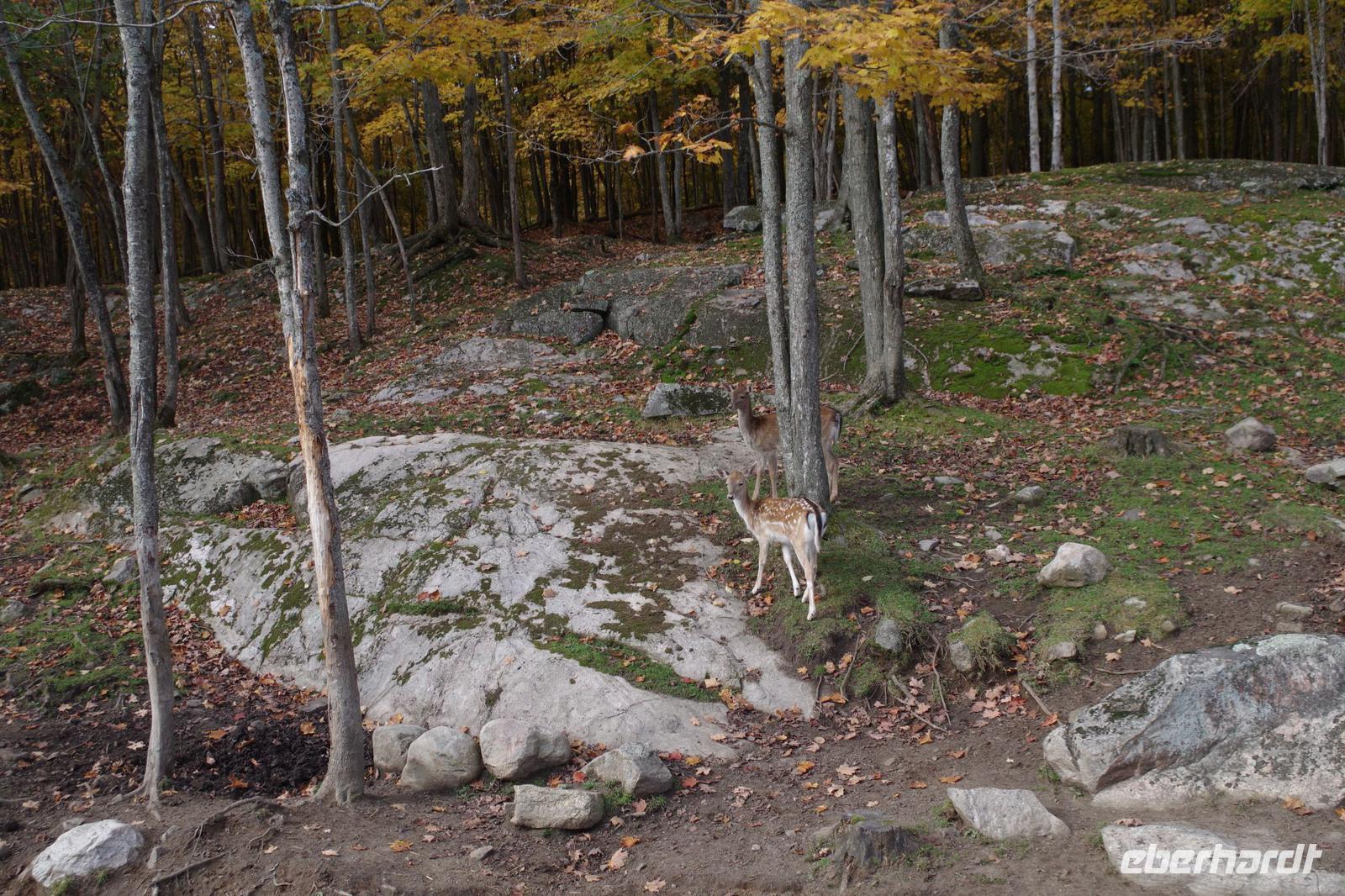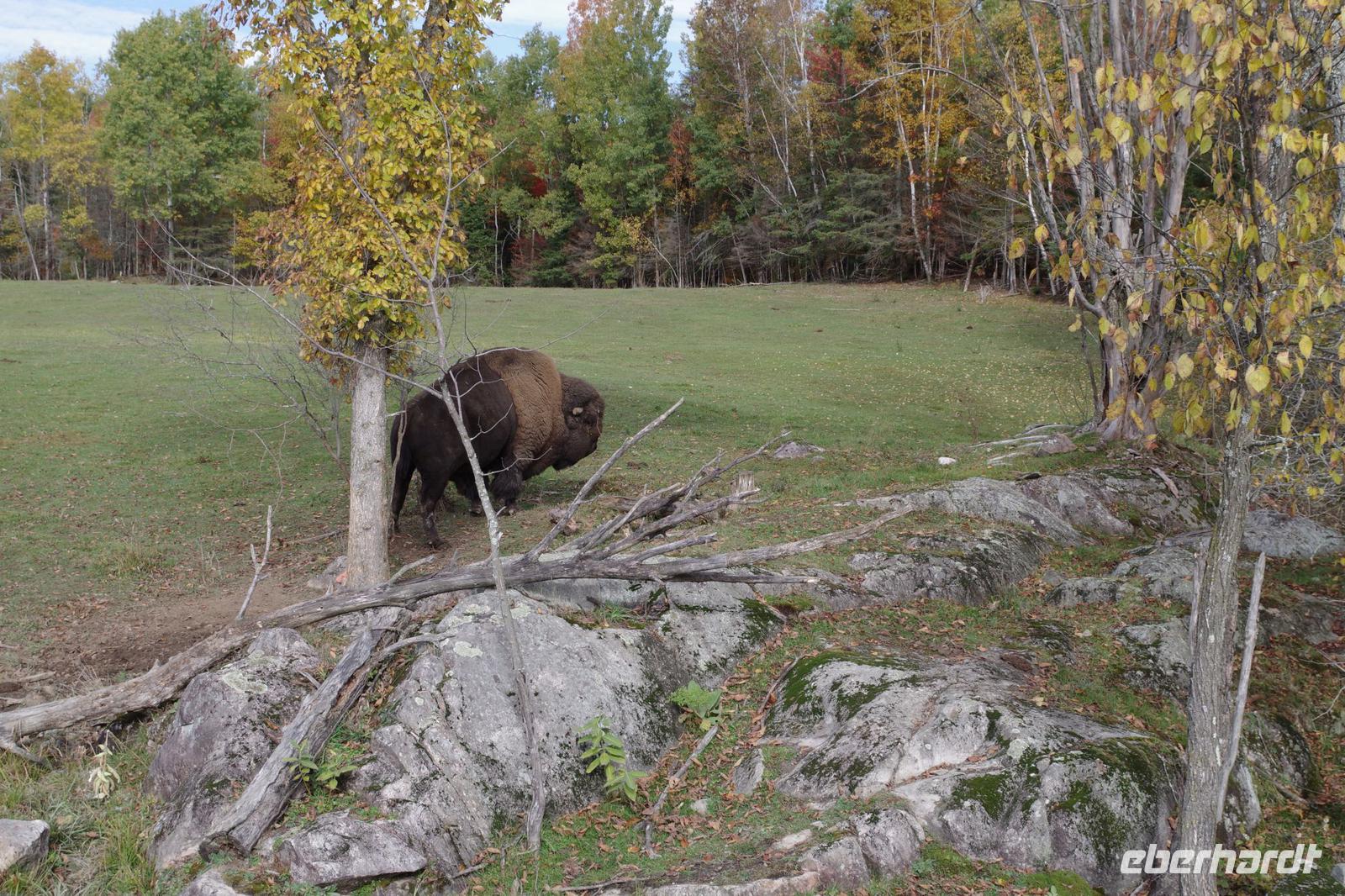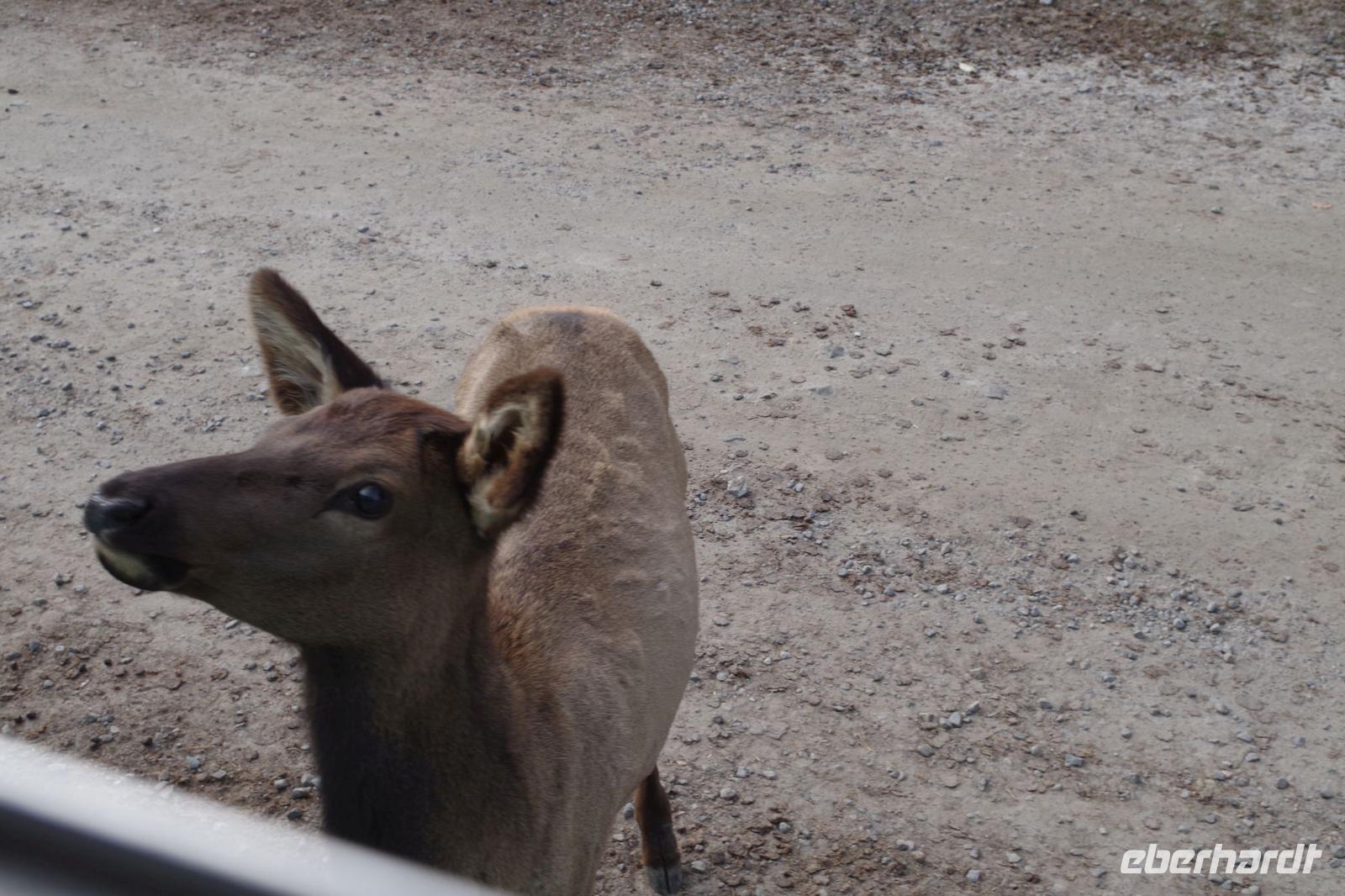Heute reisten wir weiter nach Montreal. Auf dem Weg dahin besuchten wir den Omega Wildlife Park, wo wir in einen anderen Bus umstiegen. In diesem konnte man die Fenster öffnen, so dass wir die Tiere besser beobachten konnten. Auch Möhren wurde zum Füttern verteilt, durch die offenen Fenster ging das super. Es war eine wirklich abwechslunsreiche Fahrt durch den Park. Wir sahen jede Menge Hirsche und Rehe, aber beispielsweise auch Kojoten, Bergziegen, Bisons, Wölfe, einen Elch und Zimtbären.
