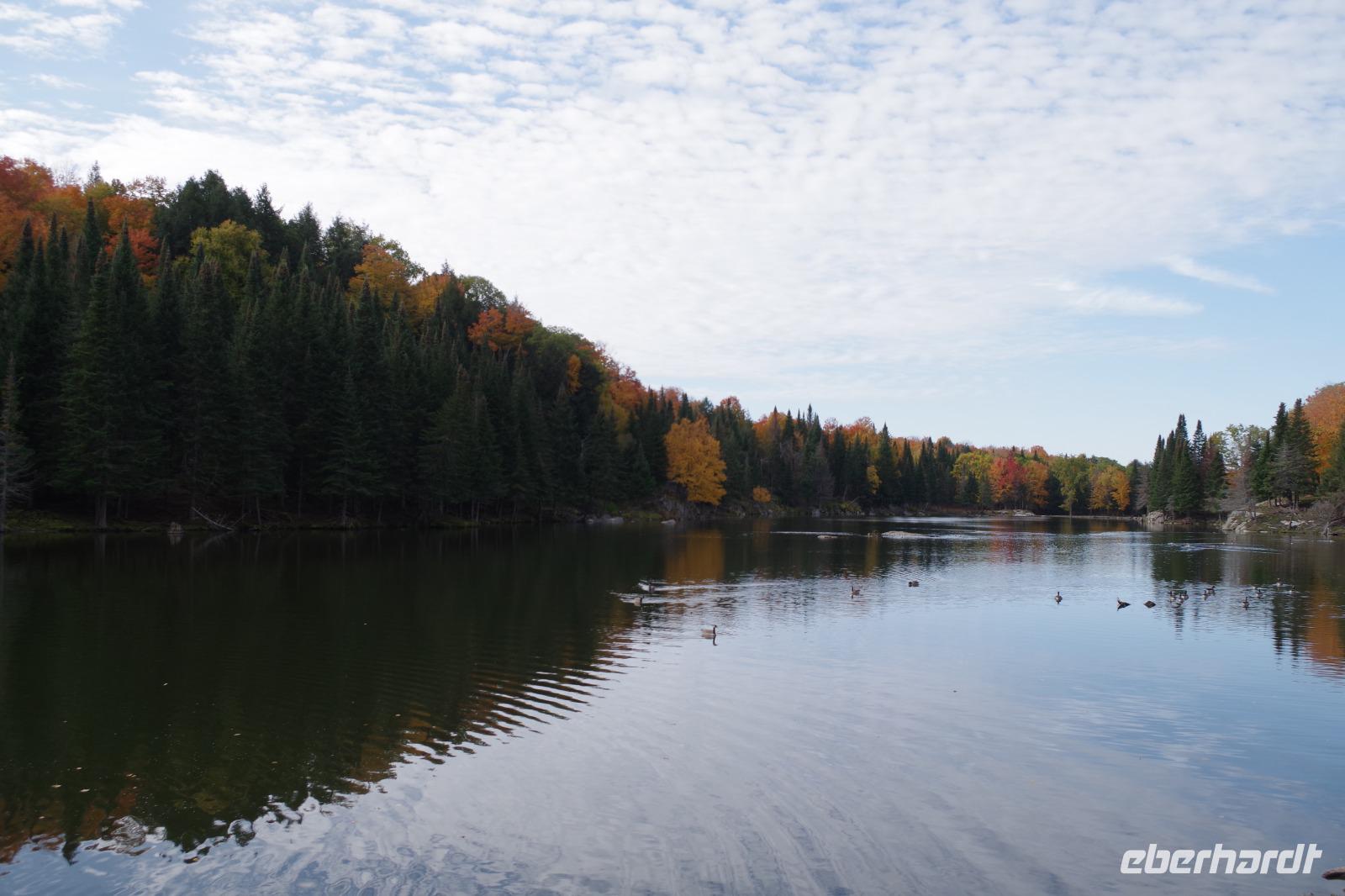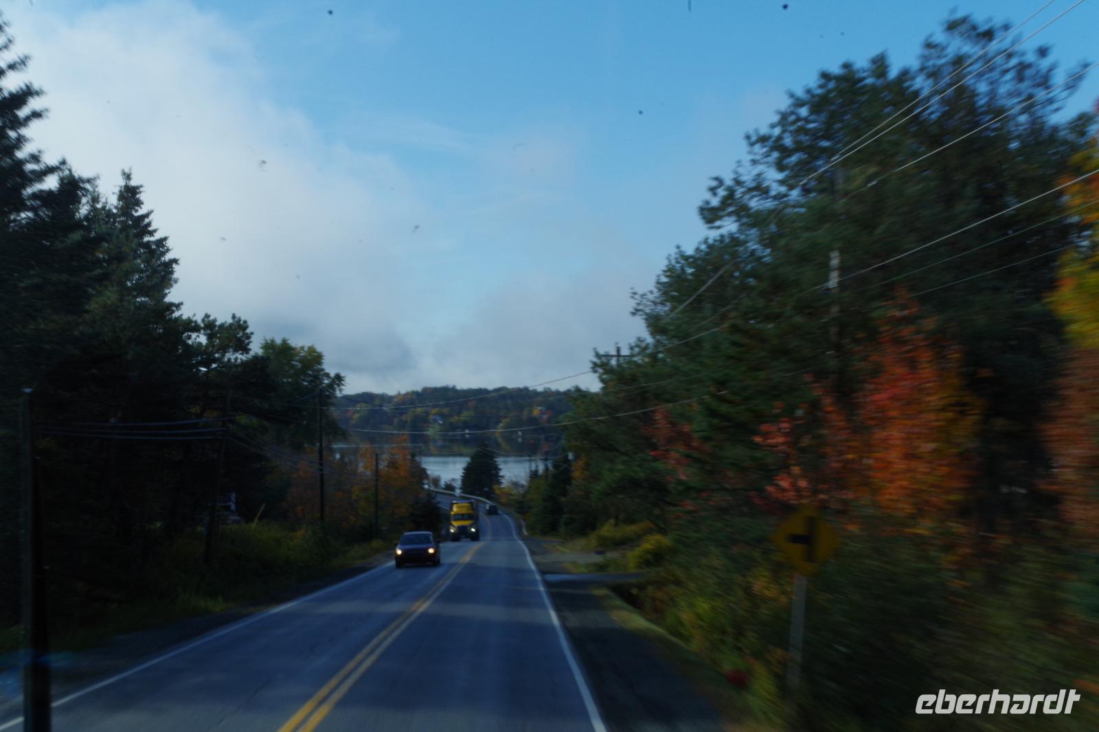 Auf dem Rückweg zum Hafen konnten wir noch einmal wunderbar die Landschaft und den Indiansummer genießen. Wir fuhren auch noch einmal am See Bars d'Or vorbei, wo wir Weißkopfseeadler sehen konnten. Unser Reiseleiter, Jo, erklärte uns zum Beispiel noch, dass es sehr streng bestraft wird, wenn man kanadische Wildtiere füttert. Für ein Eichhörnchen sind es nur mehrere hundert kanadische Dollar, füttert man einen Bären, ist man gleich 250 000 kanadische Dollar los. Damit soll verhindert werden, dass sich die Tiere an die Menschen gewöhnen.