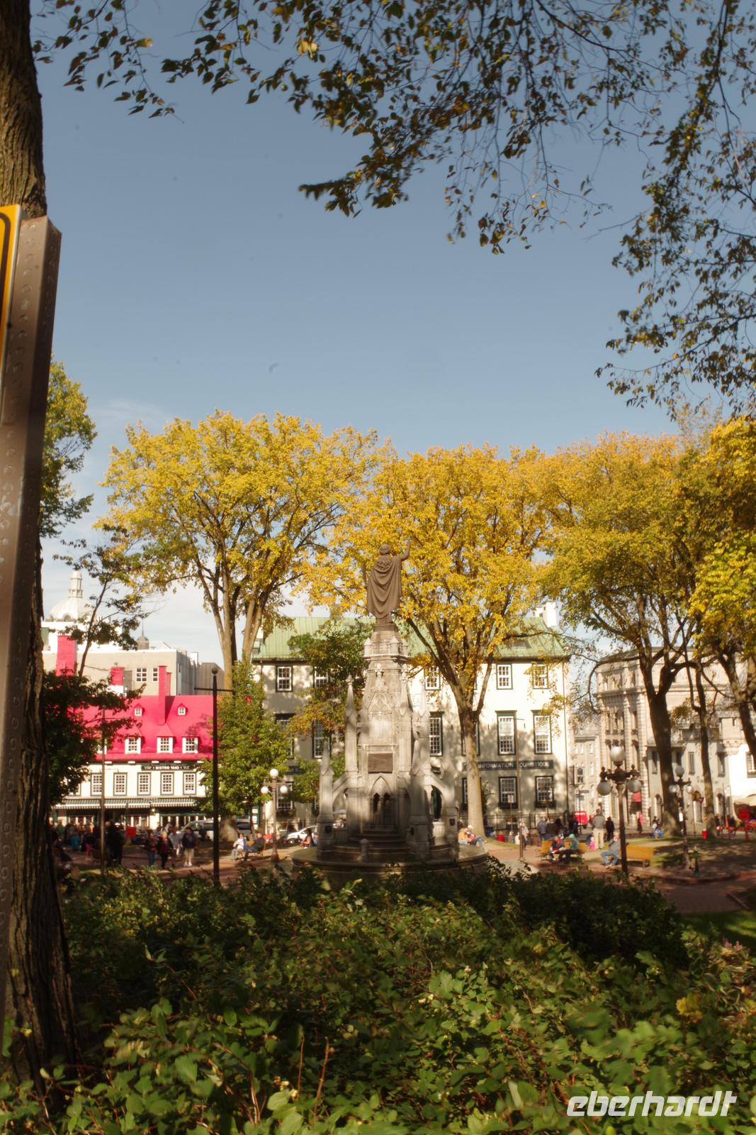 In Québec hatten wir kurz Zeit zur freien Verfügung, durch die wirklich malerischen Gässchen zu bummeln, dann starte unsere Stadtbesichtigung. Unsere örtliche Stadtführerin, Marina, führe uns zunächst durch den unteren Teil der Altstadt, wo wir zum Beispiel den Place Royal besuchten. Dieser war der erste Ort in Québec, an dem sich die Franzosen ansiedelten. Zu Beginn wurde dort hauptsächlich Pelzhandel mit den Ureinwohnern betrieben.