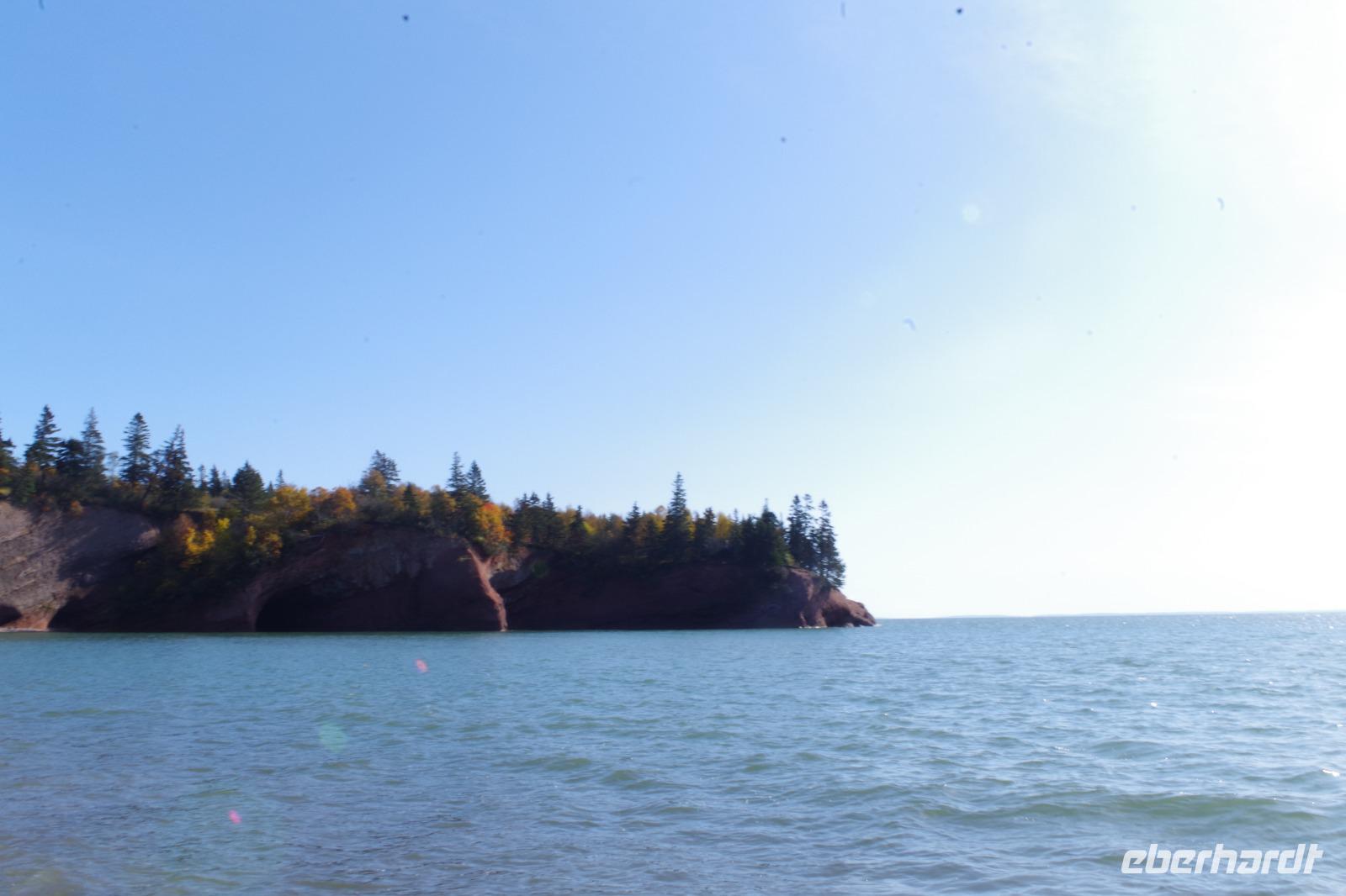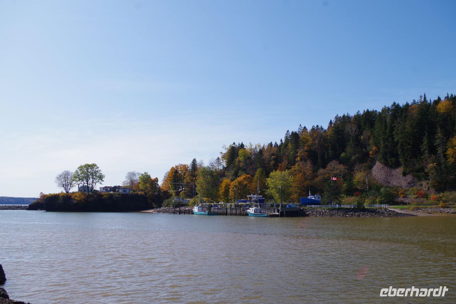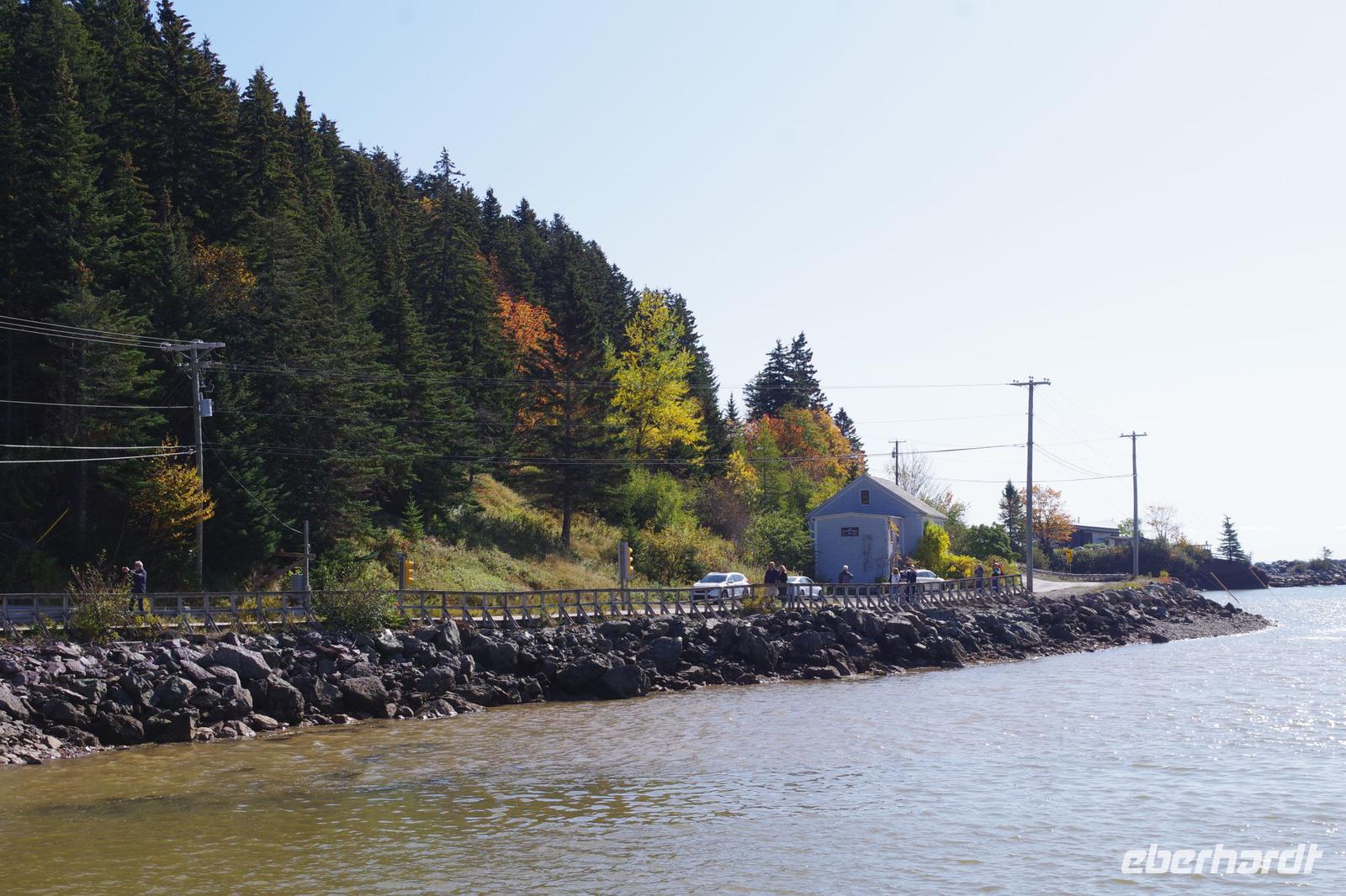 Kurze Zeit später erreichten wir die Bay of Fundy, wo weltweit die stärksten Gezeiten herrschen. Der Tidenhub beträgt hier bis zu 16 Metern. Die Bucht friert deswegen auch nie zu. Besonders beliebt ist sie auch bei Walen, allerdings machen sich diese nun langsam auf den Weg in wärmere Gewässer.