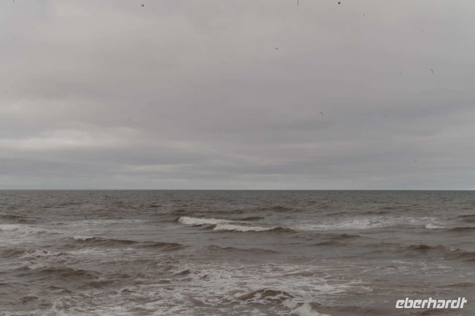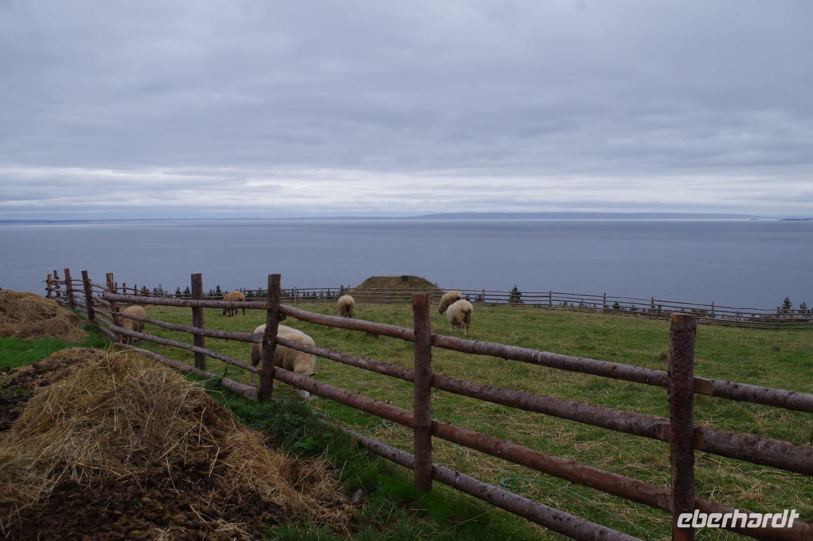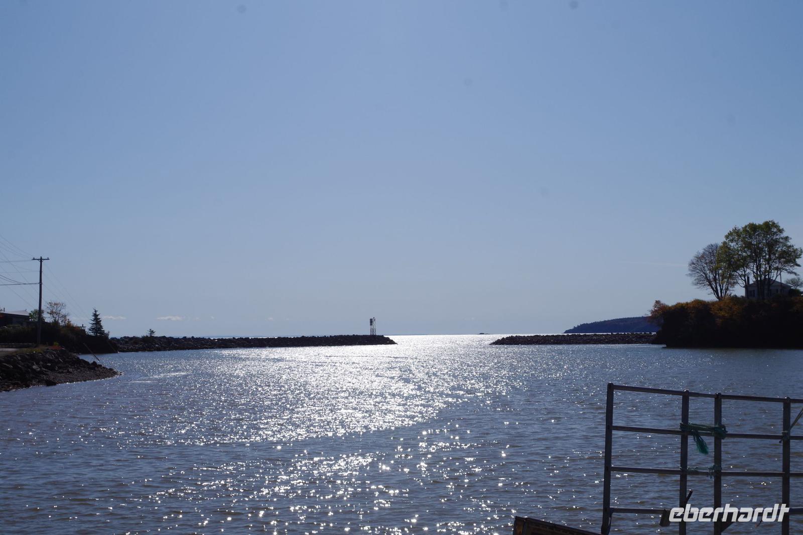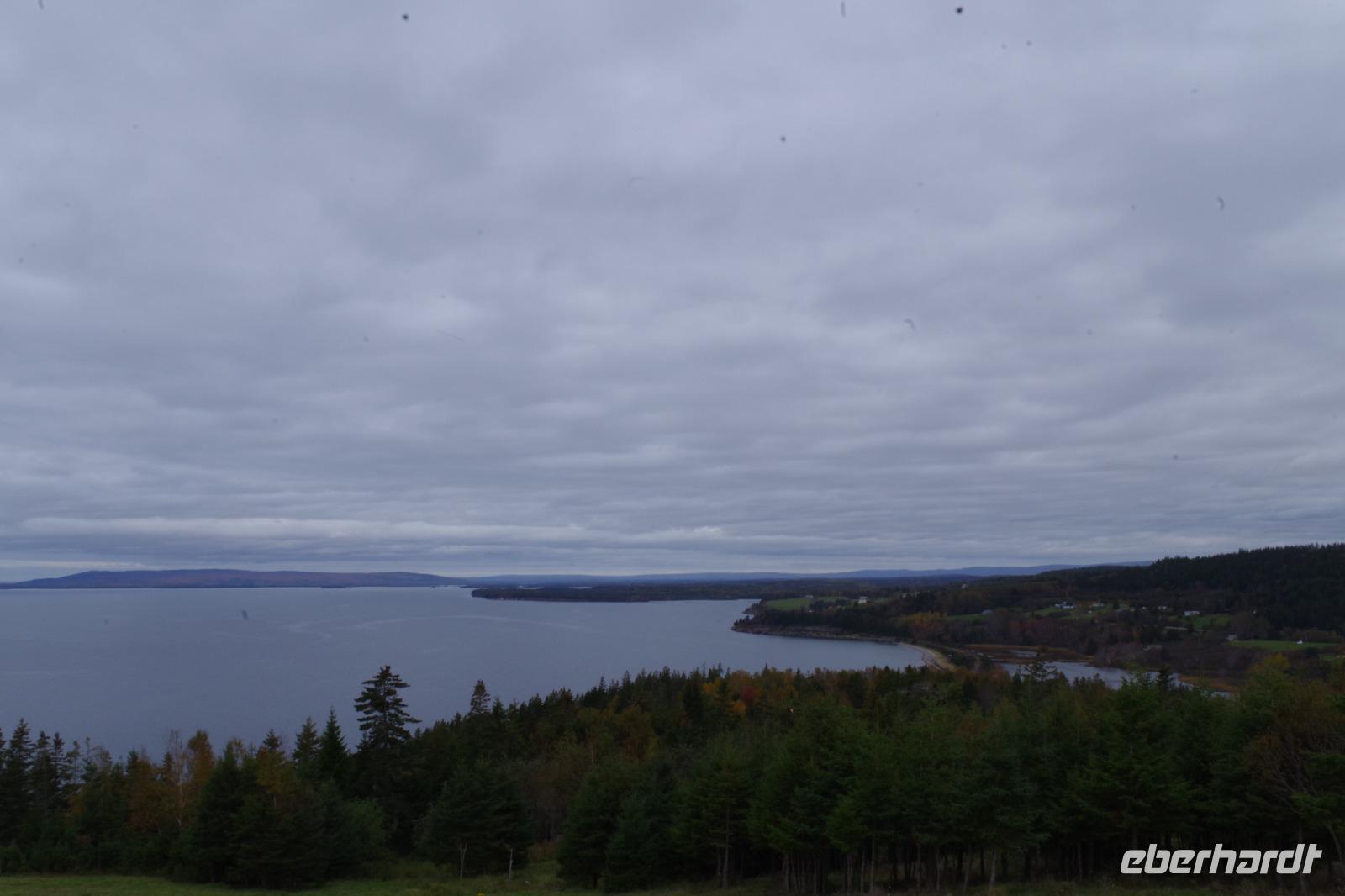 Kurze Zeit später erreichten wir die Bay of Fundy, wo weltweit die stärksten Gezeiten herrschen. Der Tidenhub beträgt hier bis zu 16 Metern. Die Bucht friert deswegen auch nie zu. Besonders beliebt ist sie auch bei Walen, allerdings machen sich diese nun langsam auf den Weg in wärmere Gewässer.