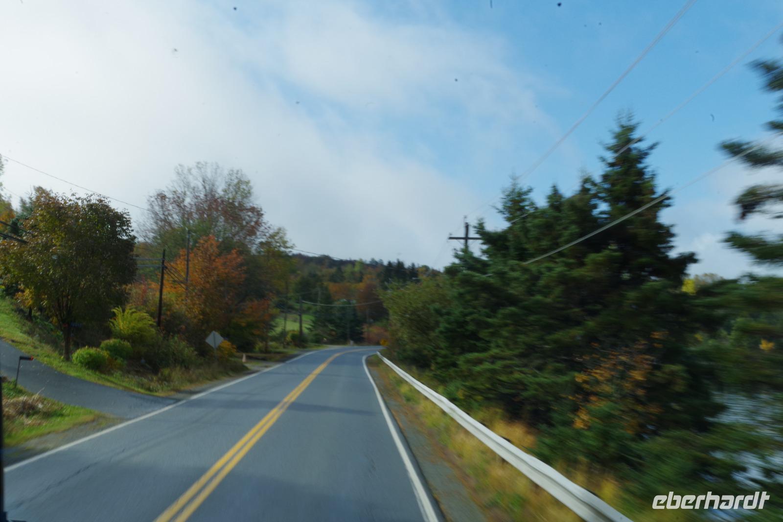 Wir fuhren entlang des Highway 125 in die Mitte der Insel Cape Brenton. Dort ist es ganz normal, dass man auch mit dem Fahrrad auf der Autobahn fährt, oder sogar zu Fuß am Rand geht.
