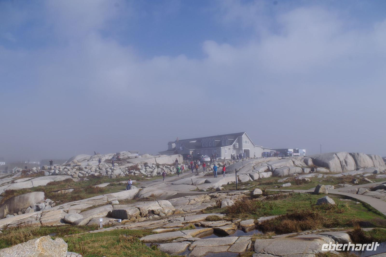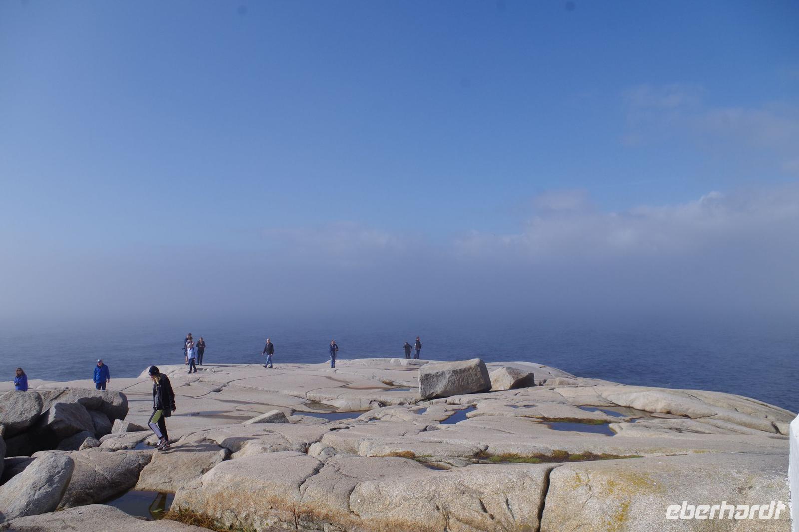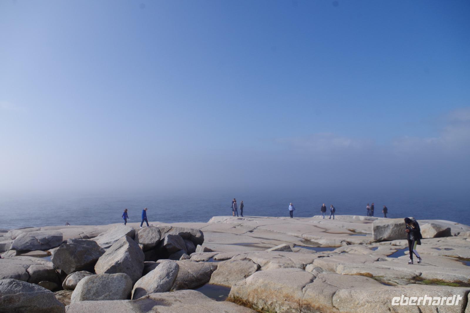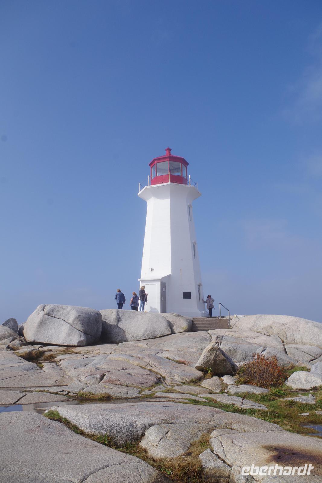 Gegen Mittag erreichen wir dann Peggys Cove, den berühmten und den wohl am häufigsten fotografierten Leuchtturm. Wir hatten wirklich Glück, denn die Sonne kämpfte sich durch und der am Morgen noch so dicke Nebel verschwand tatsächlich. Woher der Name Peggys Cove kommt, ist unklar. Es gibt mehrere Geschichten. Eine erzählt, dass dort einmal ein Schiff gekentert sei und nur ein Mädchen Namens Peggy überlebt hat und somit Namensgeberin für den Leuchtturm war.