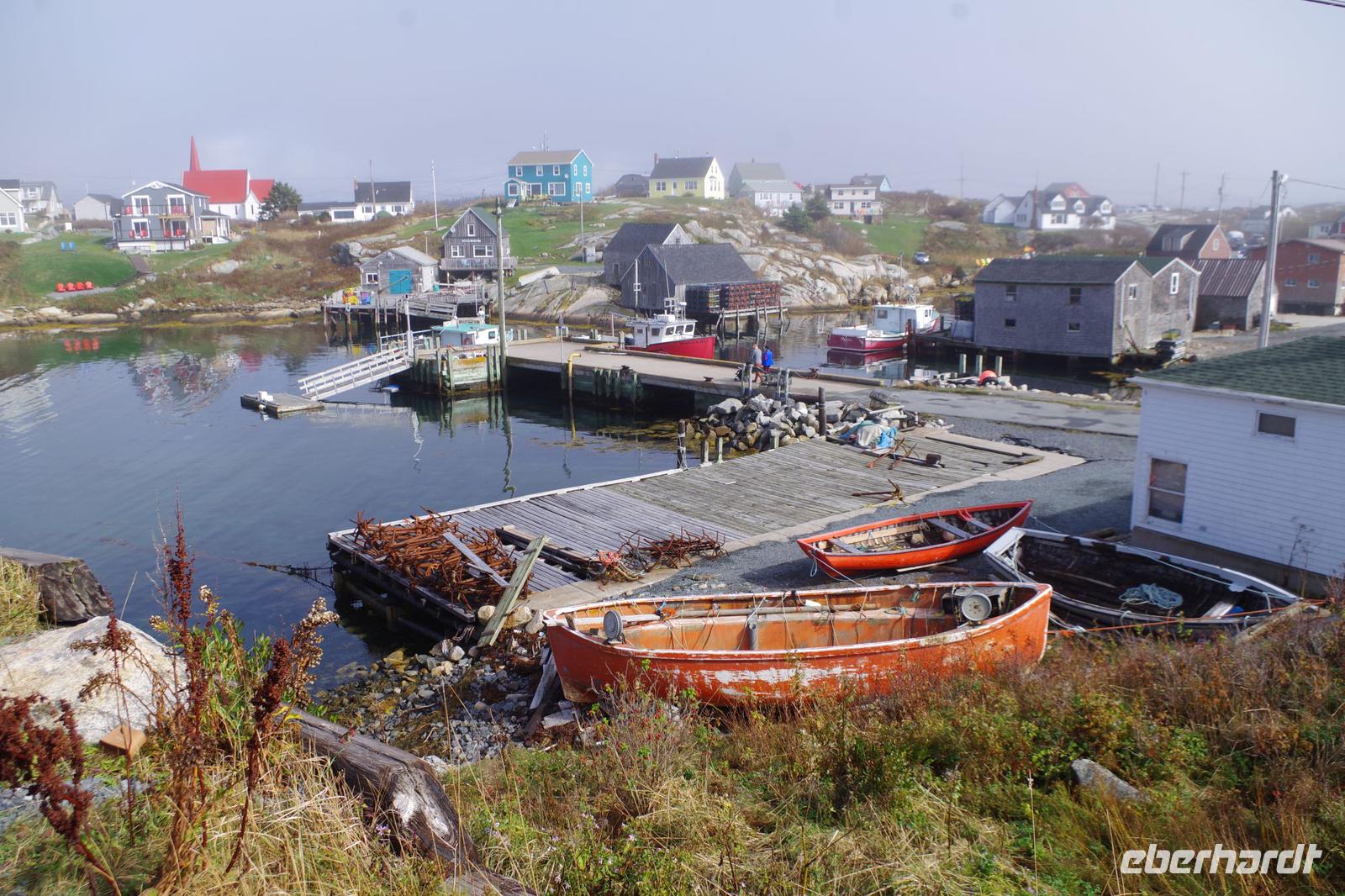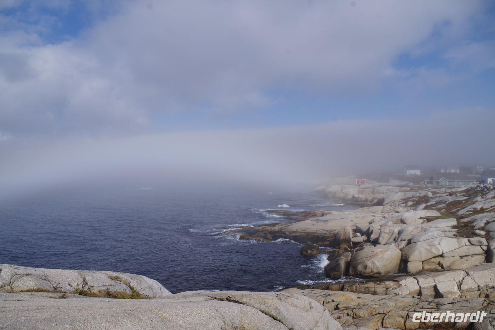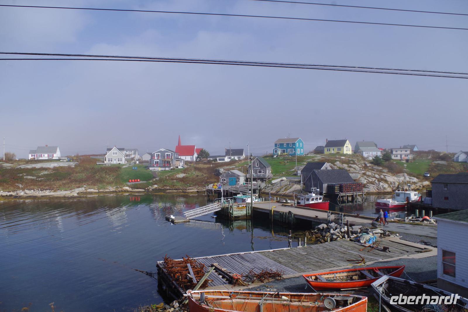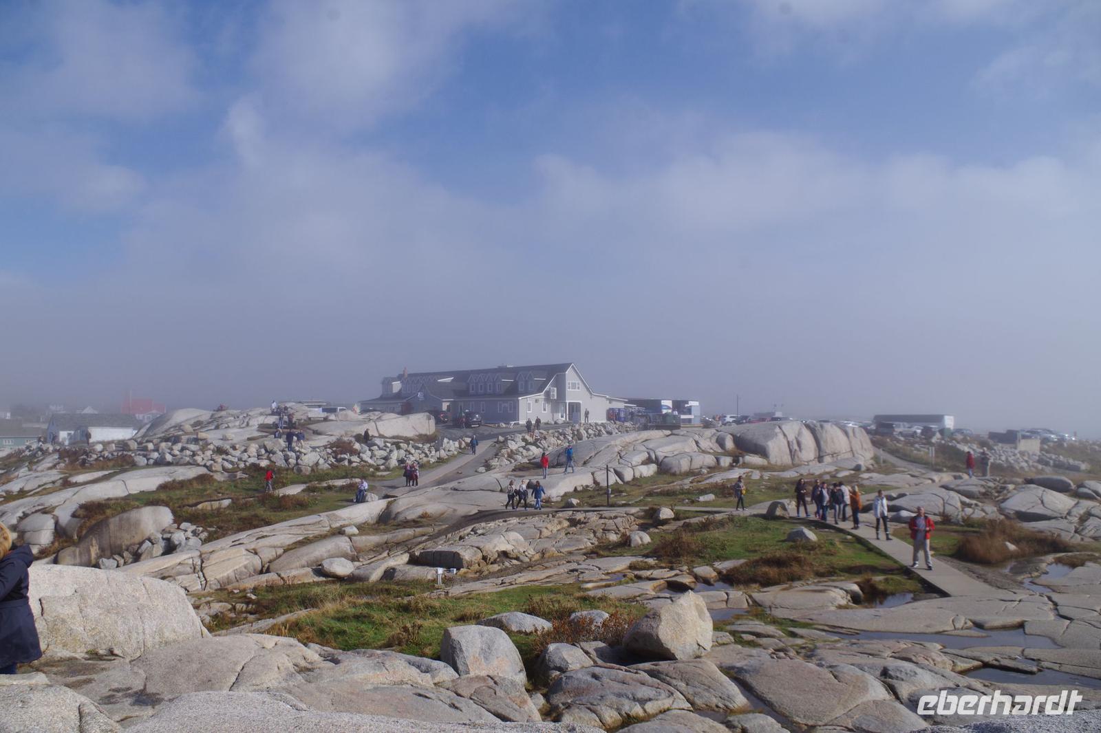 Gegen Mittag erreichen wir dann Peggys Cove, den berühmten und den wohl am häufigsten fotografierten Leuchtturm. Wir hatten wirklich Glück, denn die Sonne kämpfte sich durch und der am Morgen noch so dicke Nebel verschwand tatsächlich. Woher der Name Peggys Cove kommt, ist unklar. Es gibt mehrere Geschichten. Eine erzählt, dass dort einmal ein Schiff gekentert sei und nur ein Mädchen Namens Peggy überlebt hat und somit Namensgeberin für den Leuchtturm war.
