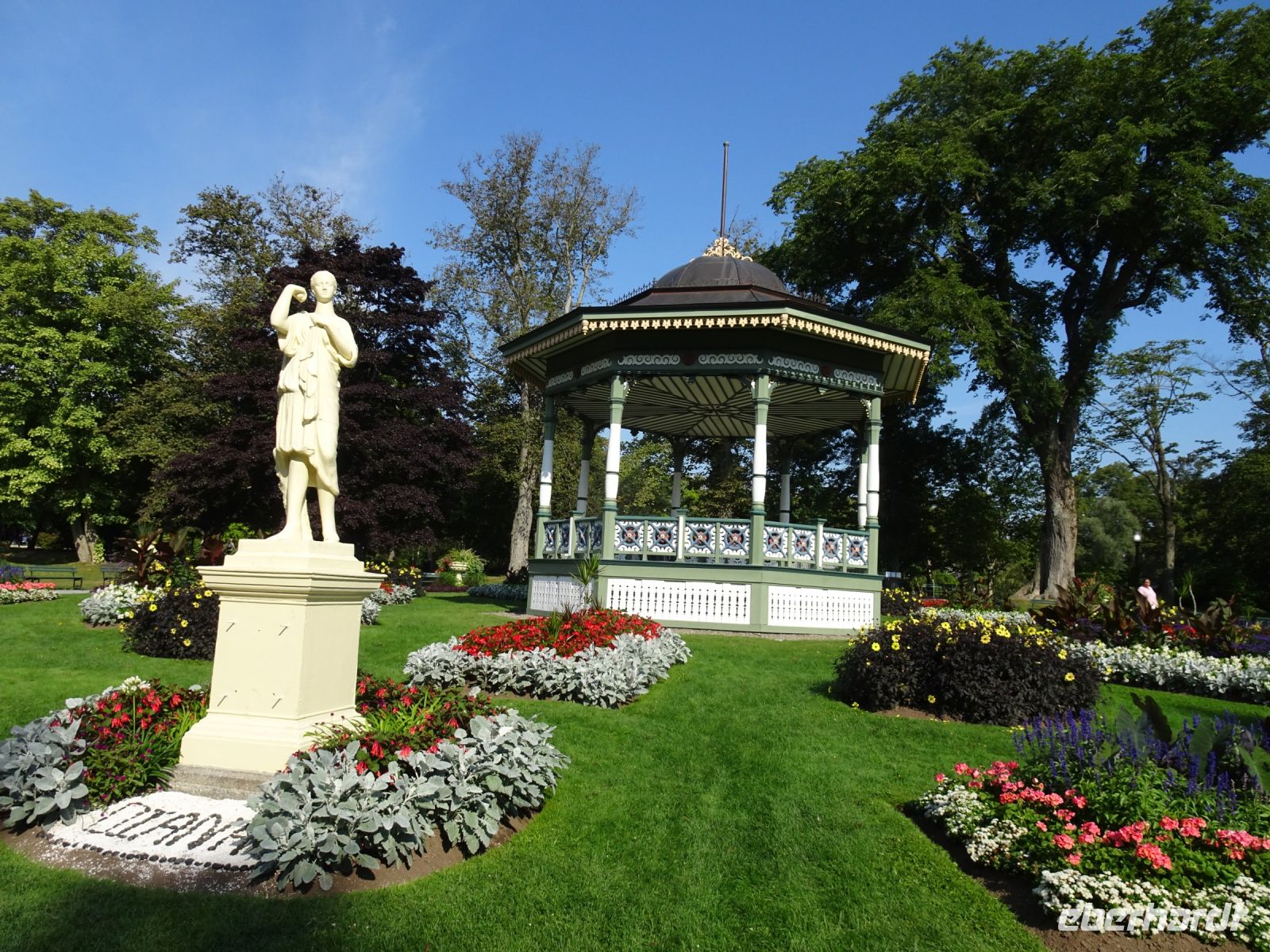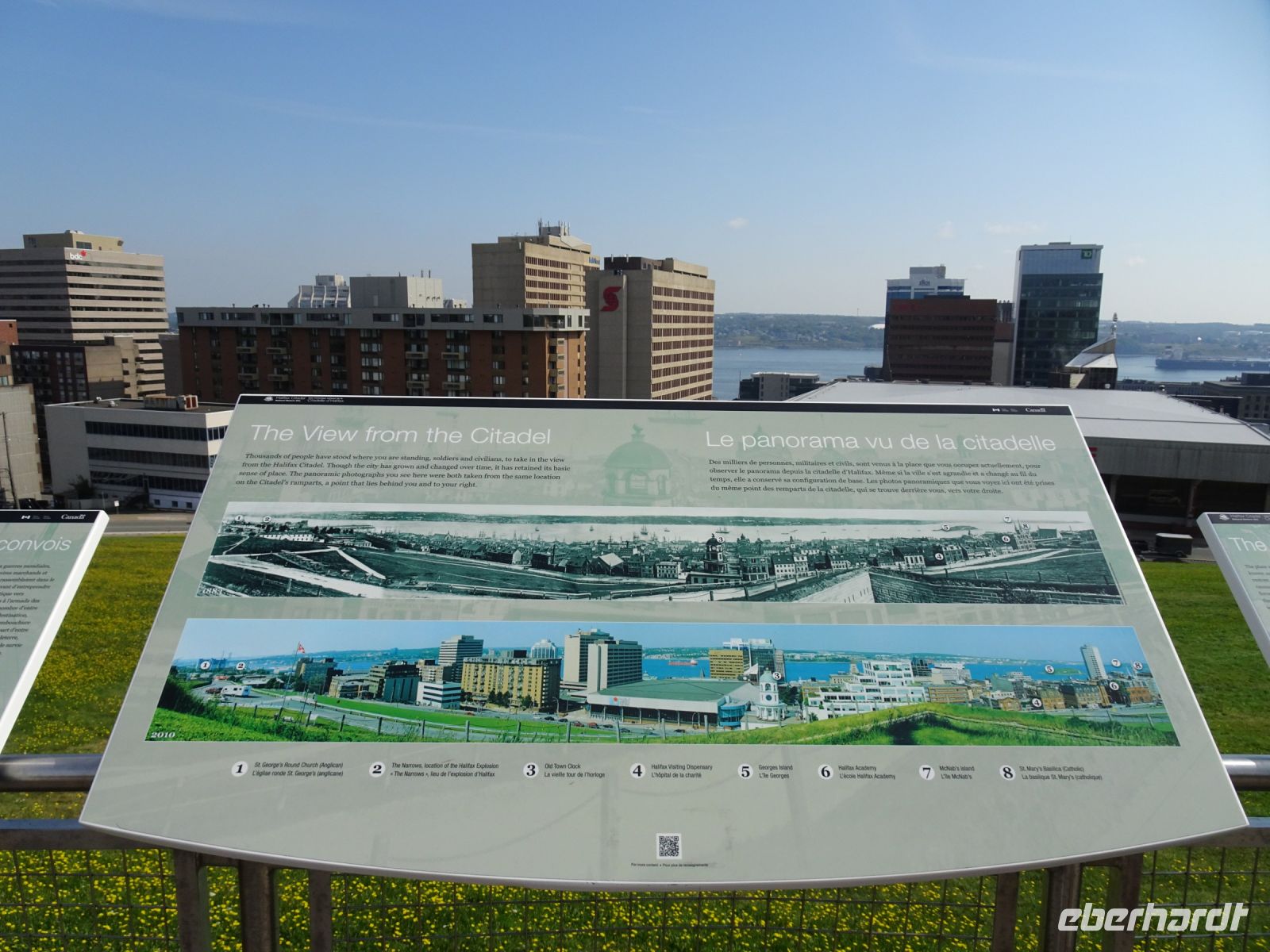 Willkommen in Halifax - der Hauptstadt von Nova Scotia. Heute findet unser Eberhardt Inklusivausflug statt. Nachdem wir mit einigen Irrungen und Wirrungen Bus und Stadtführerin gefunden haben, entwickelt sich dieser Ausflug zu einem Höhepunkt der Reise. Unser erster Stopp gilt dem öffentlichen Garten, dessen Blumenpracht und hübsch angelegte Wege dazu beitragen, unsere Aufregung vom Morgen wieder etwas zu dämpfen. Wir fahren zur Zitadelle, von der wir einen schönen Blick auf Halifax haben und auch den Uhrturm, der als Wahrzeichen der Stadt gilt, bewundern können. Desweiteren gibt es hier eine Informationstafel zur größten menschenverursachten Explosion (bis 1945), die mehrere tausend Opfer forderte, als ein voll beladener Munitionsfrachter mit einem anderen Schiff kollidierte und explodierte. Mit einer tragischen Geschichte geht es weiter, wir besuchen den Friedhof, auf dem viele Opfer der Titanic-Katastrophe beerdigt sind. 1912 kollidierte der Luxusdampfer 750 Meilen nordöstlich von Halifax mit einem Eisberg, das Ende ist bekannt. Weniger weiß man darüber, dass von Halifax aus drei Schiffe starteten, um Überlebende zu retten und Tote zu bergen. Noch weniger bekannt ist, dass das unbekannte Kind, das hier begraben wurde, vor einiger Zeit mit Hilfe einen DNS Analyse identifiziert werden konnte und nun das Grab seinen Namen trägt.