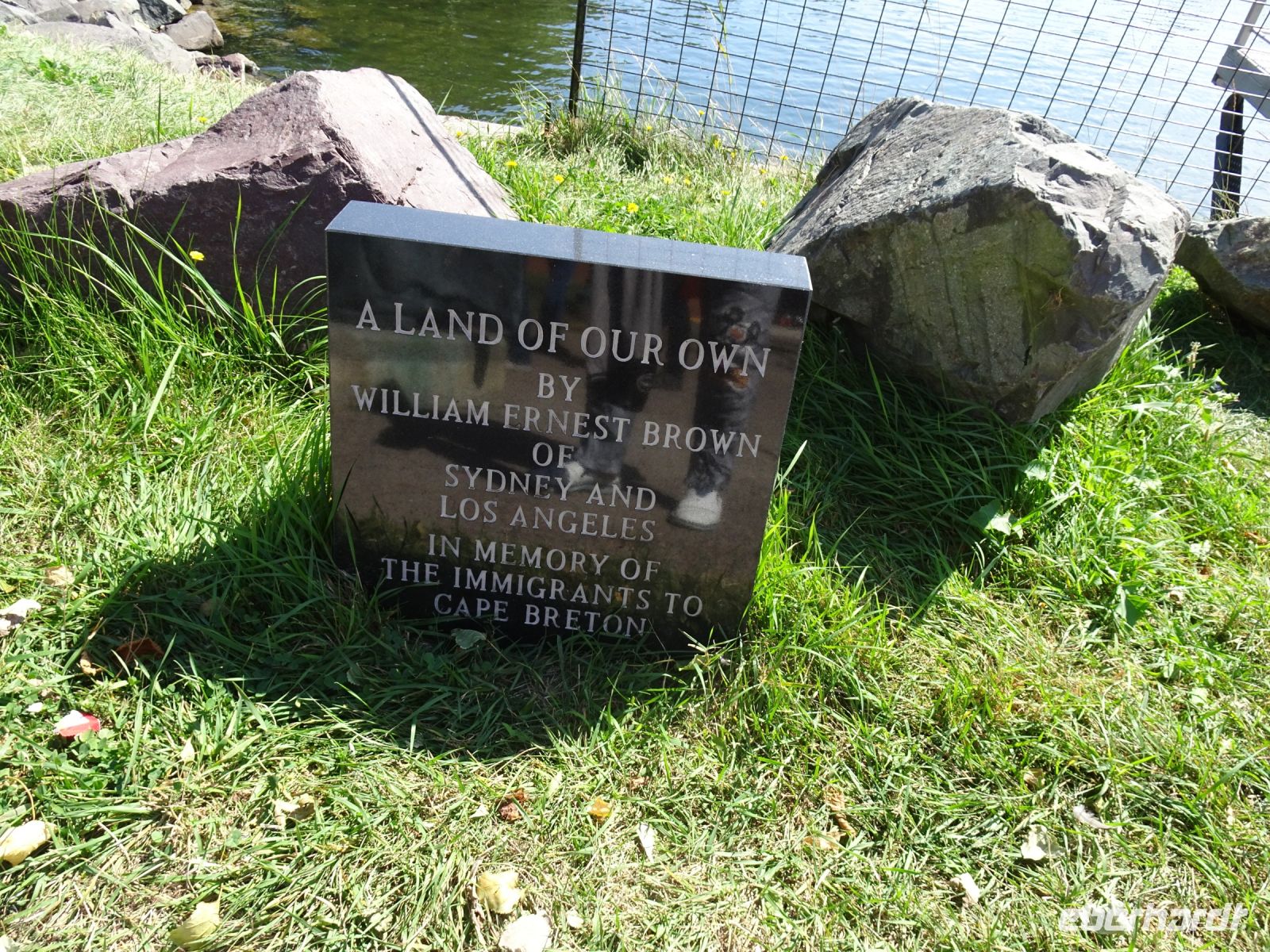 Nach dem Ausflug unternehmen wir noch einen kleinen Spaziergang in der Nähe vom Hafen. Hier treffen wir auf eine Bronzeskulptur von William Ernest Brown mit dem Titel "A Land of our own". Diese wurde vor circa zehn Jahren hier aufgestellt, um die Vielfalt der Einwanderer zu würdigen, die nach Cape Breton kamen und um die Reisenden, die heute mit den großen Kreuzfahrtschiffen kommen, zu erfreuen - so wie uns.
