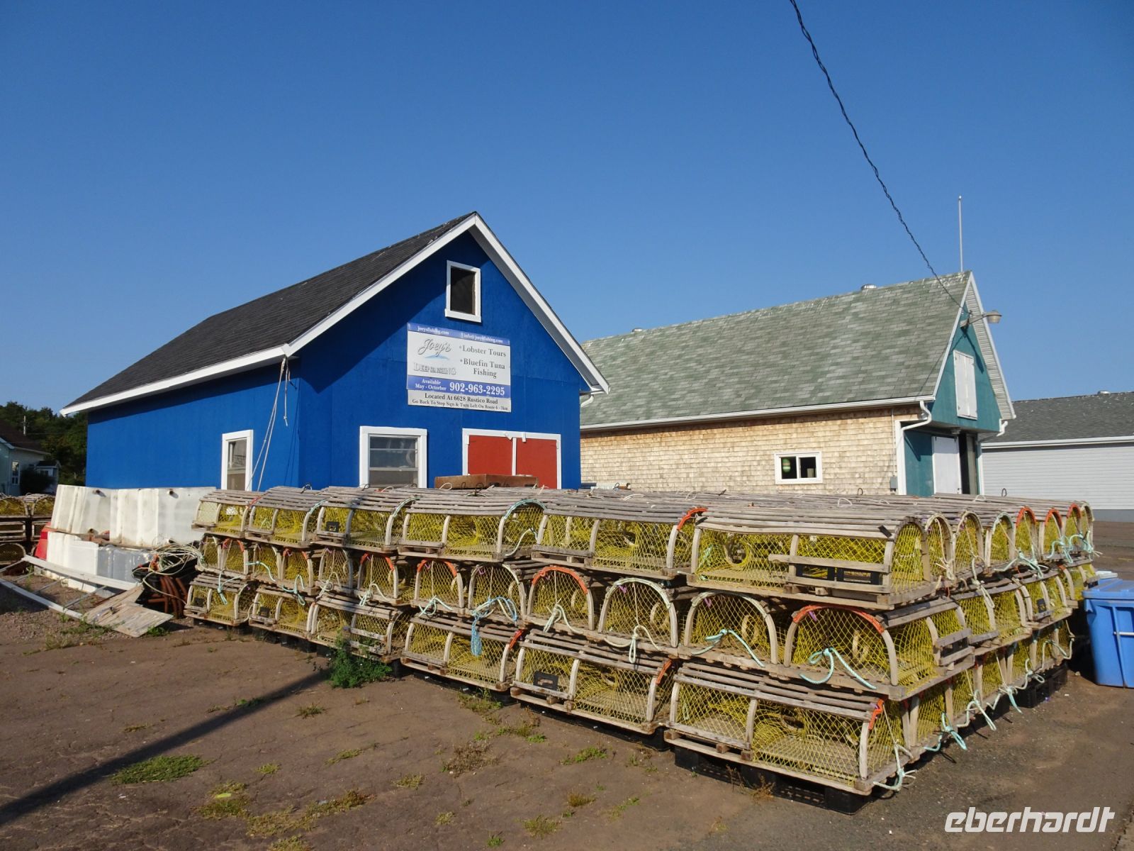Einen weiteren Stopp legen wir in North Rustico ein. Hier liegen dicht an dicht viele Fischerboote im Hafen. Vor allem im Sommer werden hier viele Hummer gefangen und verkauft, die Hummerkäfige stapeln sich nur so.