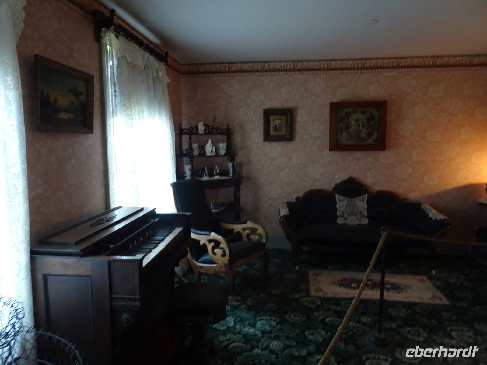 Lucy Maud Montgomery (1874 - 1942) erzählt in ihrem Kinderbuch von Anne Shirley, einem Waisenkind mit roten Haaren. 1939 wurde das Buch ins Japanische übersetzt und wurde sofort dort Kult. Heute (bis vor Corona) pilgern hunderte japanische Jugendliche nach Cavendish, die Mädchen schmücken sich mit roten Perücken und pflegen ihren Anna-Kult. Wir durchstreifen das Haus werden in die Zeit Anfang 20. Jahrhundert zurück versetzt und können uns einen Eindruck verschaffen, wie Lucy Maud Montgomery gelebt haben mag. Anschließend fahren wir an der Nordküste entlang, die mit ihren roten steil abfallenden Felsen fast an die Algarve erinnert. Auch diese Szenerie wurde als Kulisse in den Anne-Verfilmungen genutzt. Am Ufer stehen Schilder, die über besondere Ereignisse in der Region informieren. So zum Beispiel über das Wrack des Drei-Mast-Seglers Marco Polo, der Ende des 19. Jahrhunderts mehrere Geschwindigkeitsrekorde aufstellte, nach einem Sturm aber vor P.E.I. versank.