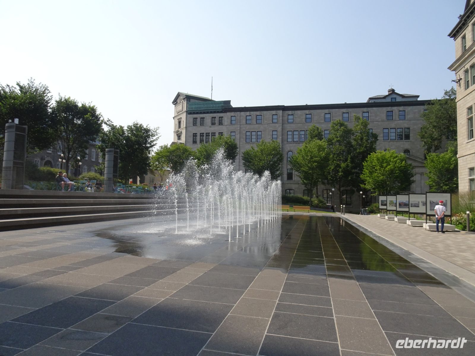 Zwei Stunden brauchen wir nun bis Ottawa, wo wir 13 Uhr ankommen. Ottawa ist seit 1857 die Hauptstadt von Kanada. Hier mündet der Fluss Rideau in den Ottawa River. Wir unternehmen eine kleine Stadtrundfahrt, bei der uns Margarith mit den wichtigsten Sehenswürdigkeiten vertraut macht. Den Abend nutzen wir, um das Wichtigste noch einmal zu Fuß zu erkunden. Im Licht der Abendsonne sieht das stolze Parlamentsgebäude noch beeindruckender aus. Wolkenkratzer spiegeln sich gegenseitig in den Fassaden. Gegenüber vom Parlamentsgebäude befindet sich eine Statue zu Ehren von Terry Fox. Er wurde bekannt durch seinen Lauf der Hoffnung, bei dem es ihm gelang, von jedem Kanadier einen Dollar für die Krebsforschung zu sammeln, insgesamt 24,7 Millionen Dollar. Terry Fox war selbst an Knochenkrebs erkrankt und unternahm den Lauf mit einer Beinprothese. Er verstarb im Alter von 22 Jahren. Sein Vermächtnis wird noch heute hoch geehrt. Langsam wird es dunkel, die Gärten der Restaurants sind beleuchtet und gut besucht. Auch wir finden einen gemütlichen Platz, an dem wir den Tag ausklingen lassen können.