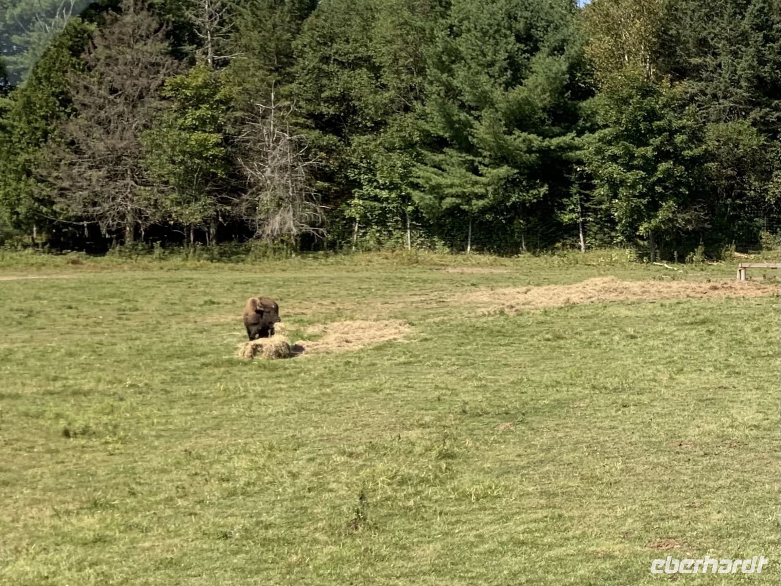 Heute Vormittag müssen wir uns einer speziellen Herausforderung stellen: wir müssen zum Corona Test. Dies kam einigermaßen überraschend, aber unsere Reiseleiterinnen, Eberhardt TRAVEL und die kanadische Agentur Canadian Travel Partners haben die Abwicklung perfekt organisiert. Blake, unser Busfahrer, fährt uns in zwei Gruppen zum Testcenter. Hier sind alle Formulare bereits online ausgefüllt. Wir müssen nur noch pro Person 40 $ bezahlen, unsere Nase hinhalten und schon haben wir den Beleg, negativ zu sein. Ein Stein fällt von jedem Herzen. Nun fahren wir zum Omega-Wildpark. Schon bei der Einfahrt warten hungrige Karibu auf die dicken Möhren, die Blake eingekauft hat. Fast zwei Stunden fahren wir durch den Park. Neben Rehen und Hirschen sehen wir auch Wildschweine, junge Wölfe, Ziegen und auch Bären. Im Imbiss vom Park legen wir eine kurze Mittagspause ein. Anschließend fahren wir weiter nach Montreal. Vom Mont-Royal, dem 232 Meter hohem Hausberg der Stadt haben wir eine fantastische Aussicht über den St.-Lorenz-Strom zu den Inselbergen der Region Monteregie. Um die Basilika Notre Dame zu besuchen, müssen wir uns etwas beeilen, denn es ist schon später Nachmittag und bald wird sie geschlossen. Uns gelingt es jedoch, noch rechtzeitig hinein zu schlüpfen und plötzlich befinden wir uns in einem Märchen aus blau und gold.